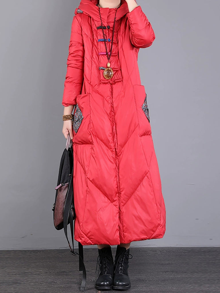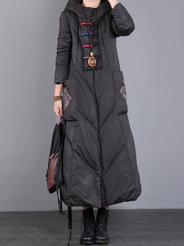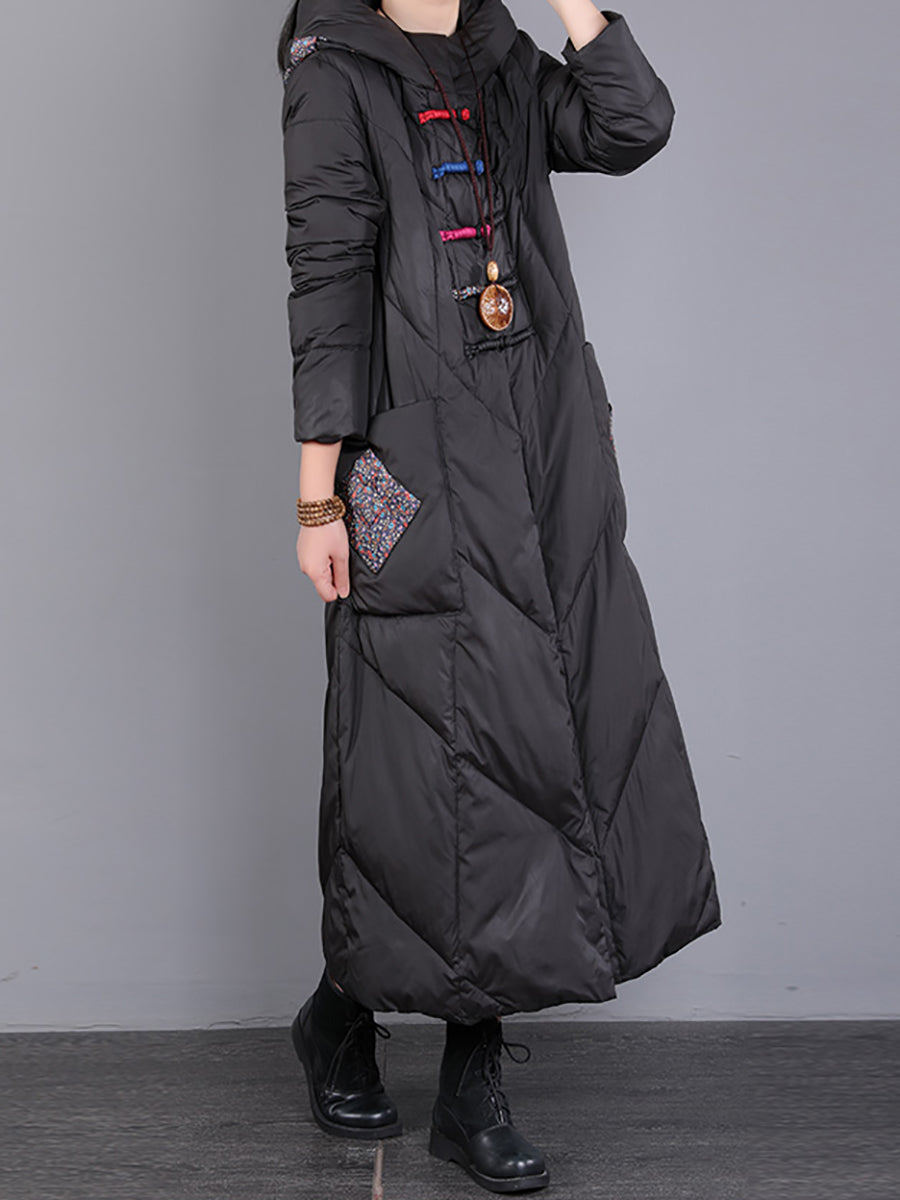 Crafted from pure cotton, this winter coat combines timeless retro aesthetics with contemporary comfort. The hooded collar provides practical protection against cold weather, while intricate embroidery detailing elevates the design with sophisticated visual interest. Full-length regular sleeves offer classic coverage, making it an ideal layering piece for autumn and winter seasons. The structured silhouette reflects vintage-inspired tailoring that transcends seasonal trends.
