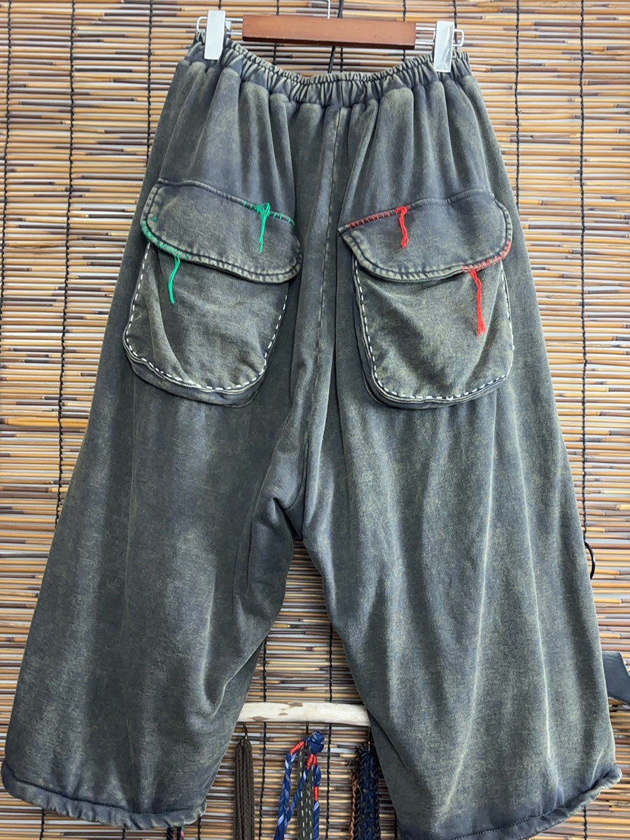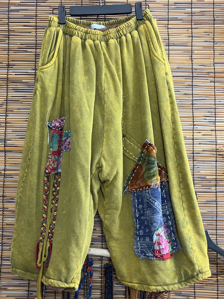 Women Winter Retro Patchwork O-Neck Tassel Suits