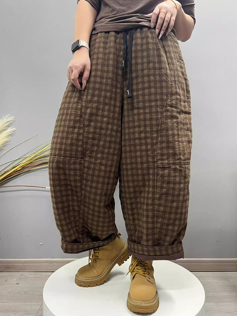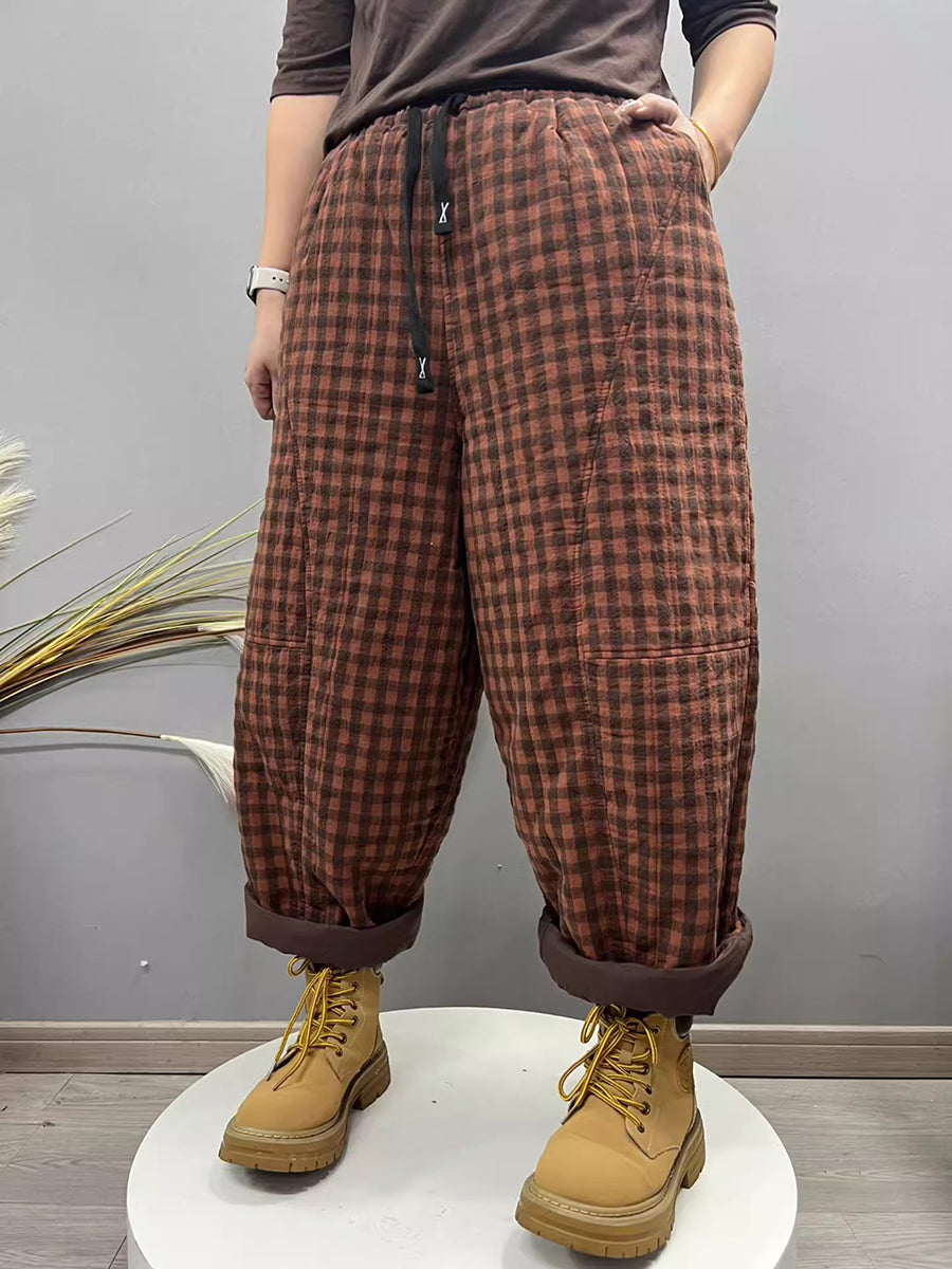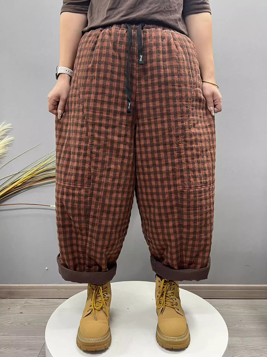 Women Winter Retro Plaid Padded Harem Pants