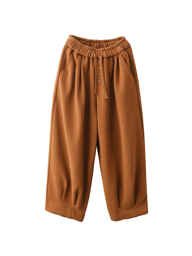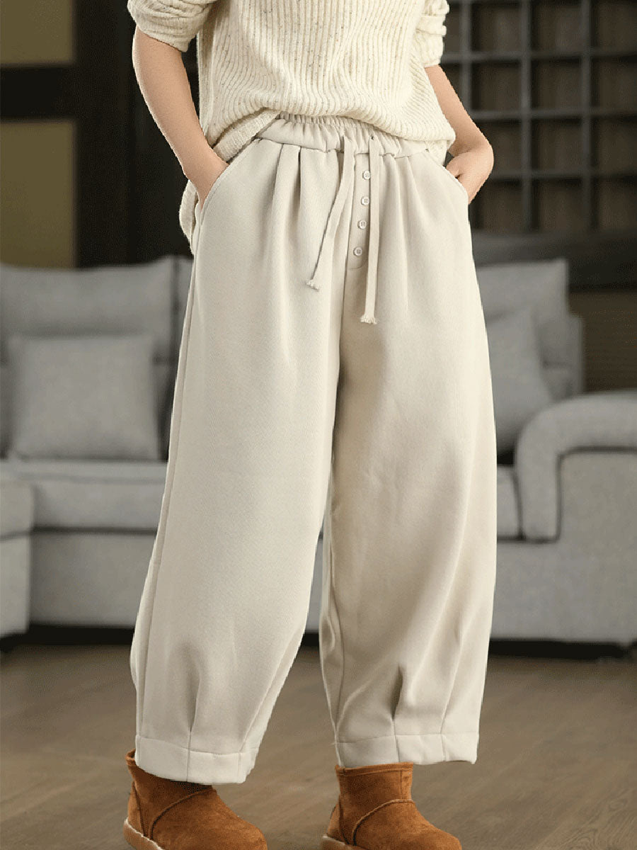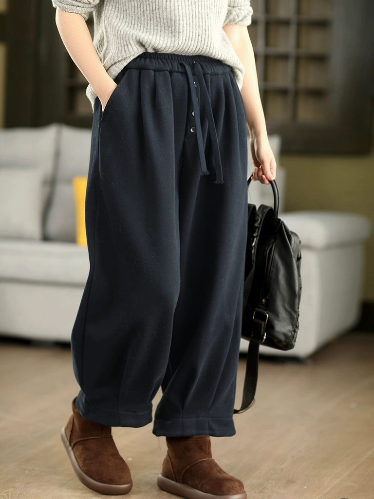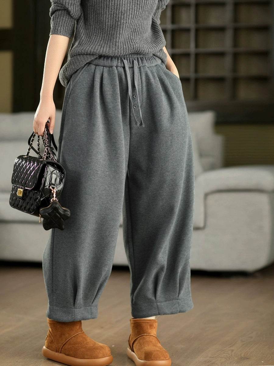 Women Winter Retro Pure Color Fleece-lined Harem Pants
