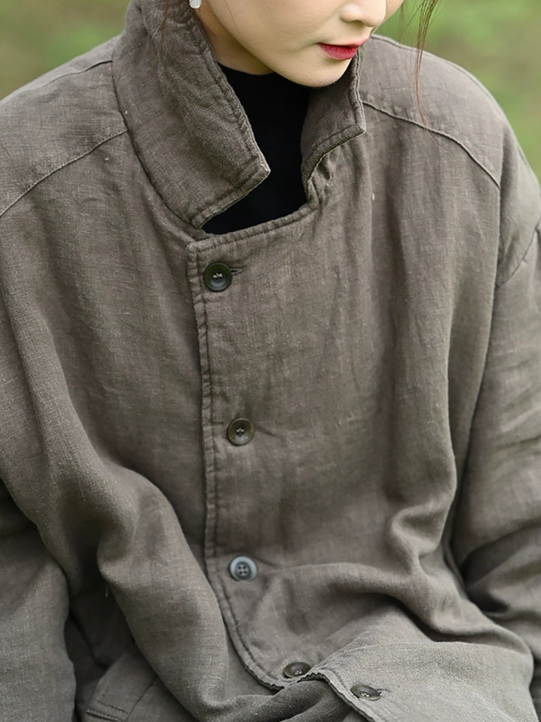 Women Winter Retro Pure Color Turn-down Collar Padded Jacket