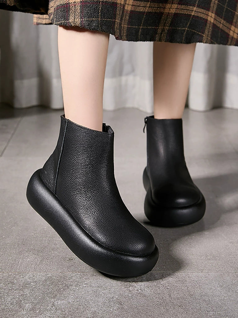 Women Winter Soft Genuine Leather Platform Ankle Boots
