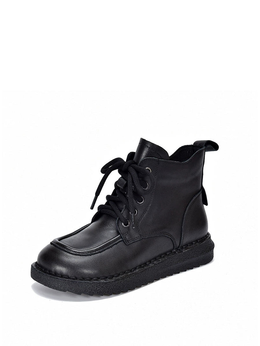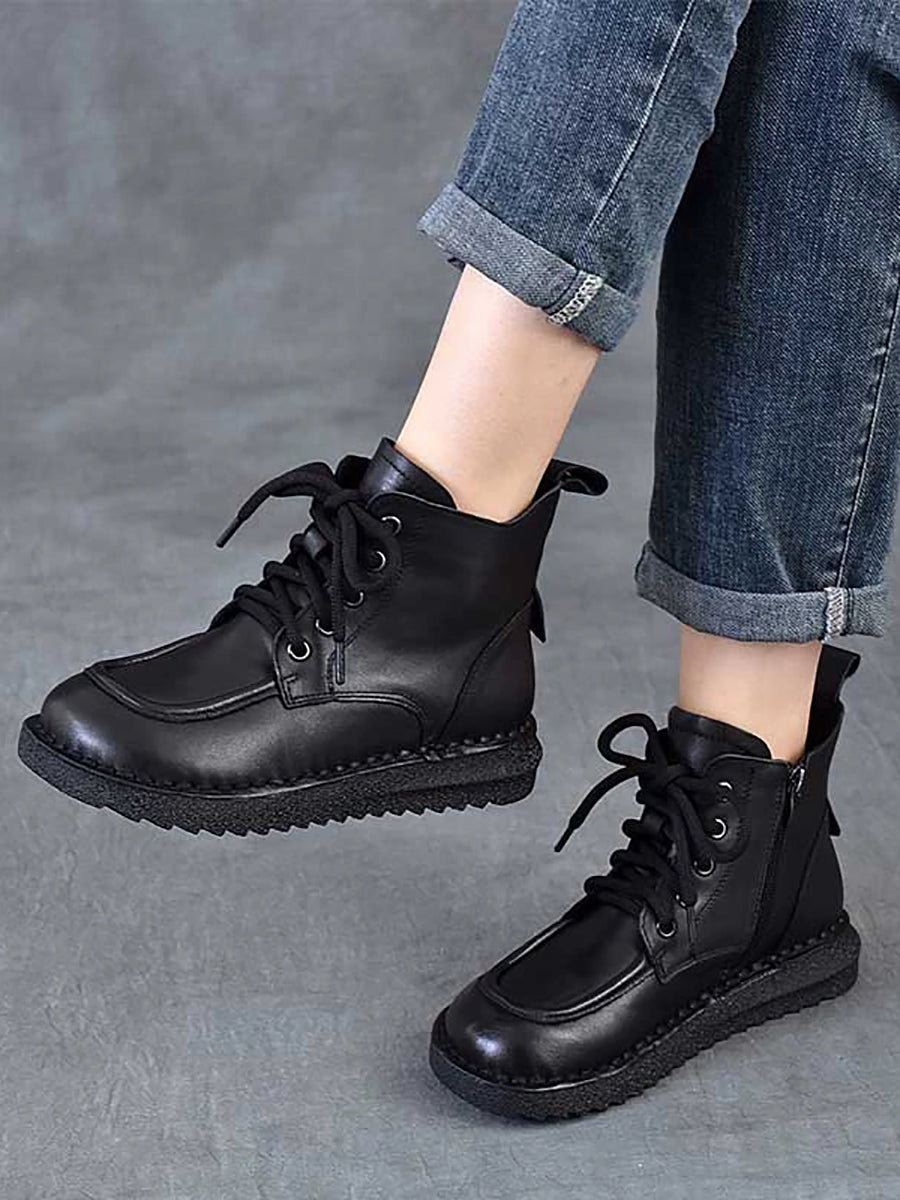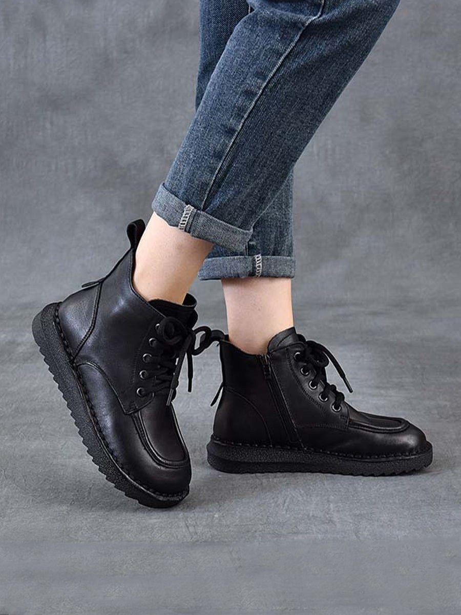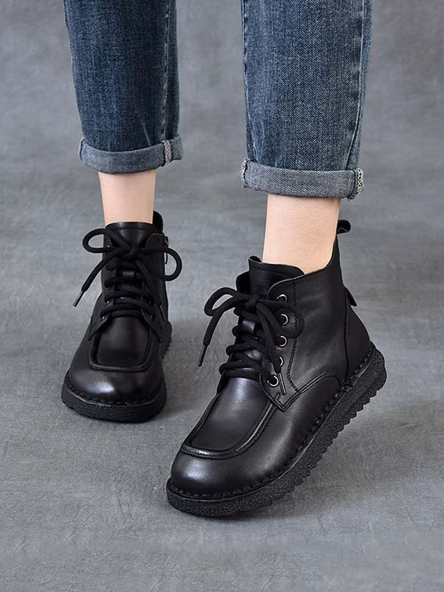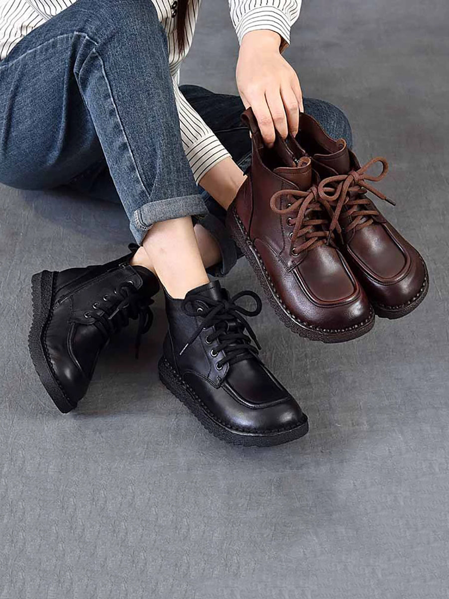 Women Winter Vintage Leather Spliced Ankle Boots
