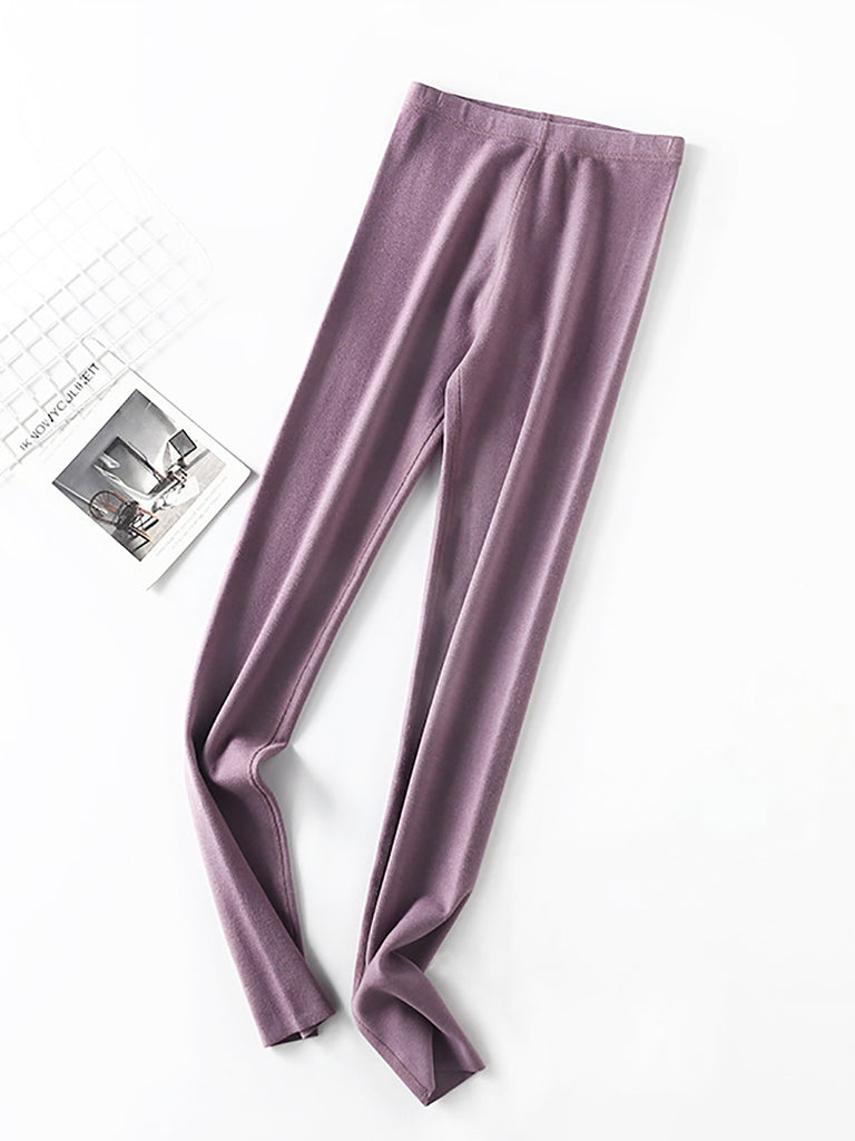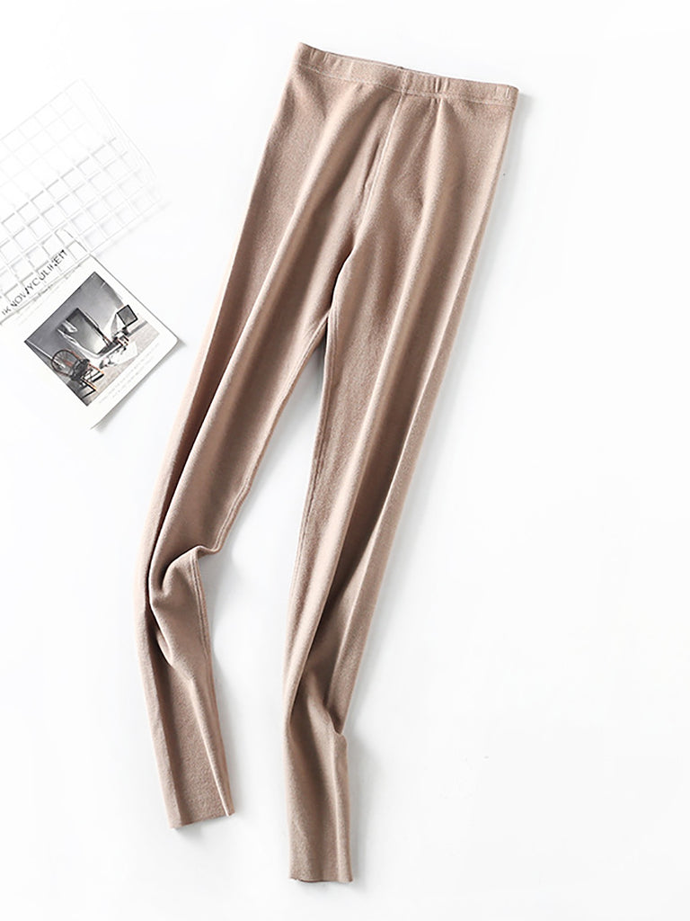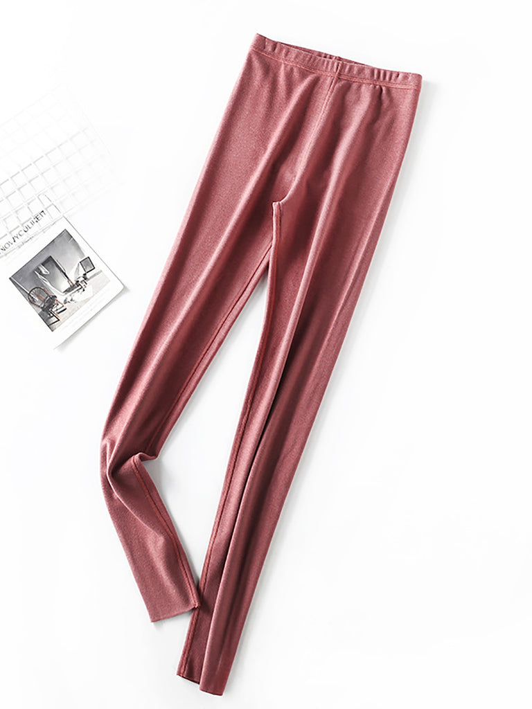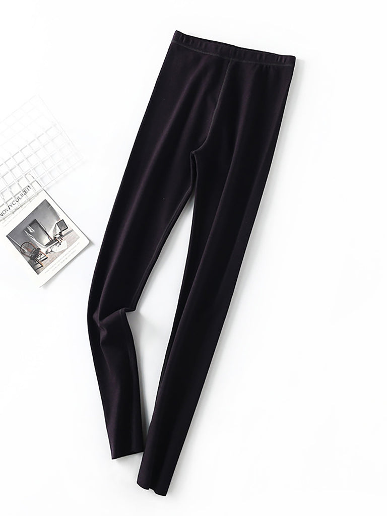 Women Winter Warm Pure Color High Waist Leggings