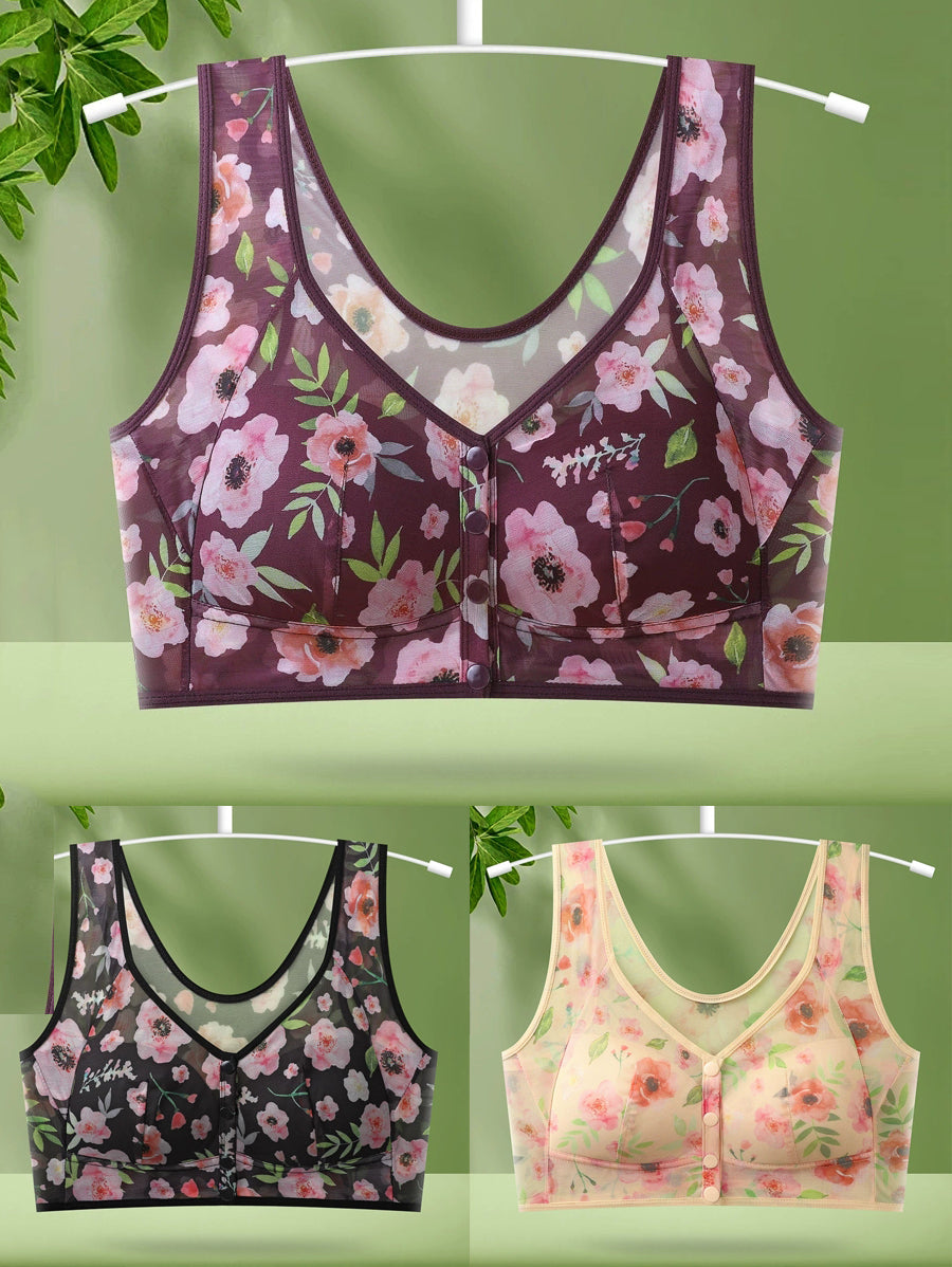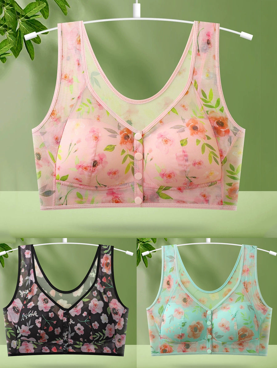 Ženski grudnjak od 3 komada s umjetnom cvjetnom kopčom i bežičnom kopčom