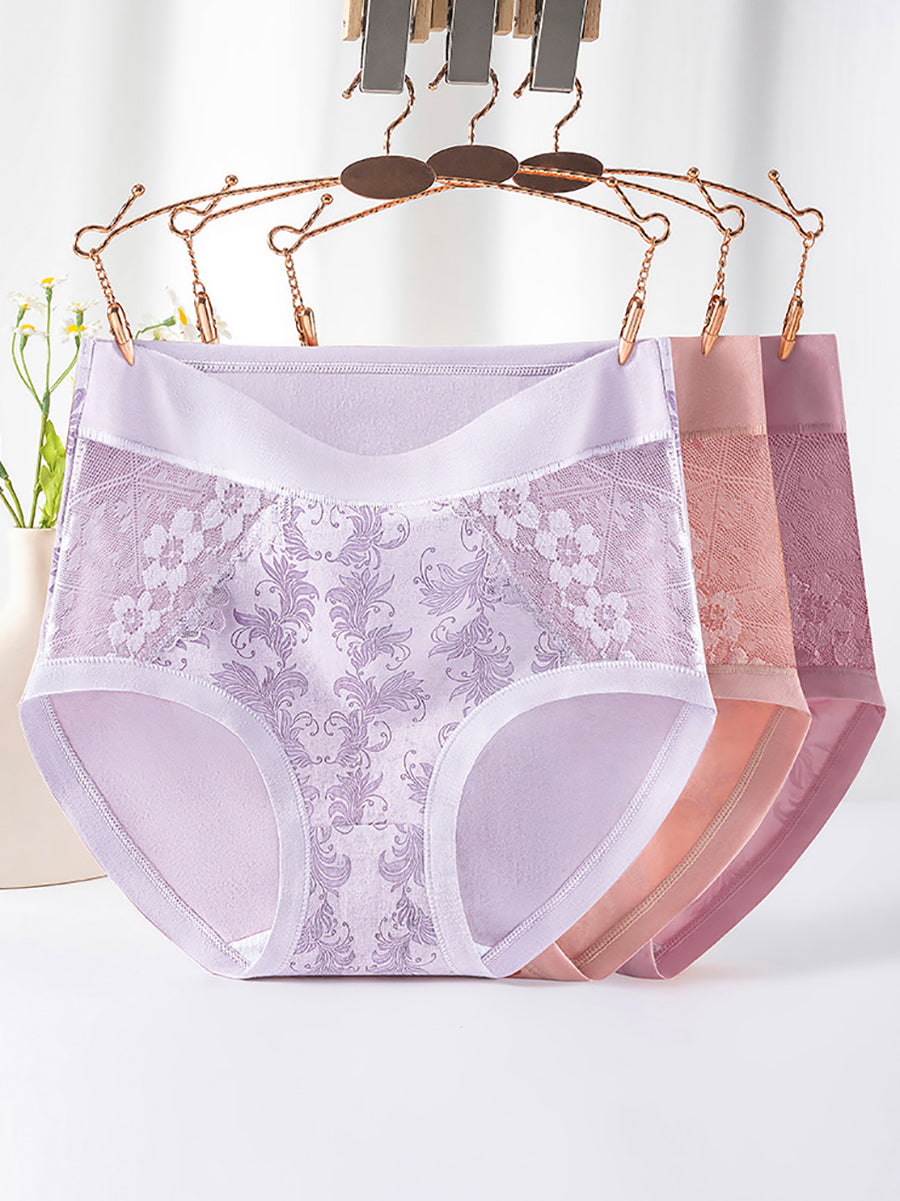 Žensko donje rublje visokog struka s umjetničkim cvjetnim čipkastim uzorkom od 3 komada