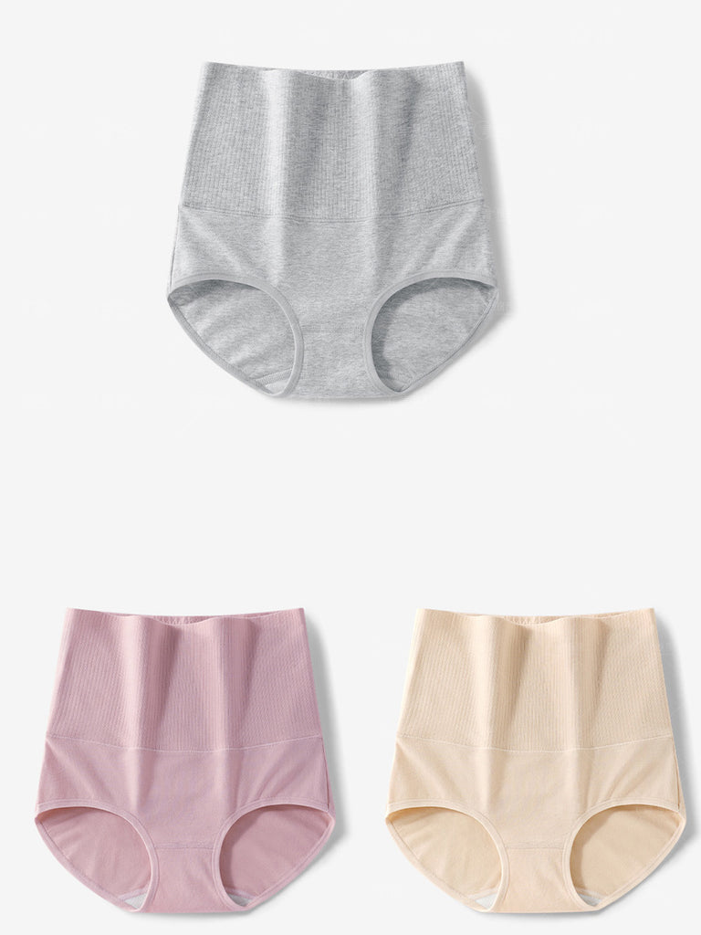 Žensko pamučno donje rublje visokog struka, 3 komada, čisto u boji