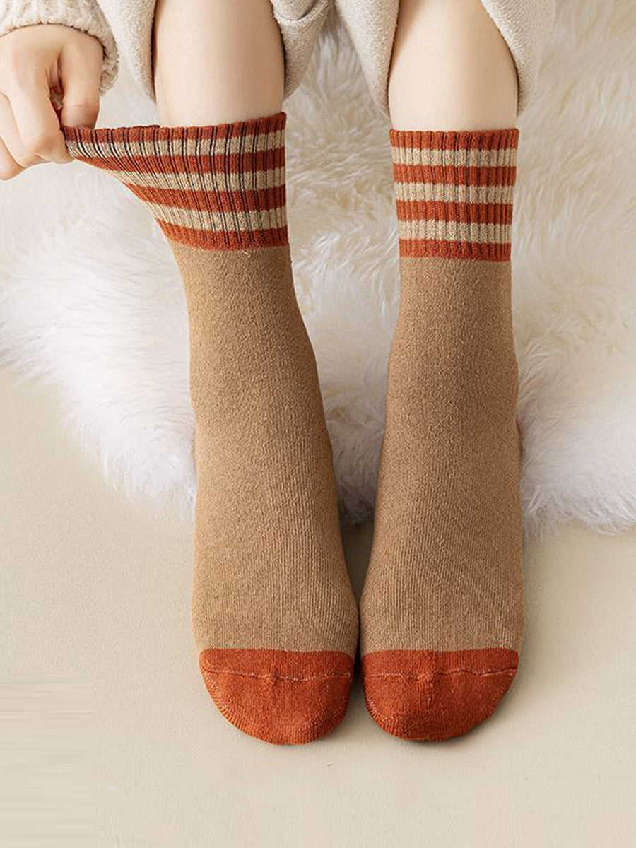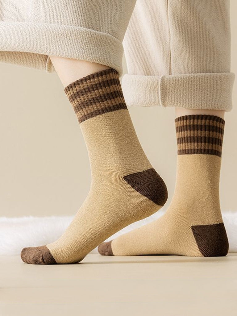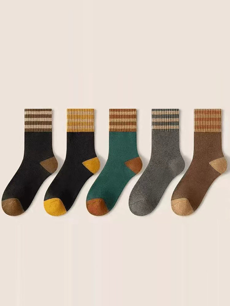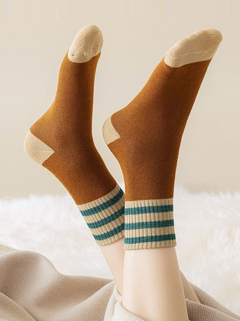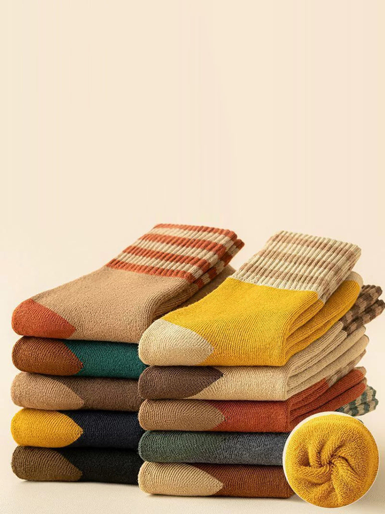 5 pari ženskih zimskih prugastih čarapa s blokovima boja