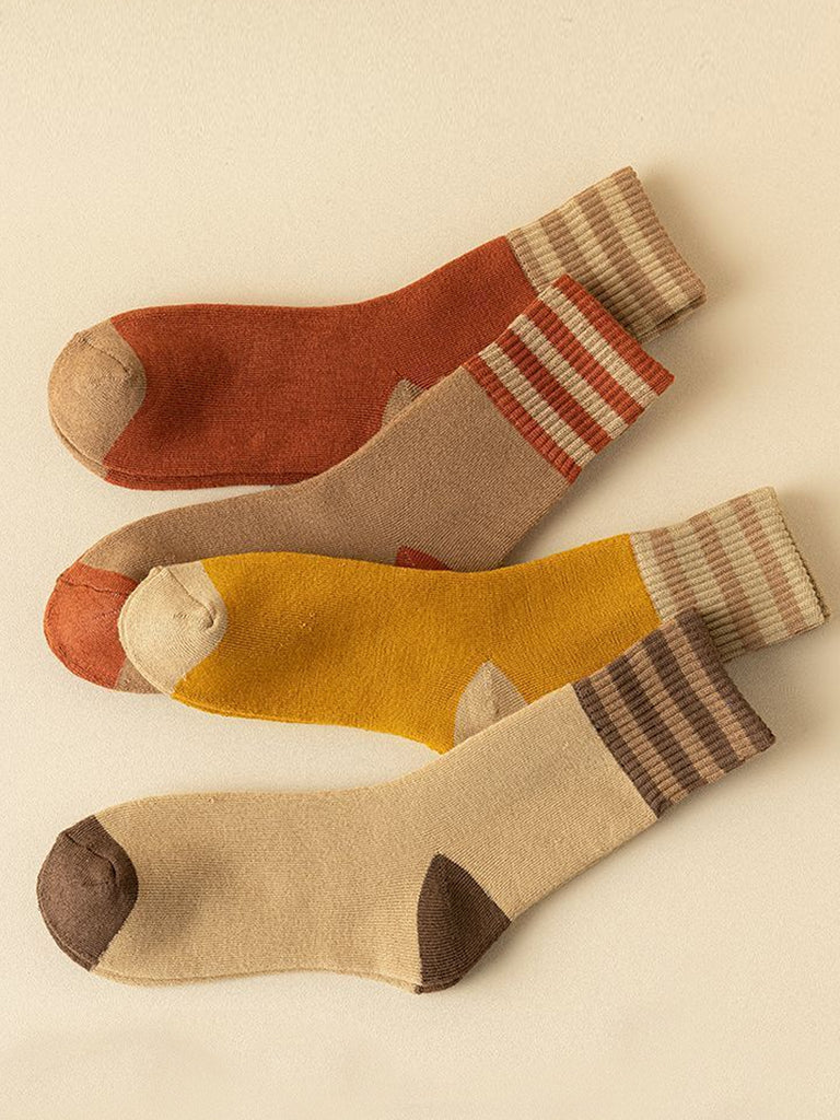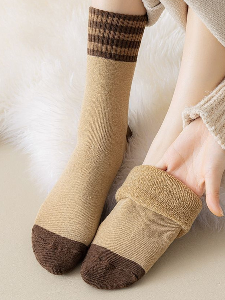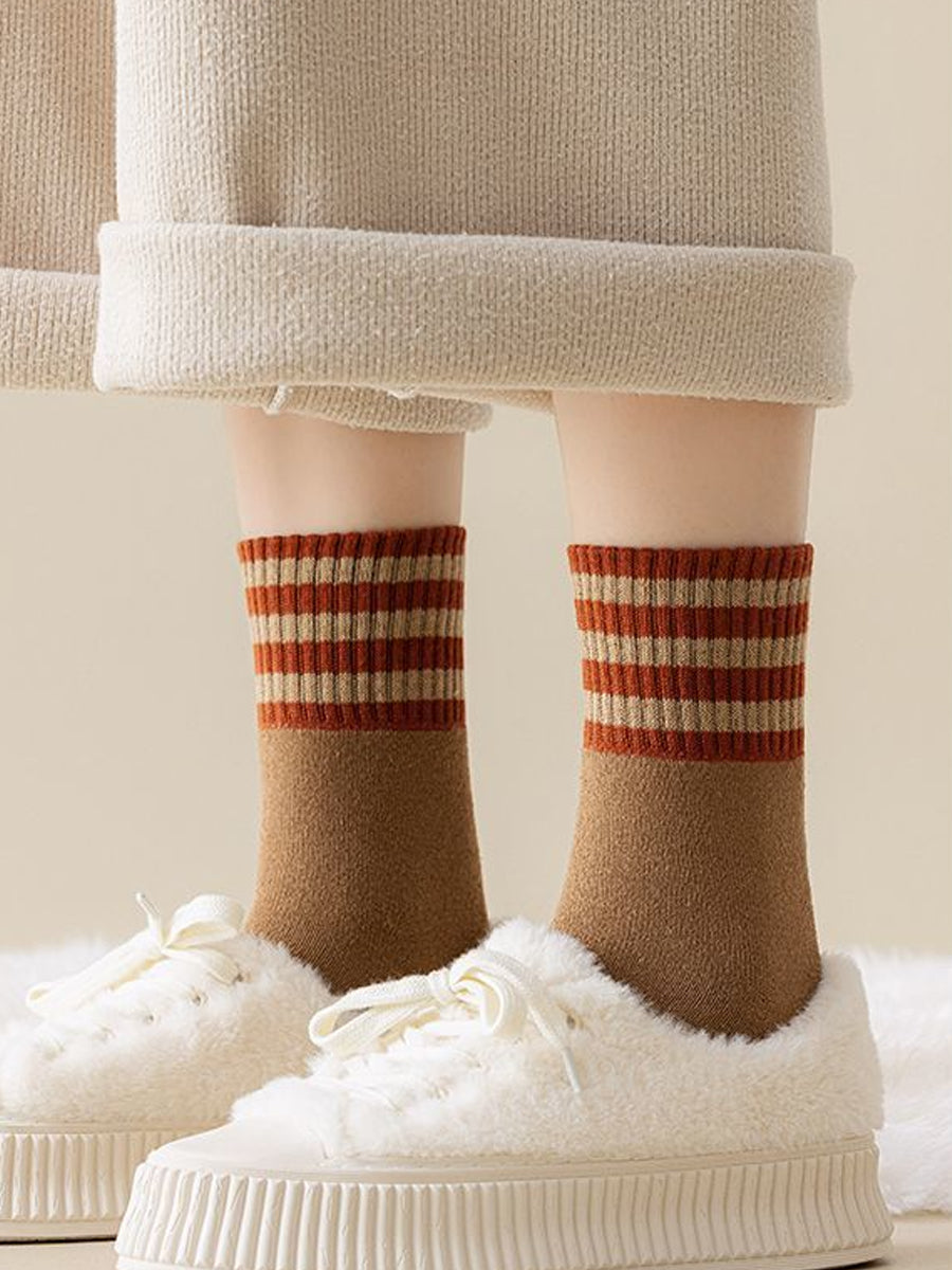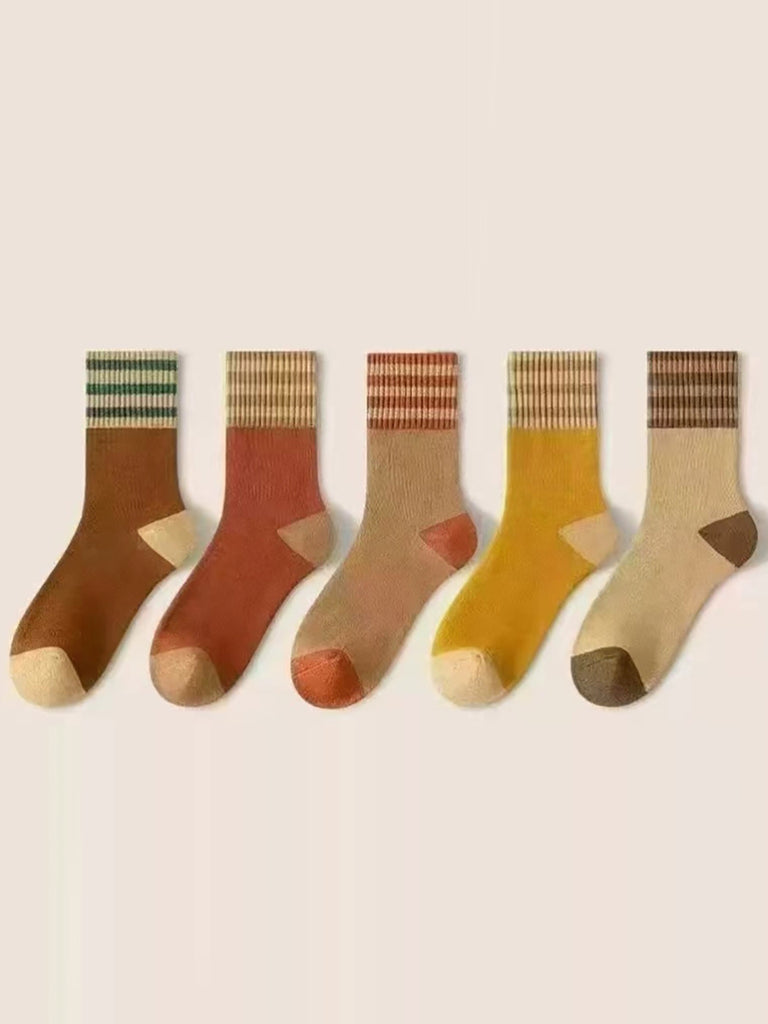 5 pari ženskih zimskih prugastih čarapa s blokovima boja