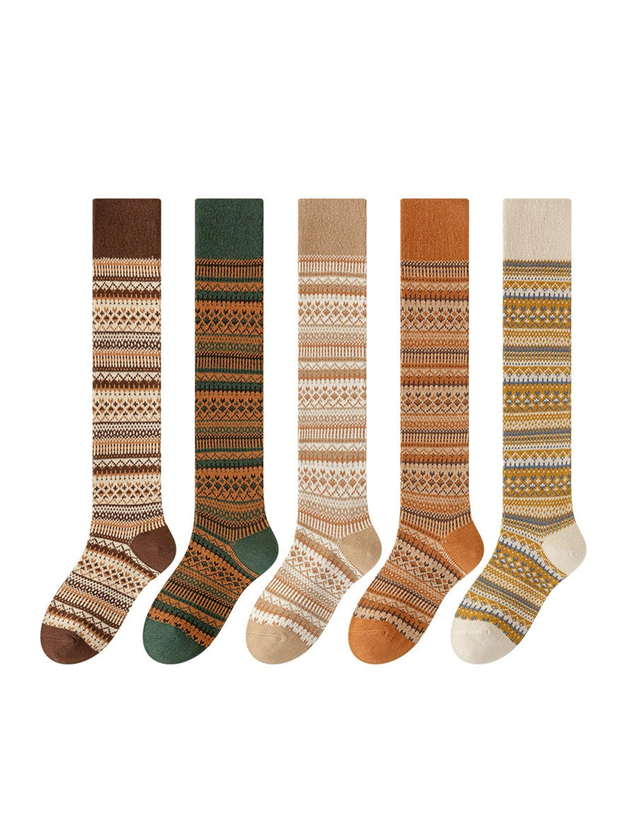5 pari ženskih zimskih prugastih pamučnih dugih čarapa