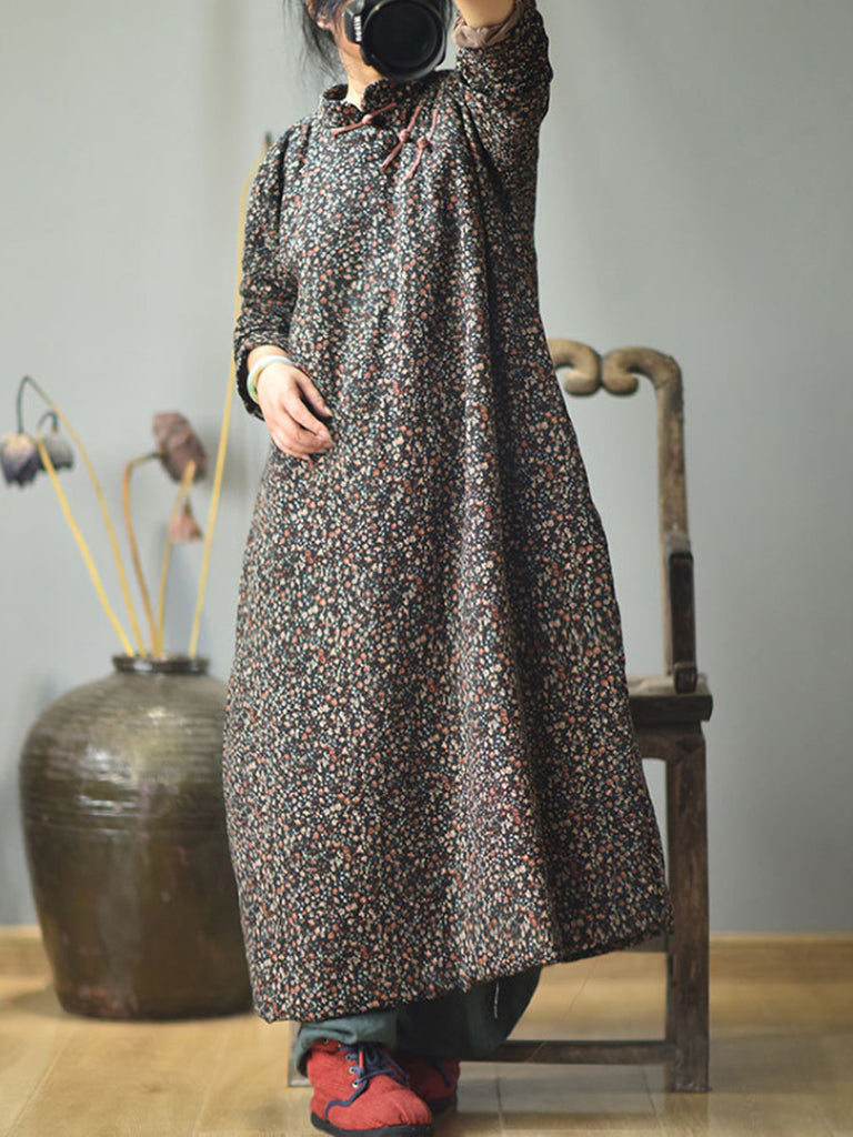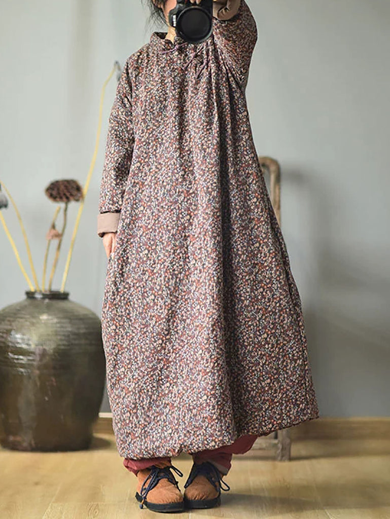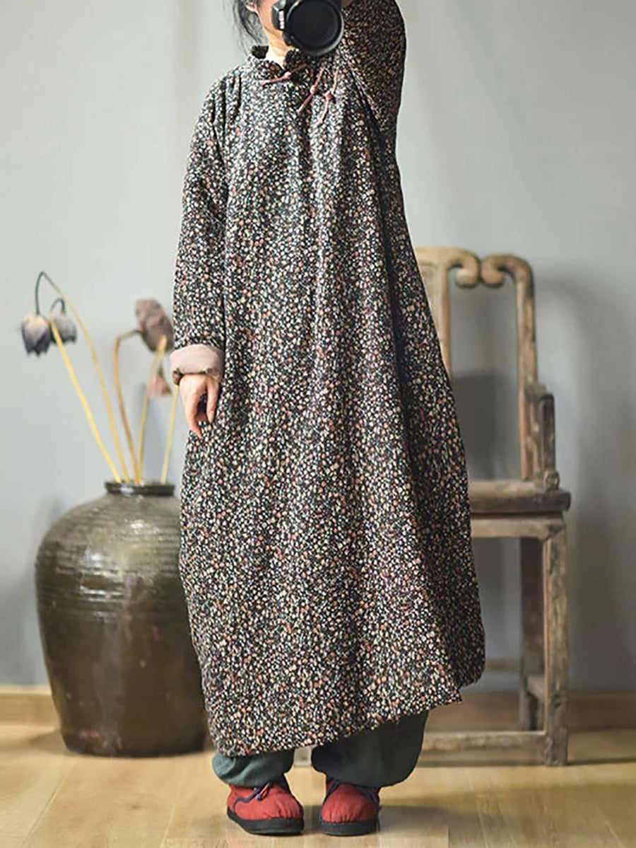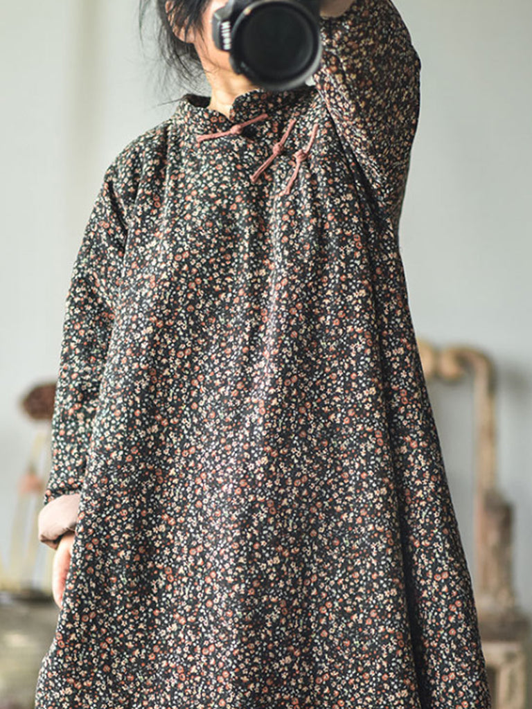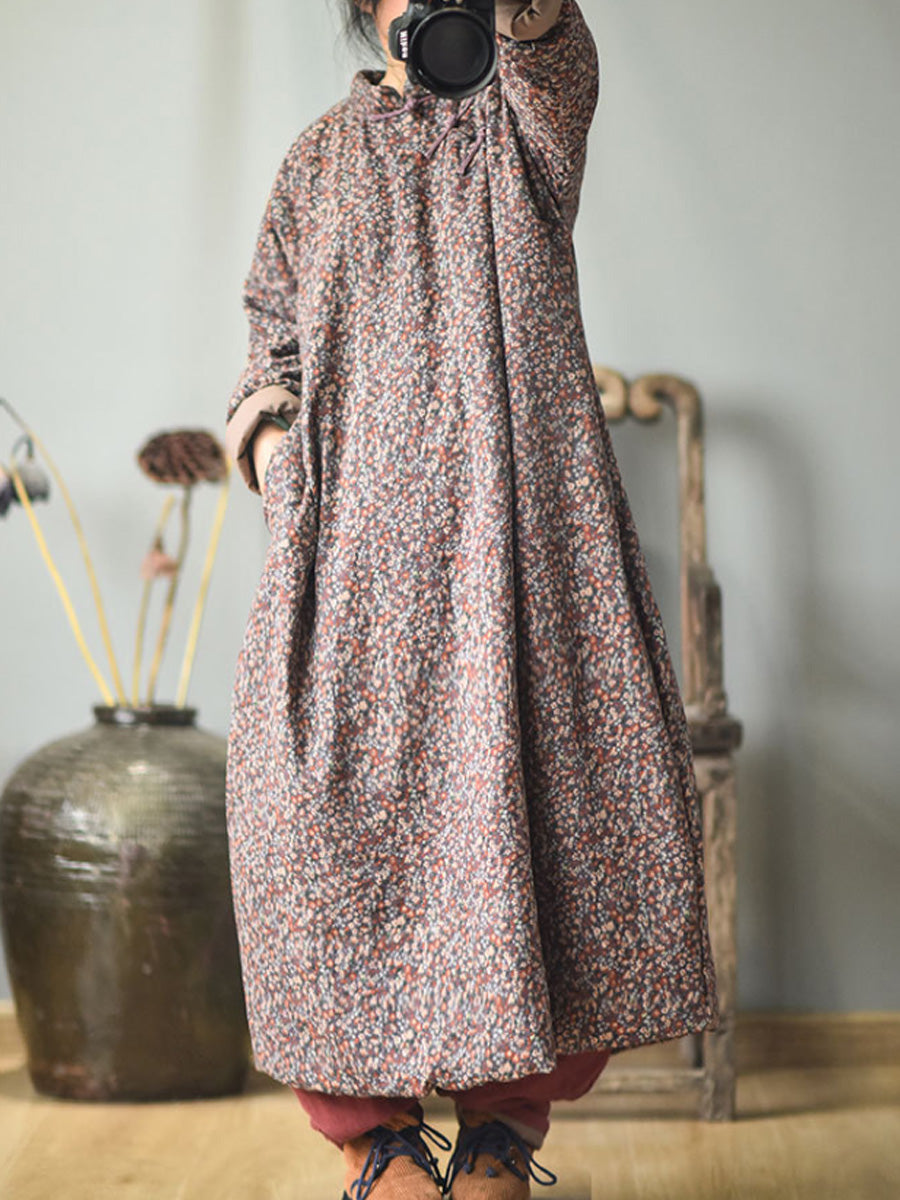 Velika veličina - jesenska ženska široka pamučna haljina s cvjetnim motivima