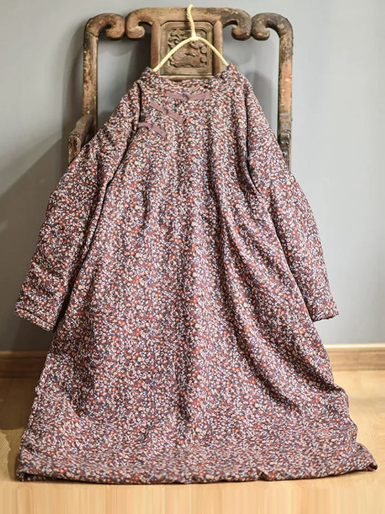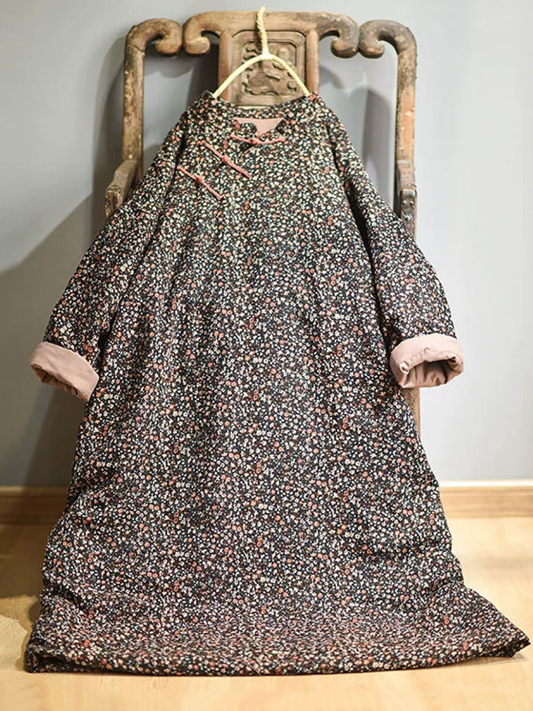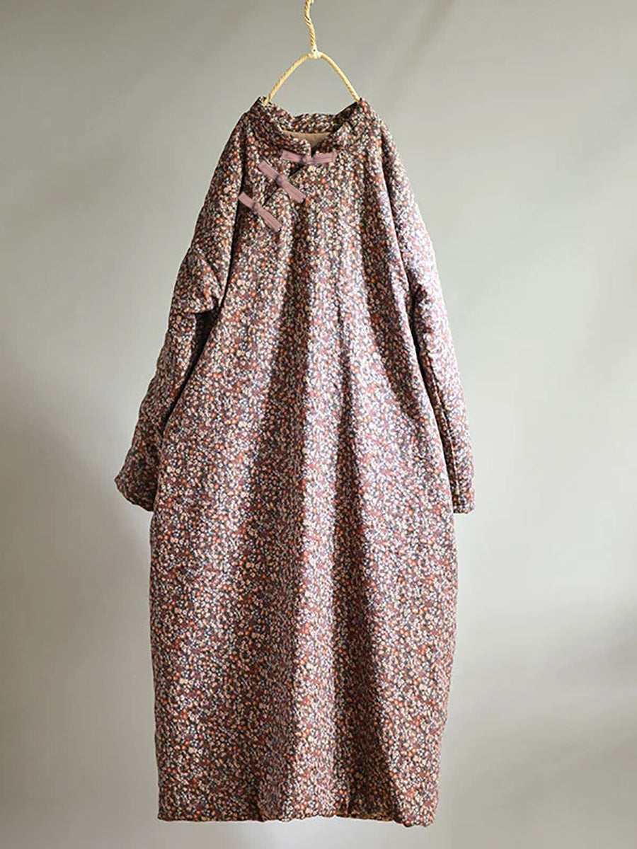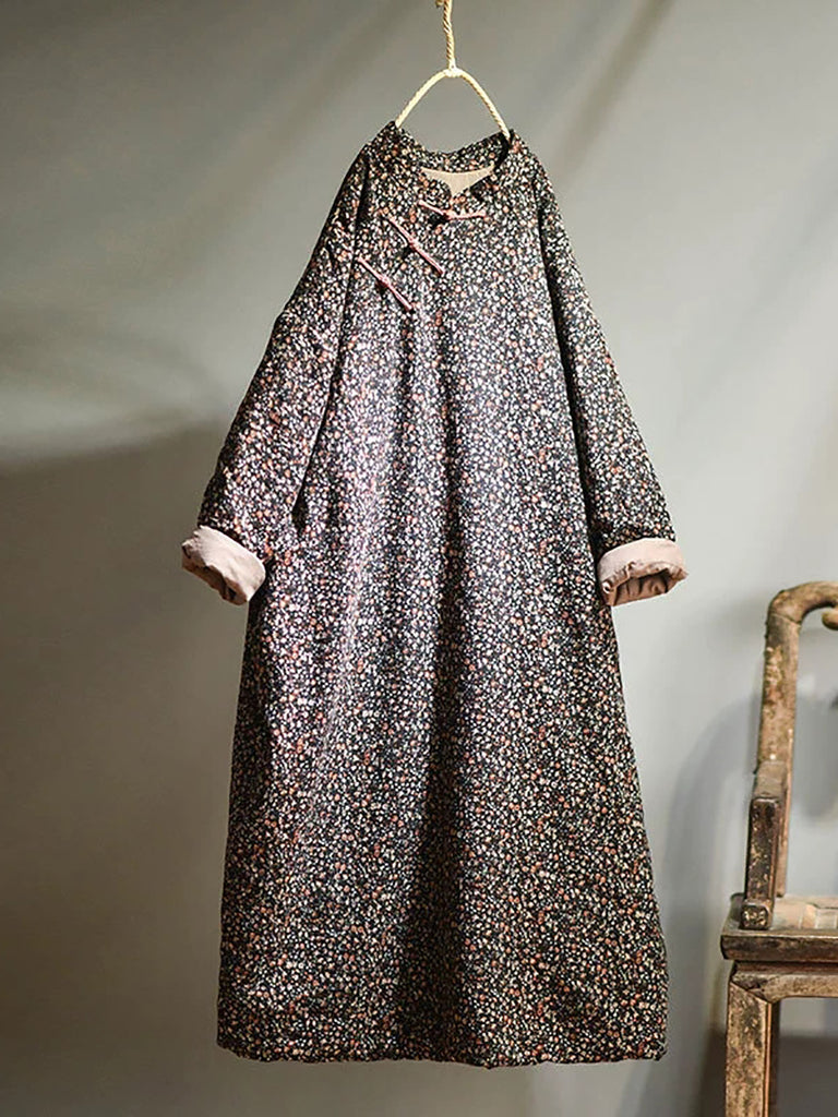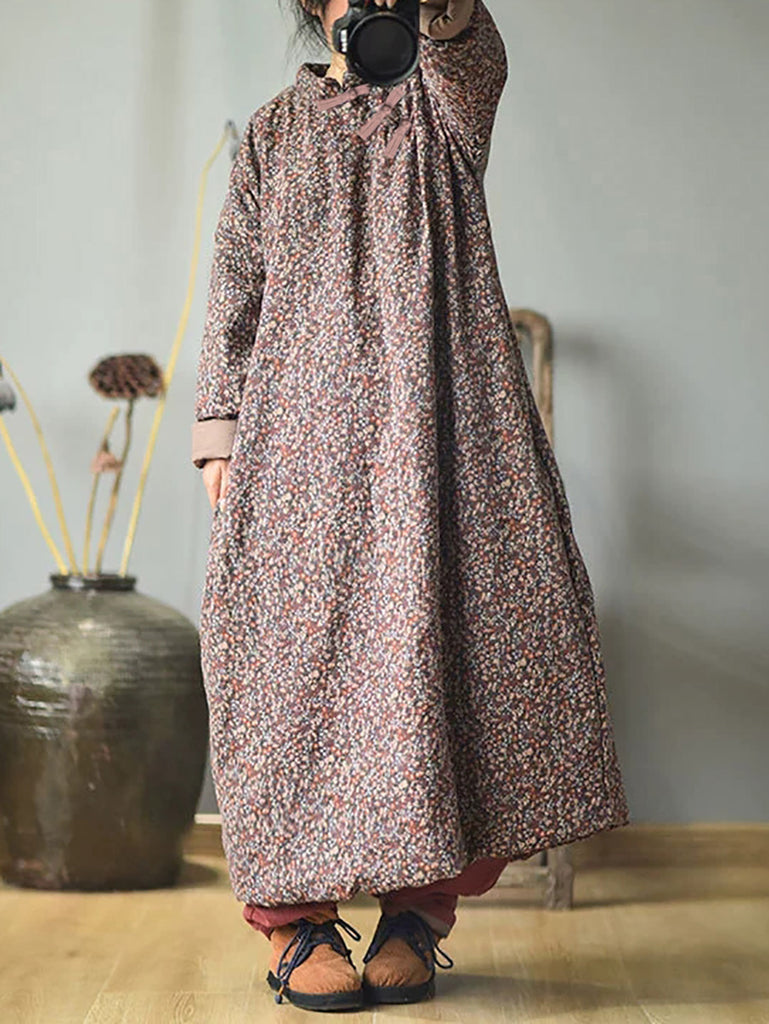 Velika veličina - jesenska ženska široka pamučna haljina s cvjetnim motivima