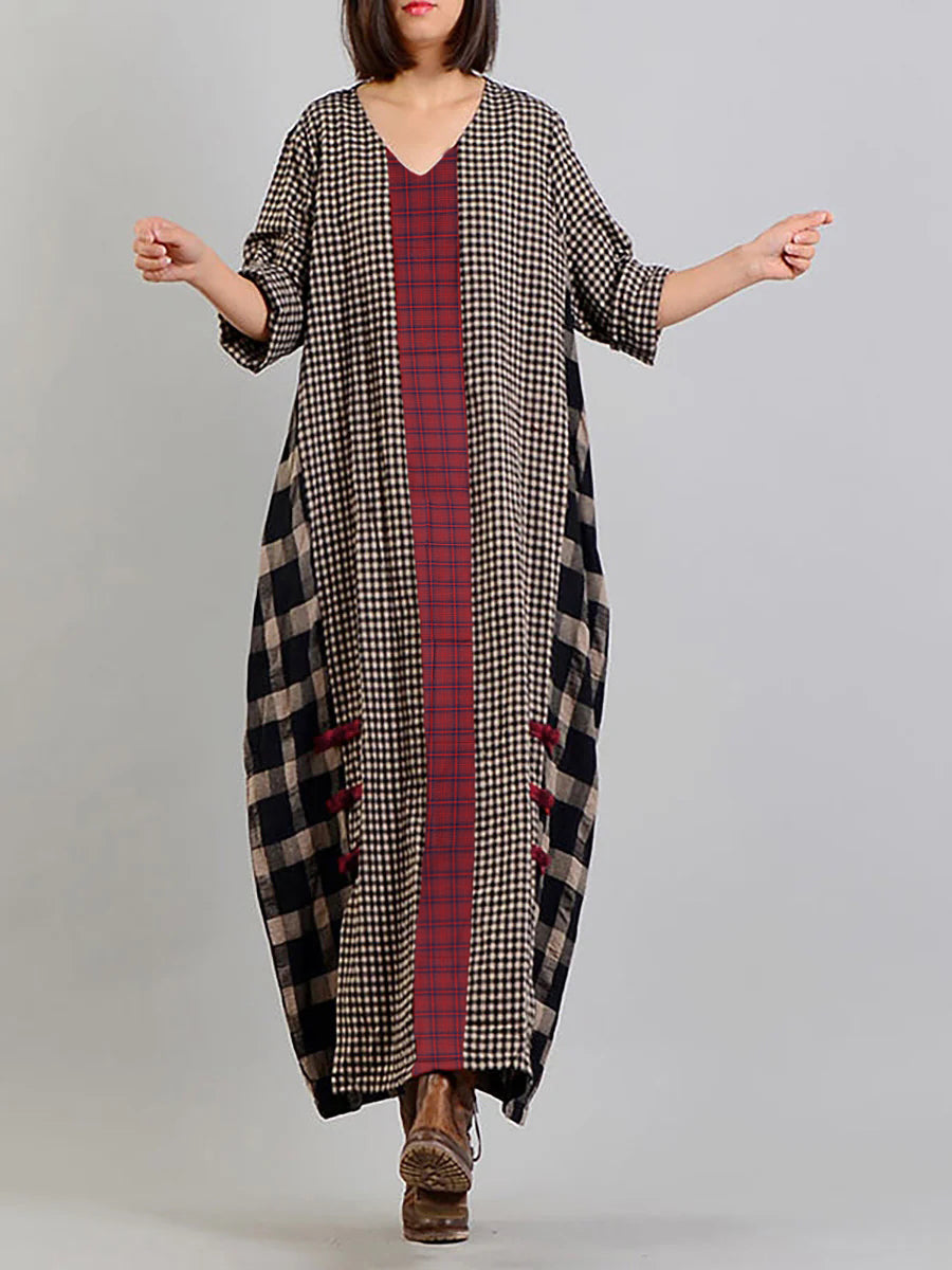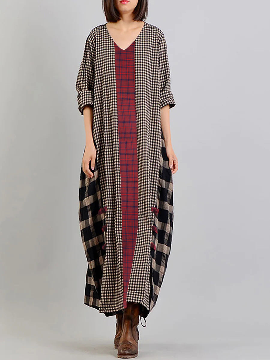 Retro karirana haljina od pamučnog platna veće veličine različitih boja