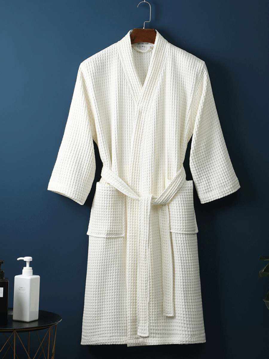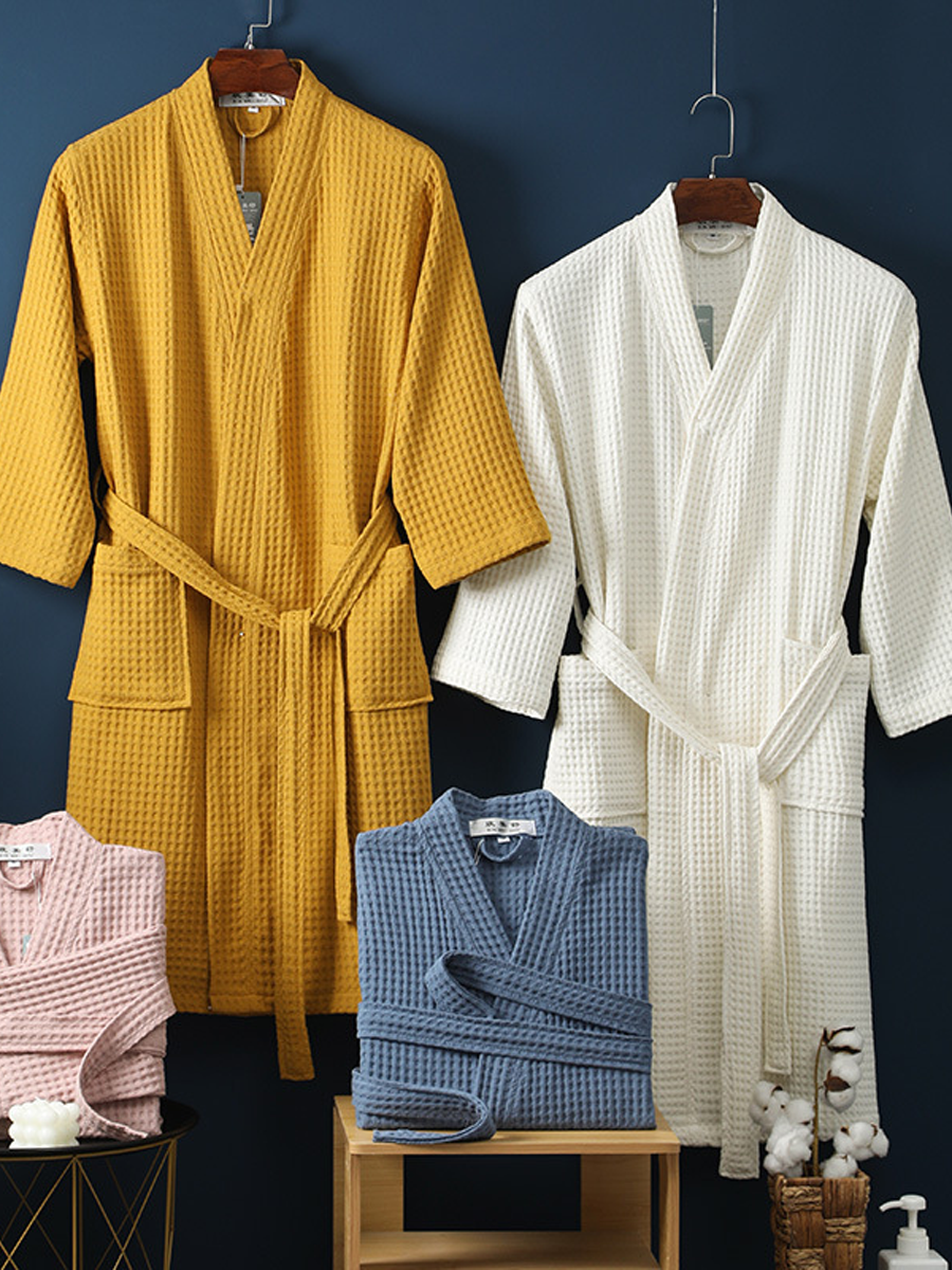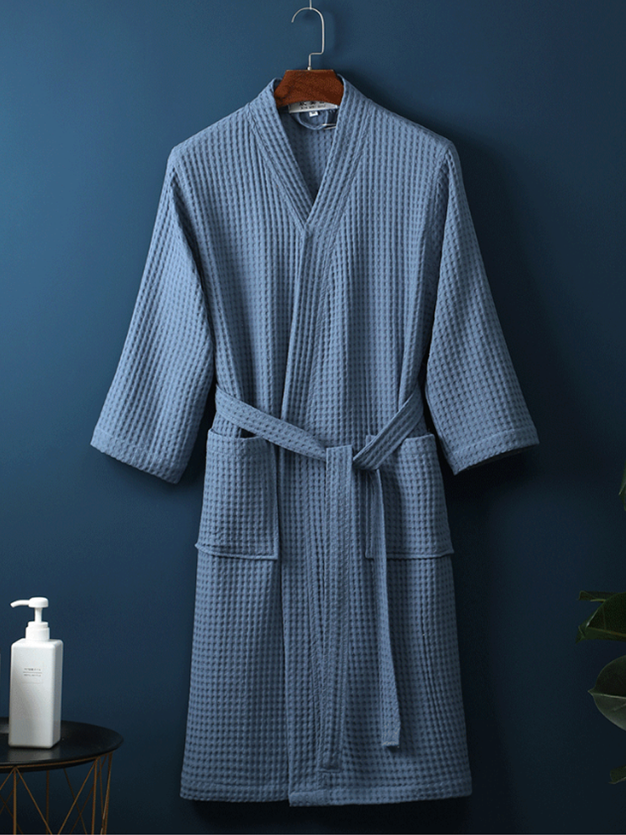 Ovaj je proizvod izrađen od 100% pamuka i ima ovratnik na okretanje, geometrijski uzorak, obične rukave, punu duljinu rukava, duljinu do gležnja i istaknuti remen. Pogodan je za korištenje u proljeće, jesen i zimu.