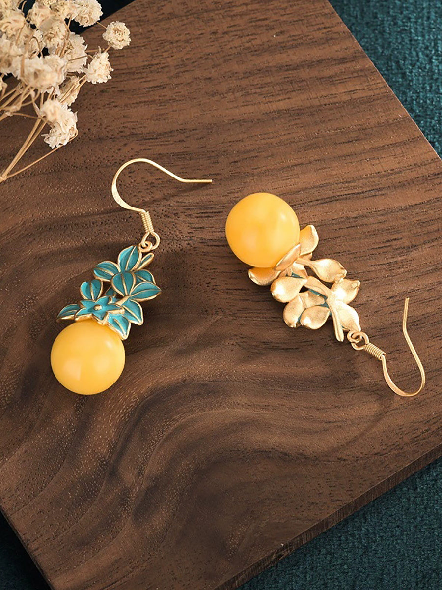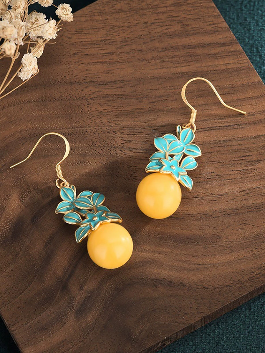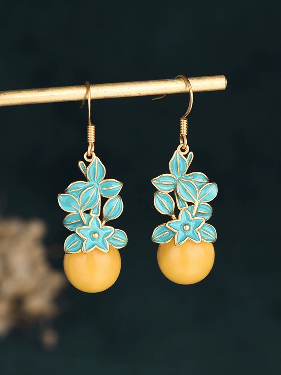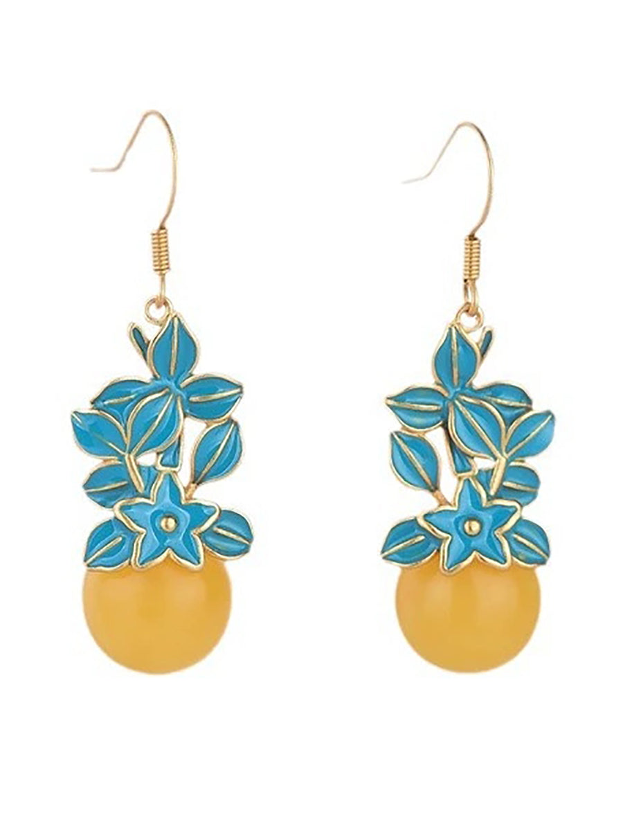 Naušnice od legure s vintage voštanim perlicama i emajlom u obliku cvijeta