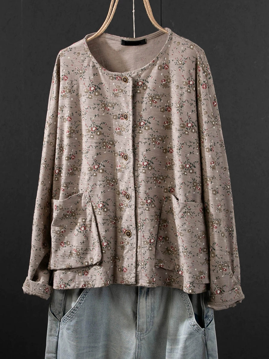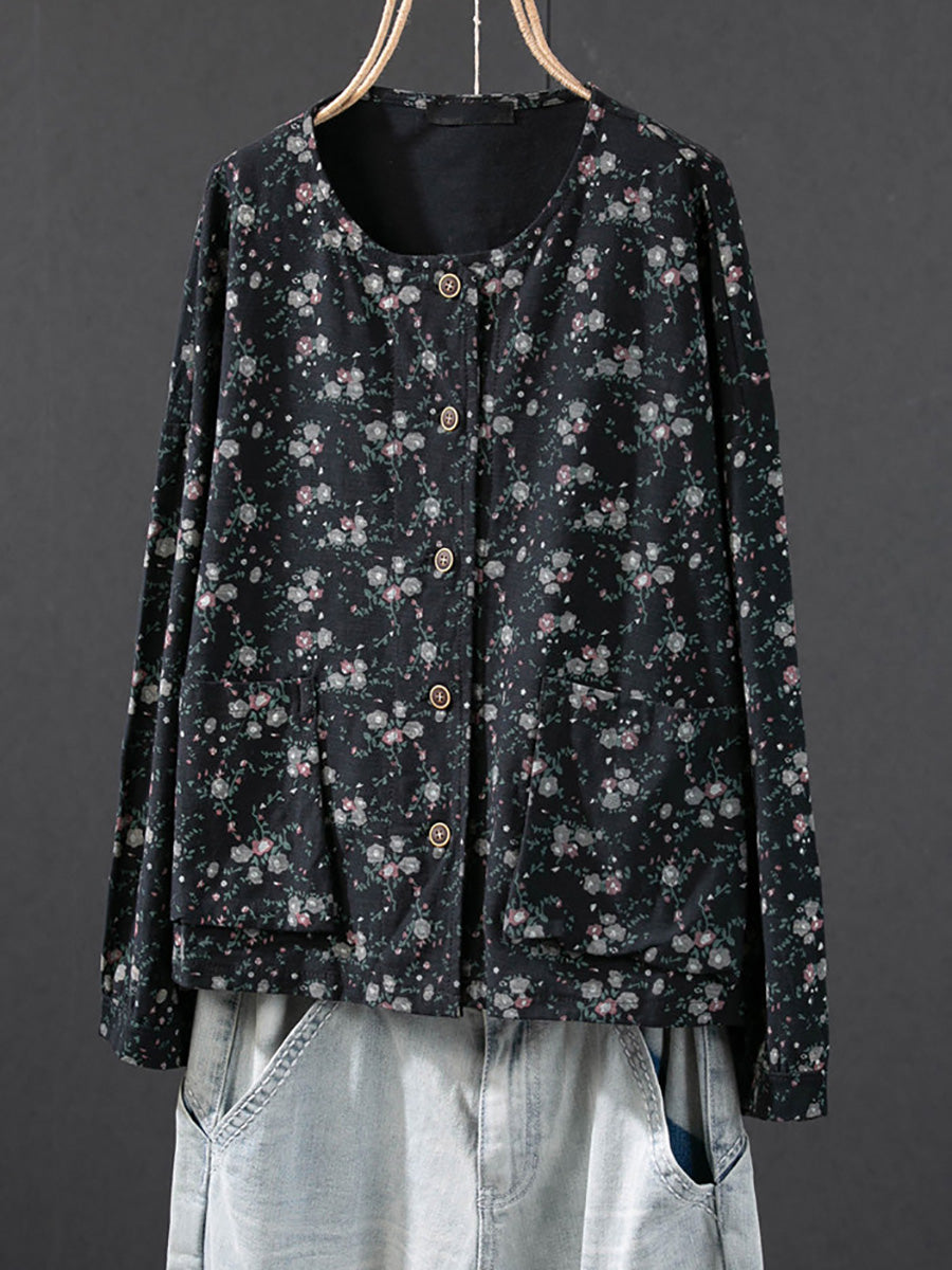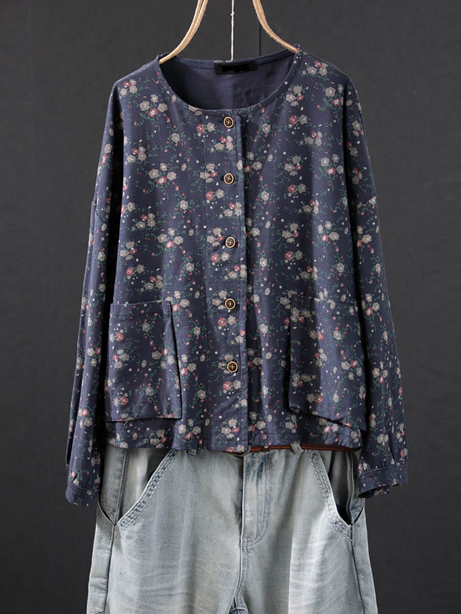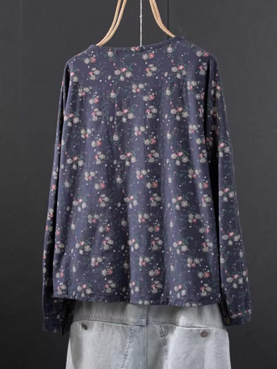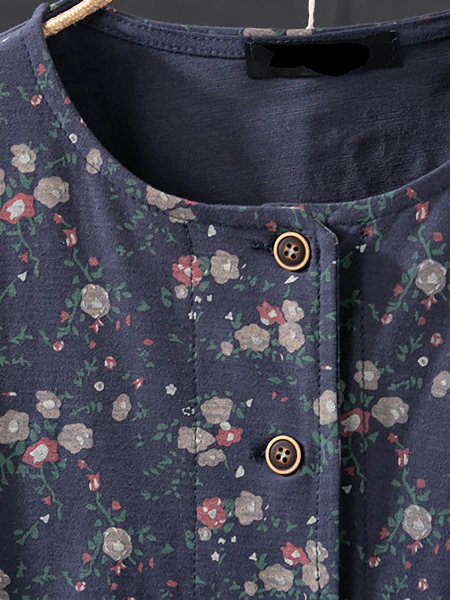 Ženska umjetnička proljetna cvjetna pamučna majica s O-izrezom
