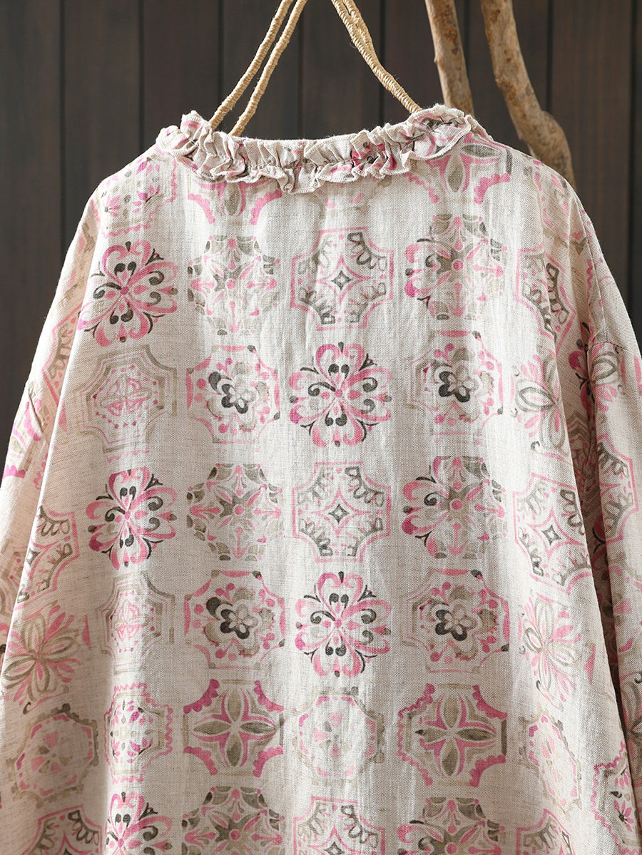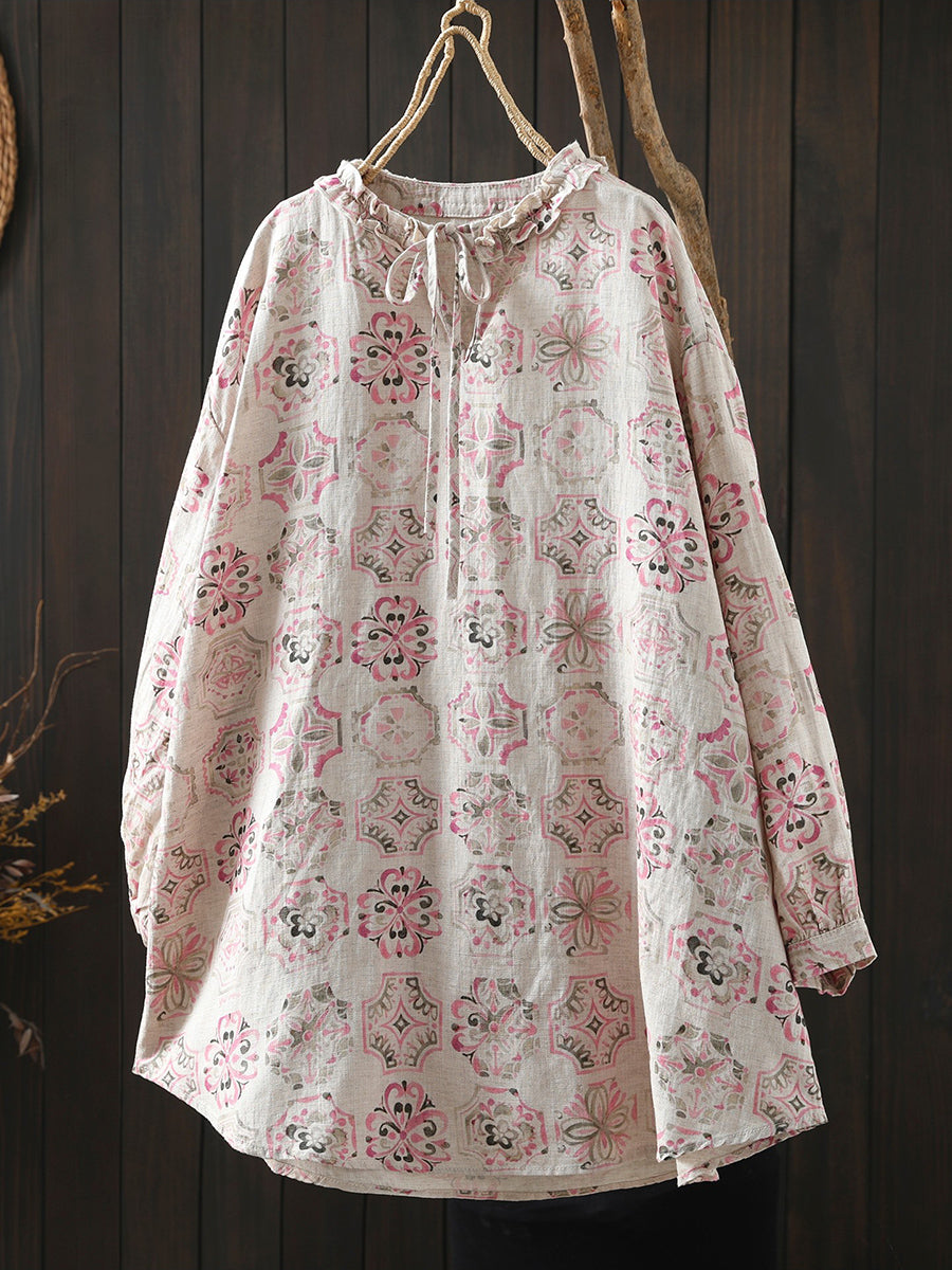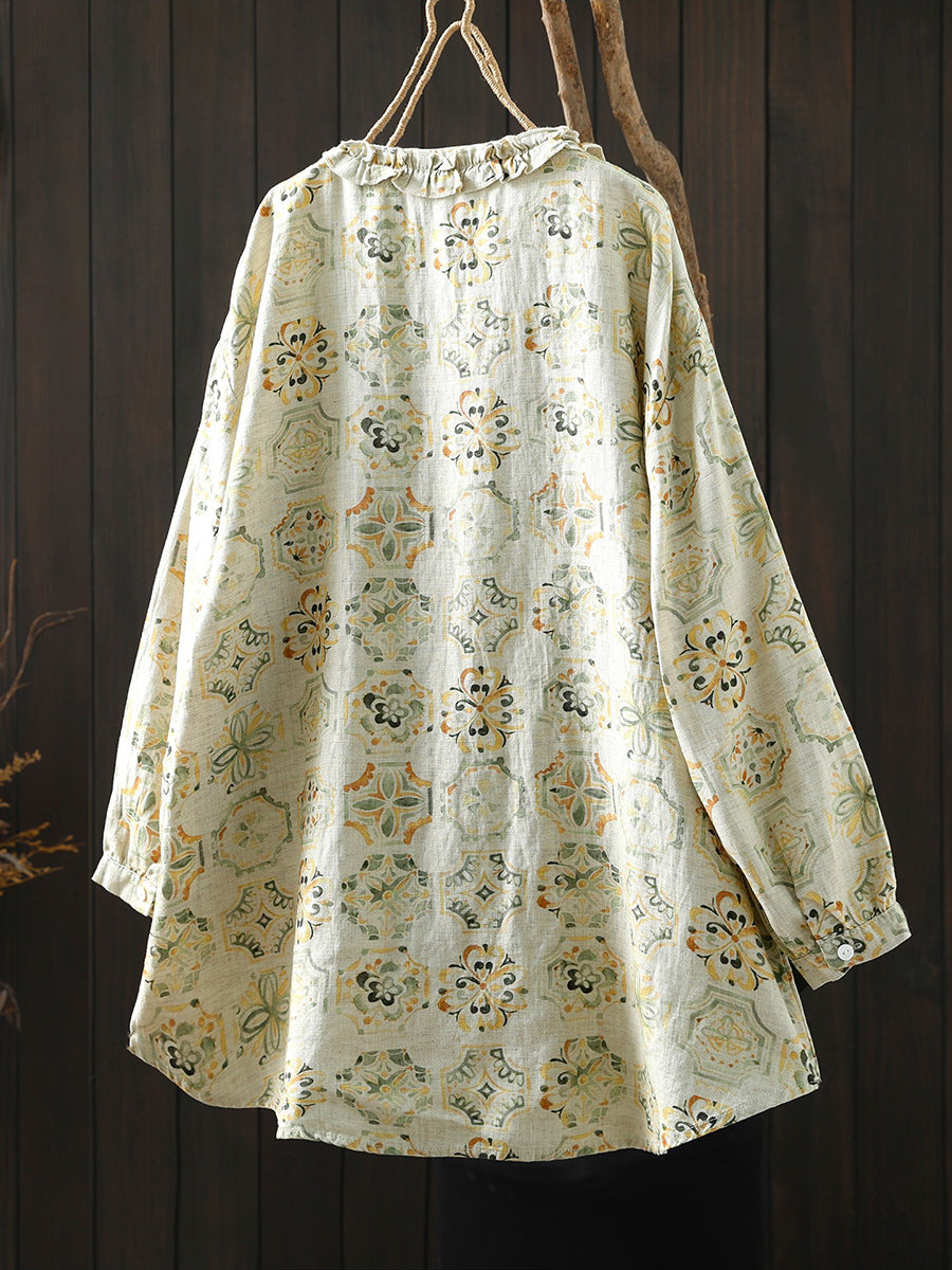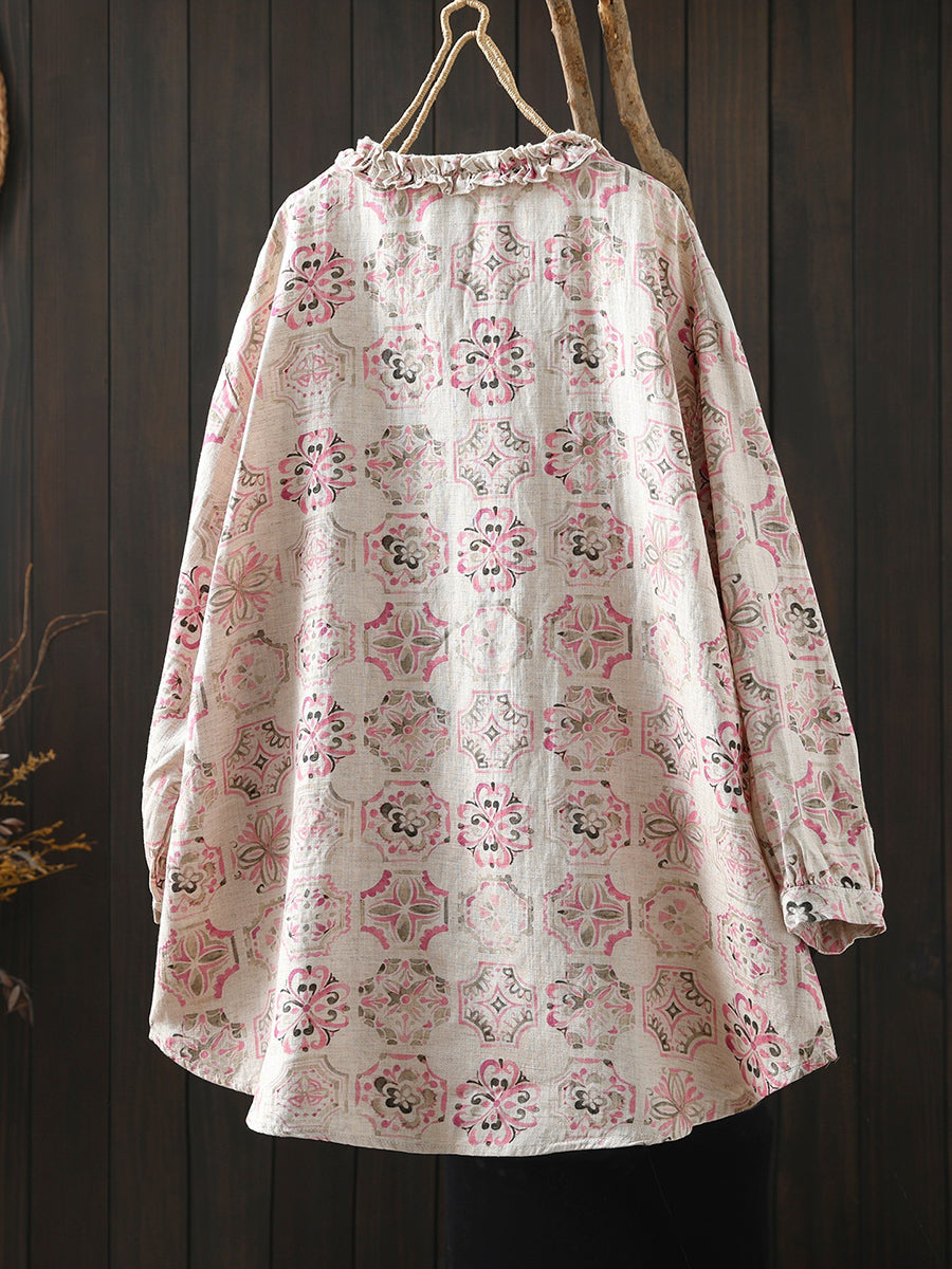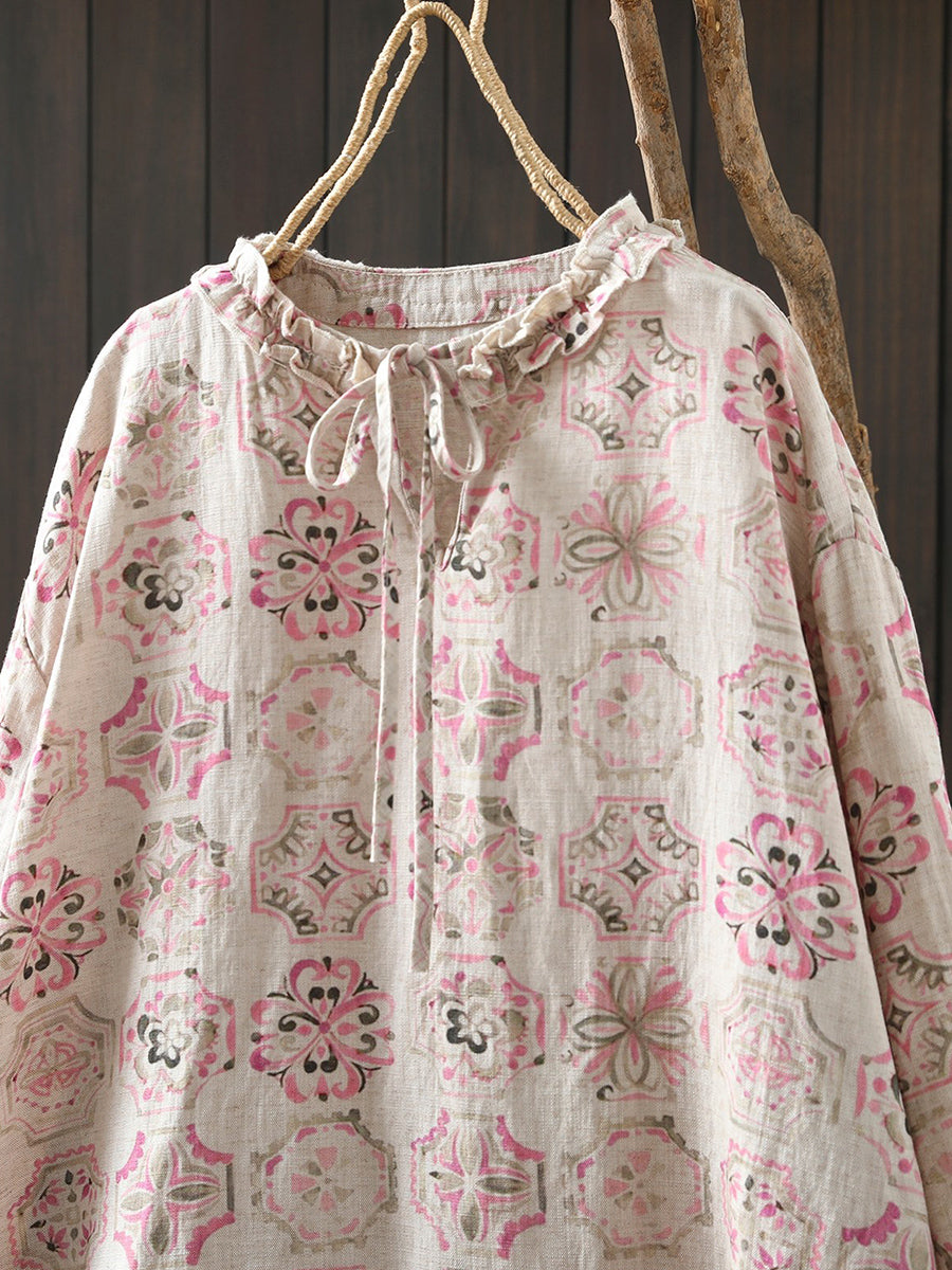 Ženska umjetnička bluza od 100% lana s proljetnim cvijećem