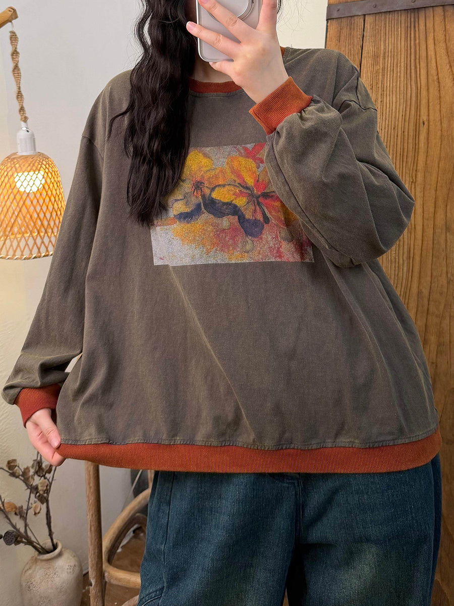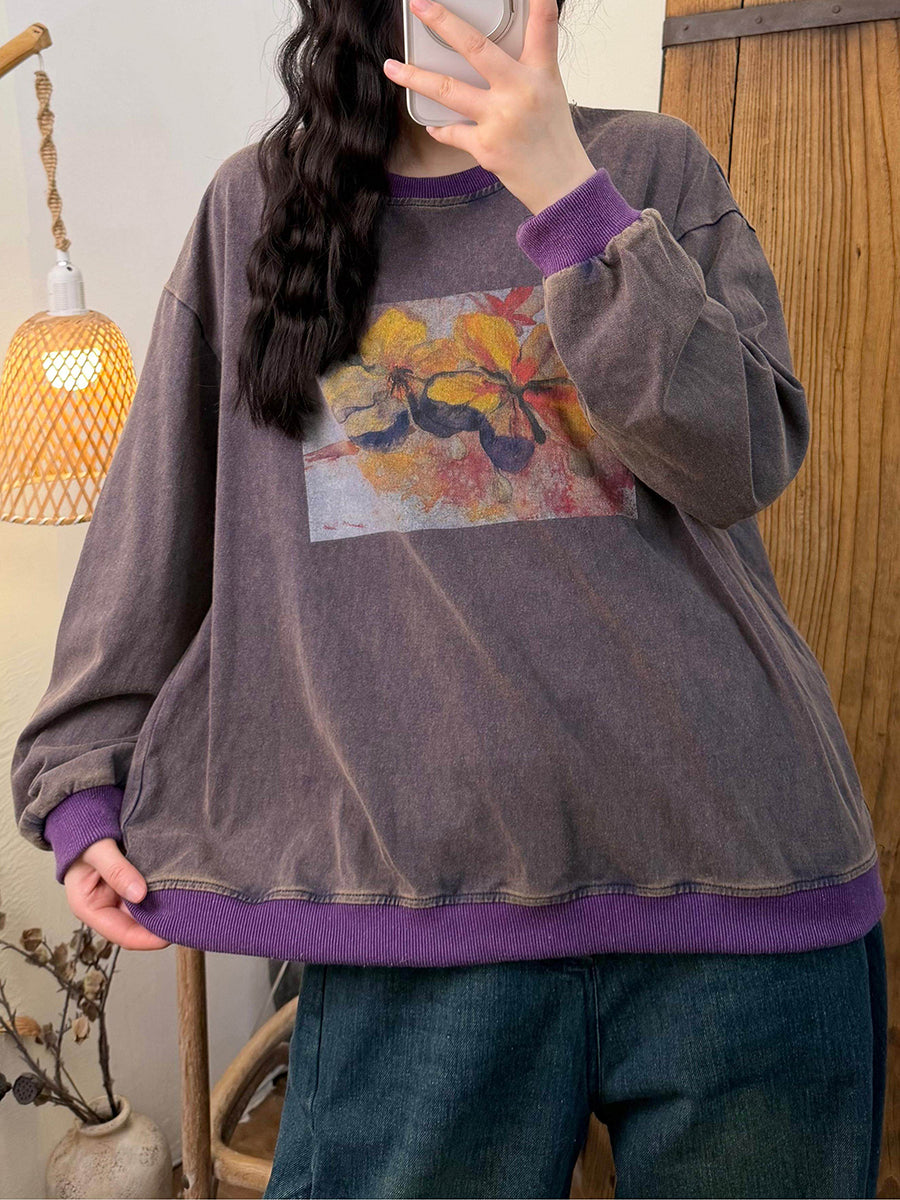 Ženska umjetnička pamučna bluza s O-izrezom i proljetnim cvijećem