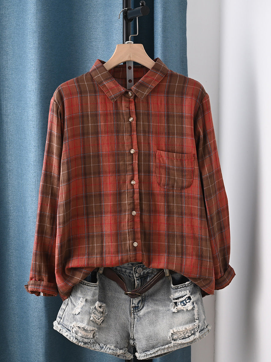 Ženska umjetnička proljetna karirana košulja od 100% pamuka