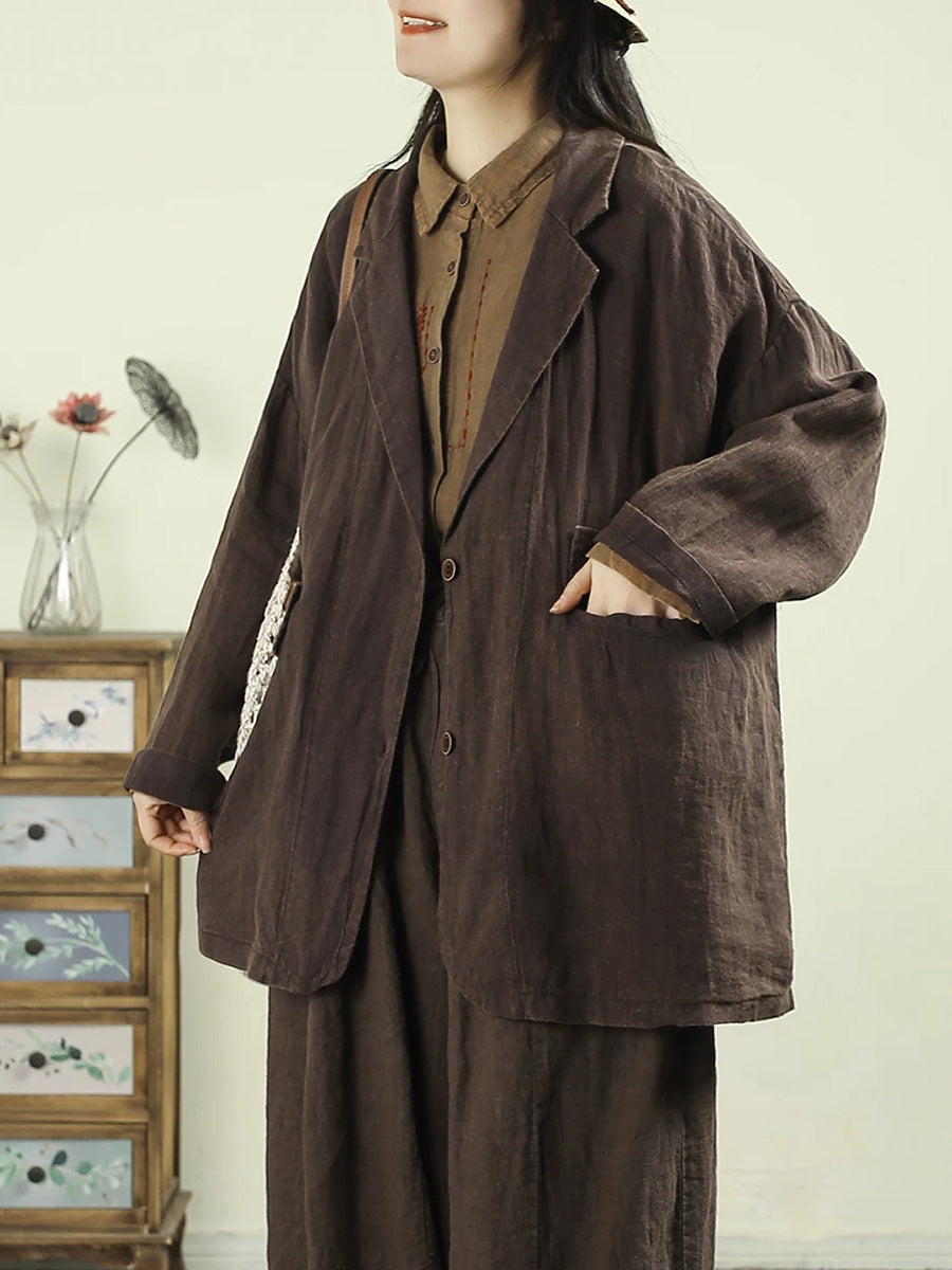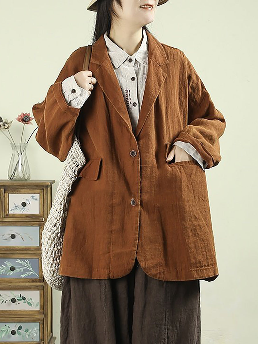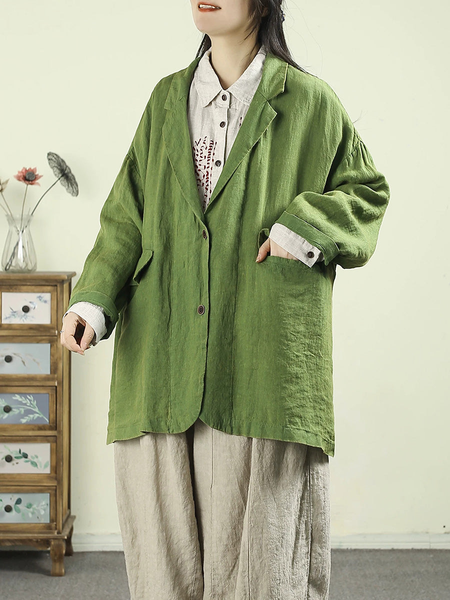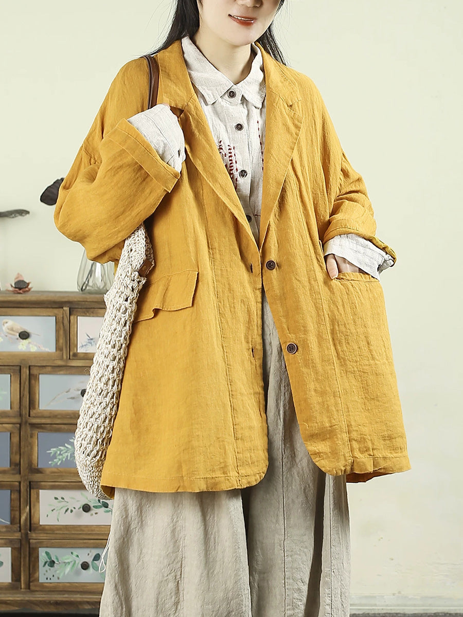 Ženski umjetnički proljetni kaput od 100% lana u čistim bojama