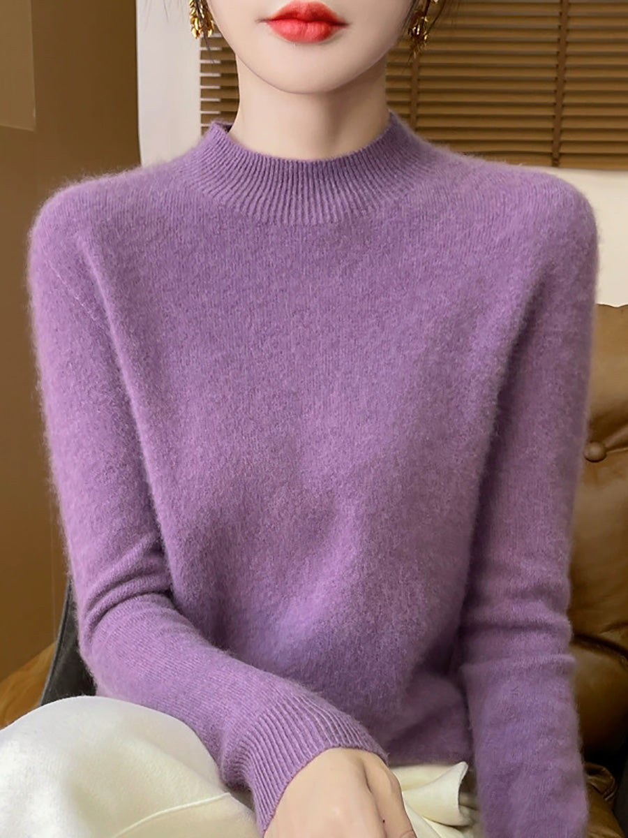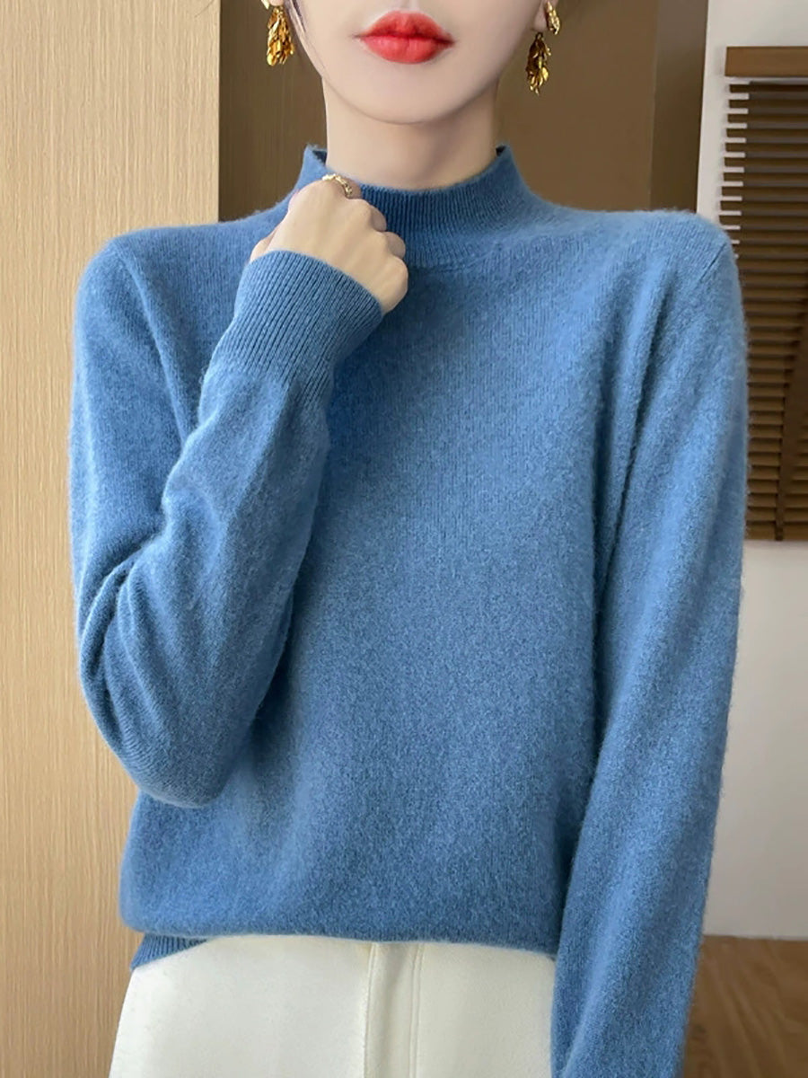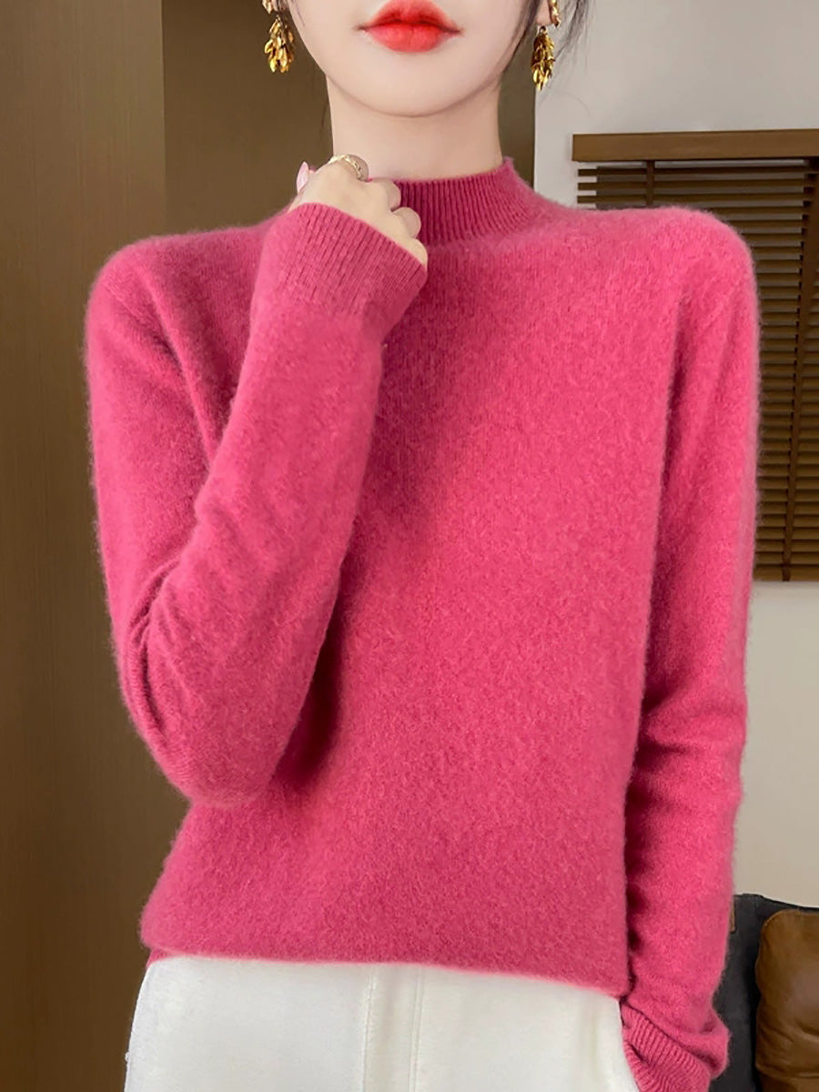Ženski umjetnički proljetni pulover s polu-rolkom u čistim bojama