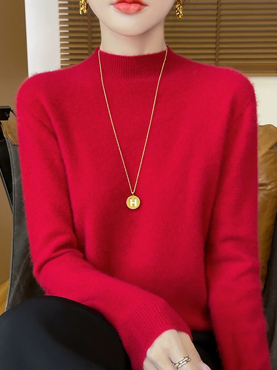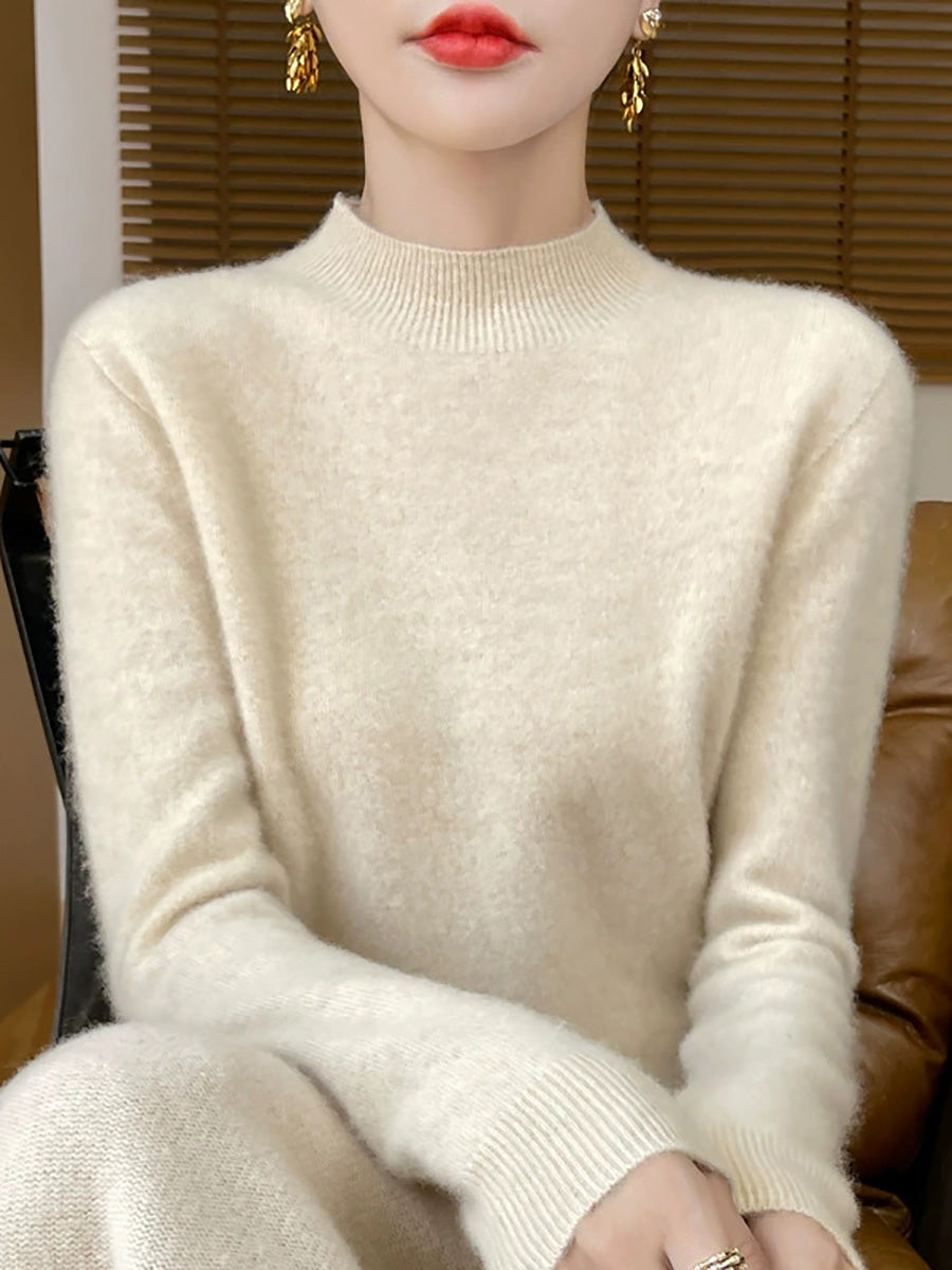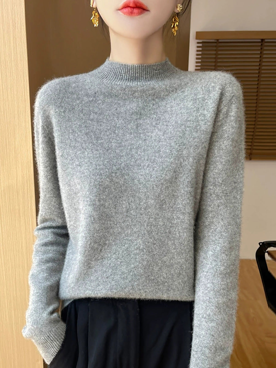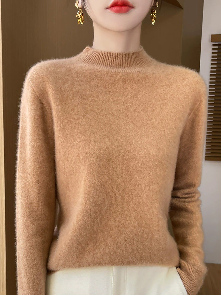 Ženski umjetnički proljetni pulover s polu-rolkom u čistim bojama