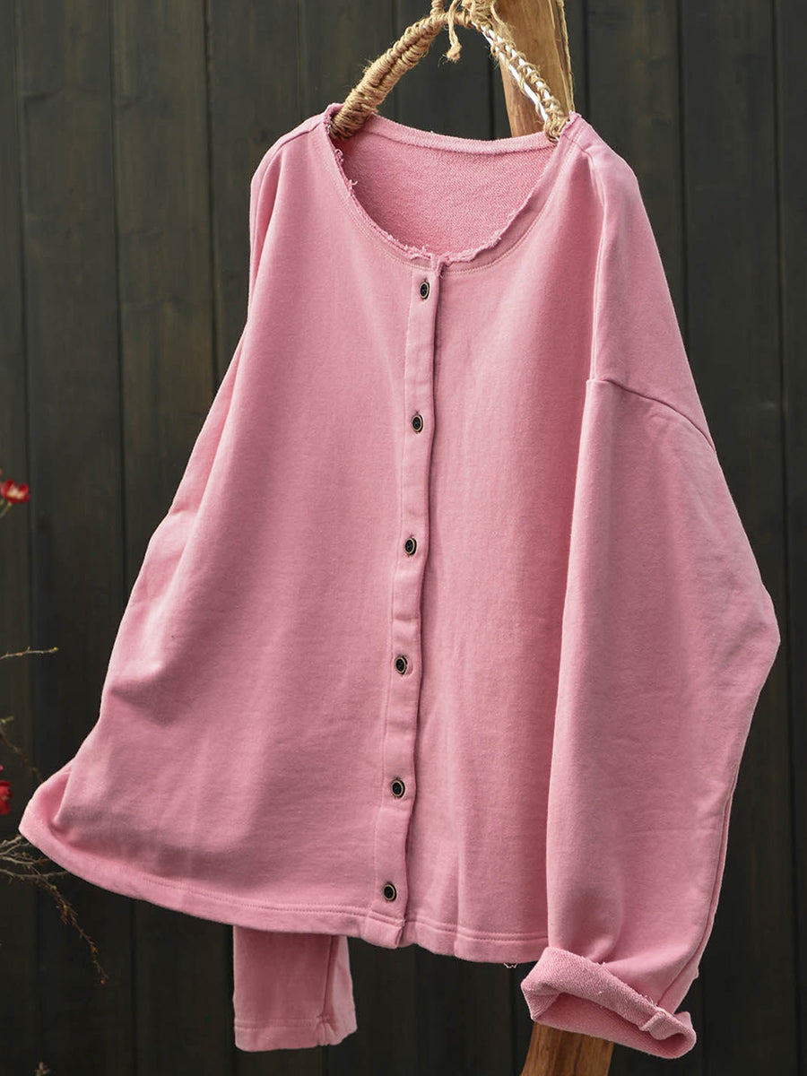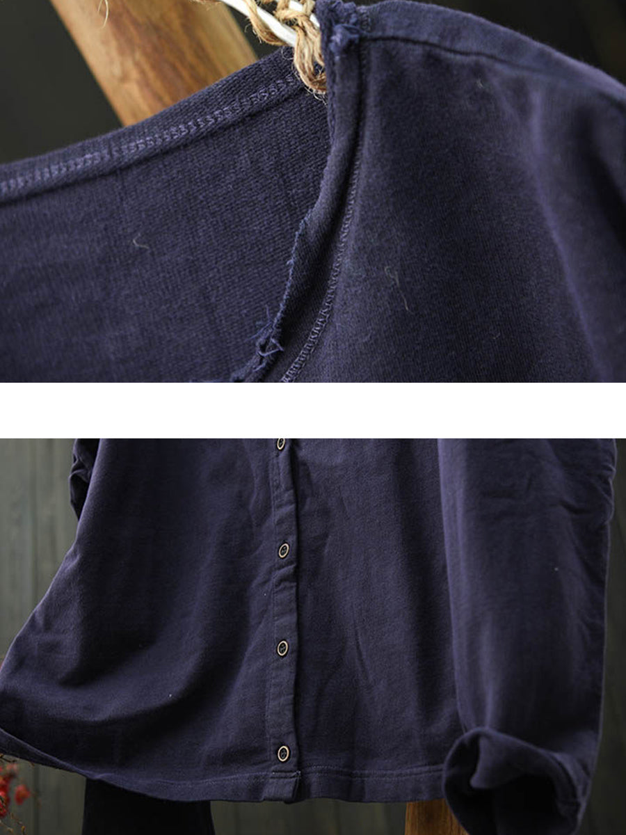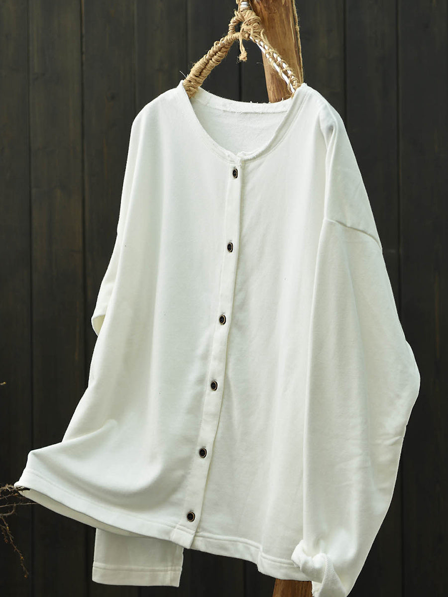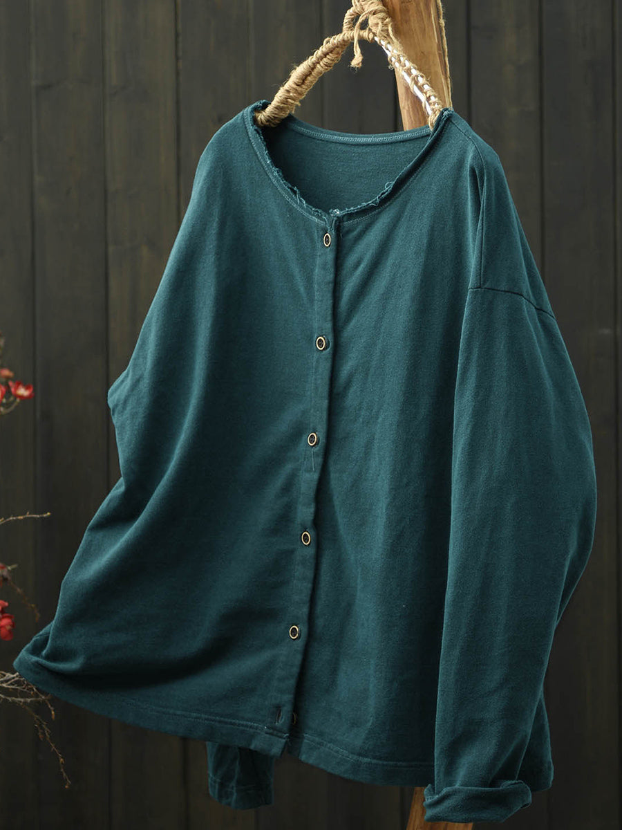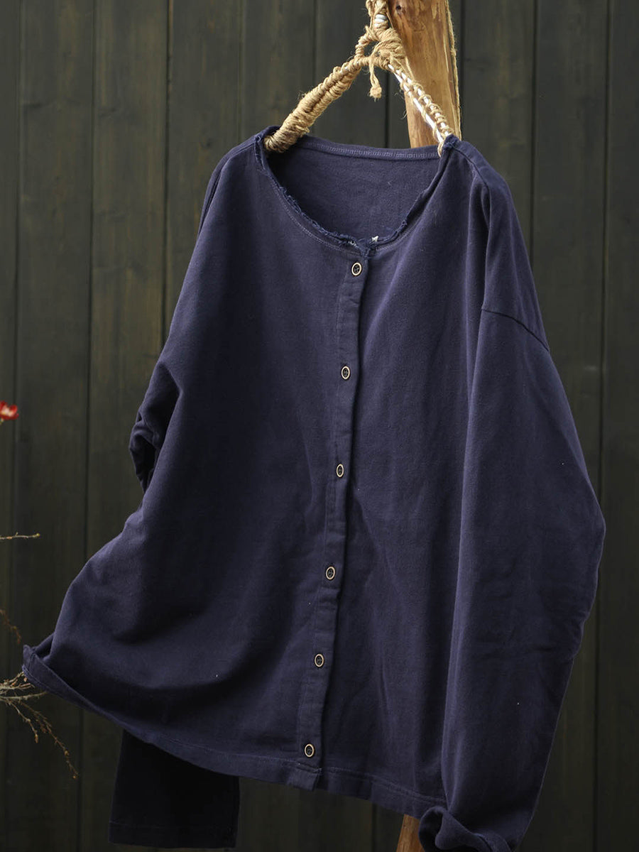 Ženska umjetnička proljetna pamučna košulja s O-izrezom u čistim bojama