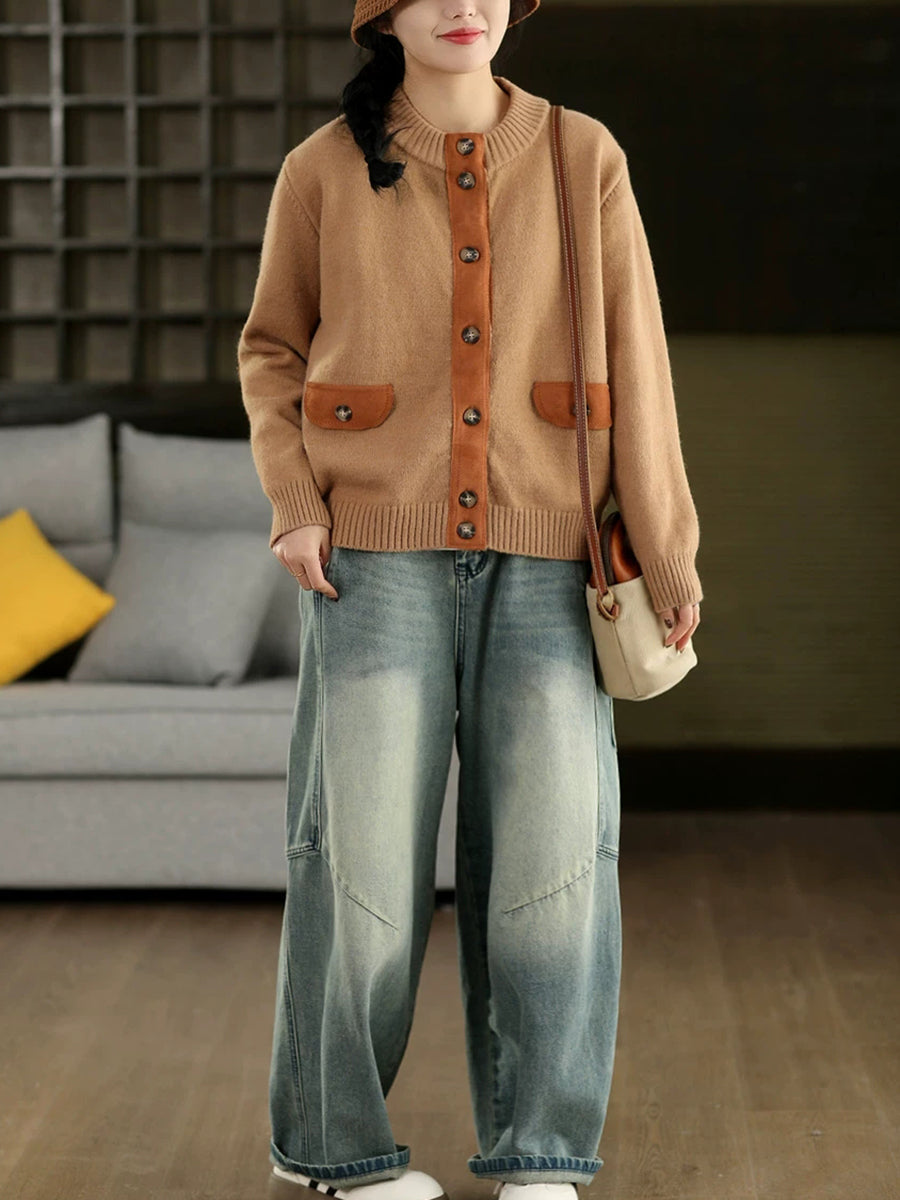 Ženski umjetnički proljetni kardigan s O-izrezom
