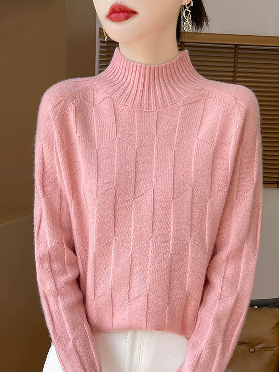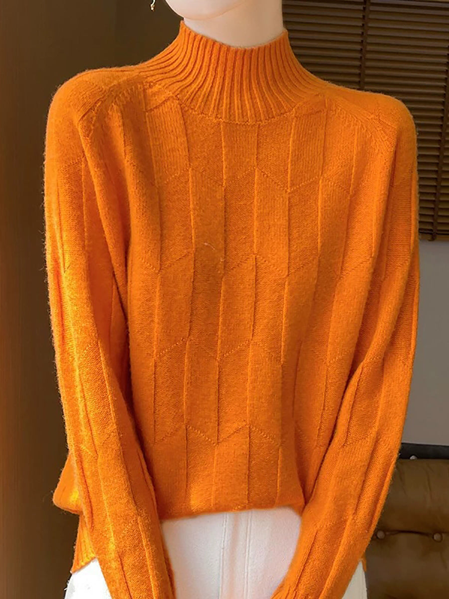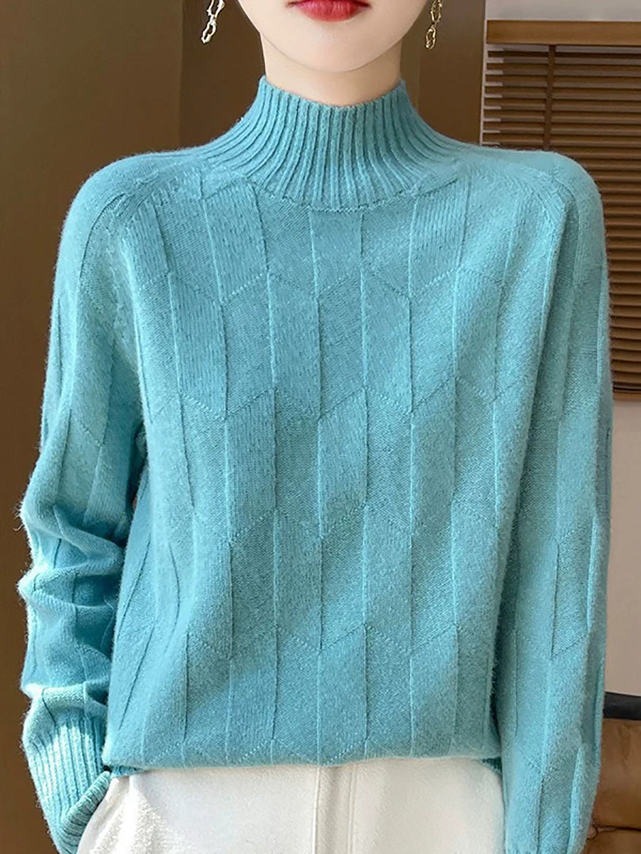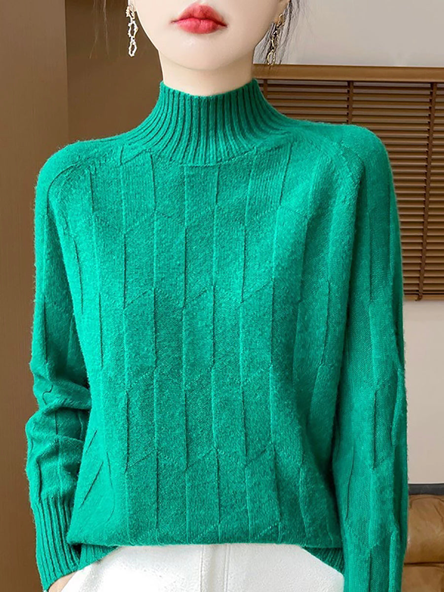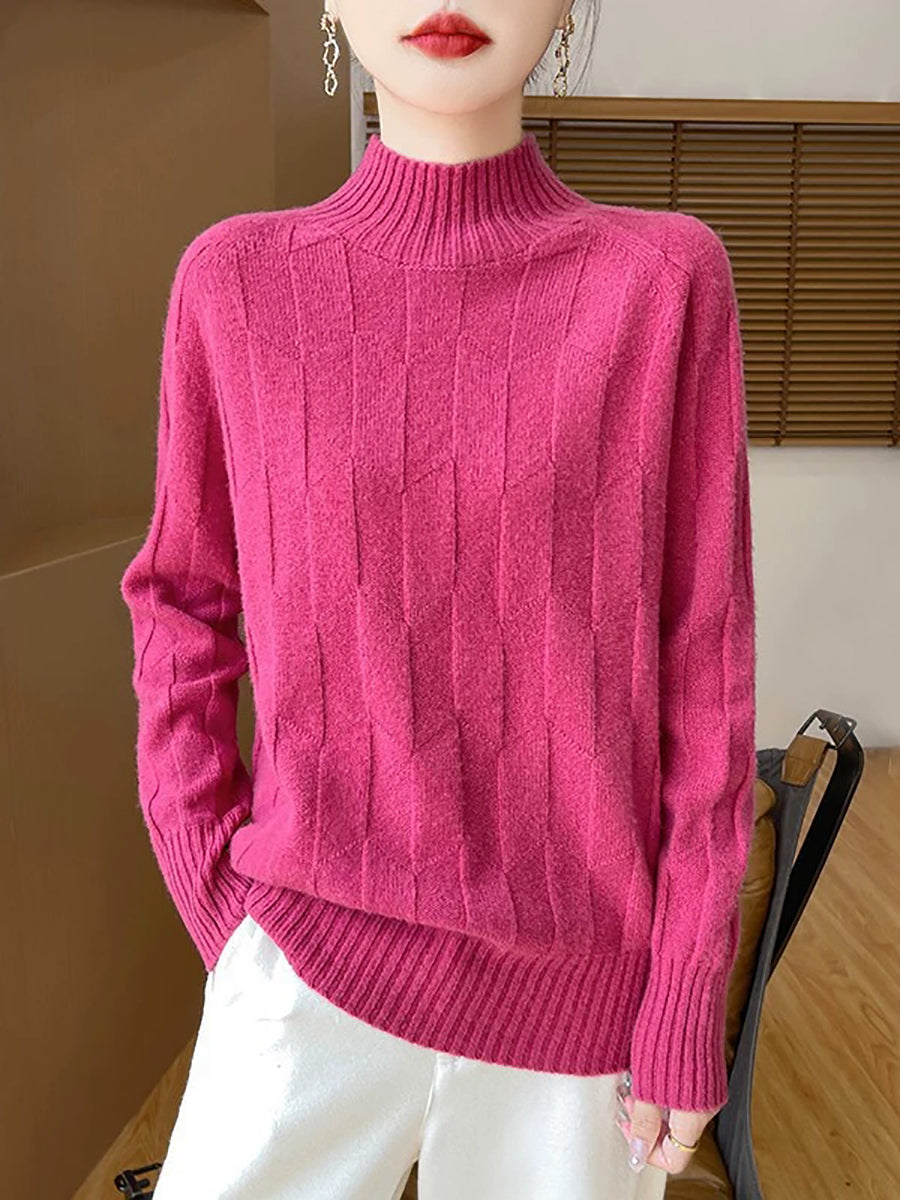 Ženski umjetnički zimski pulover s polu-rolkom u čistim bojama