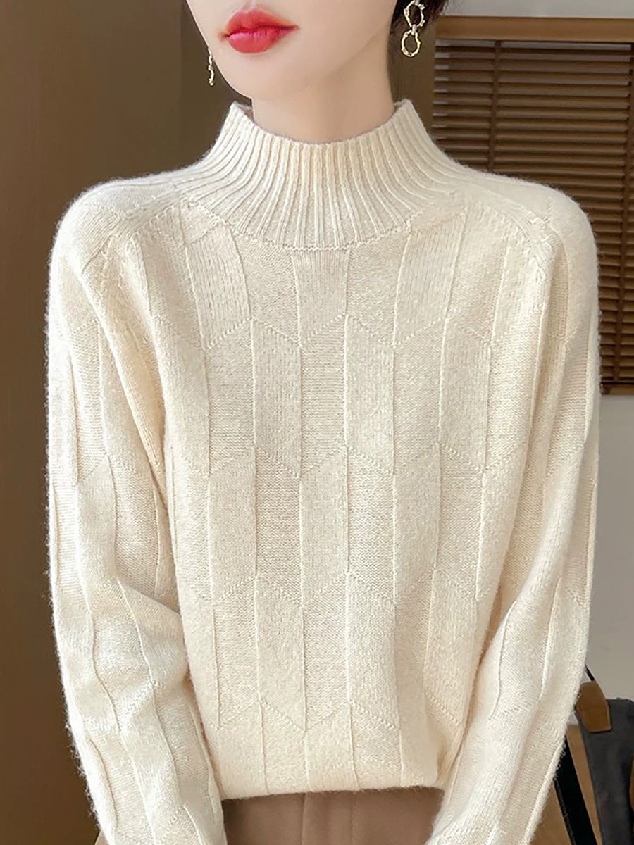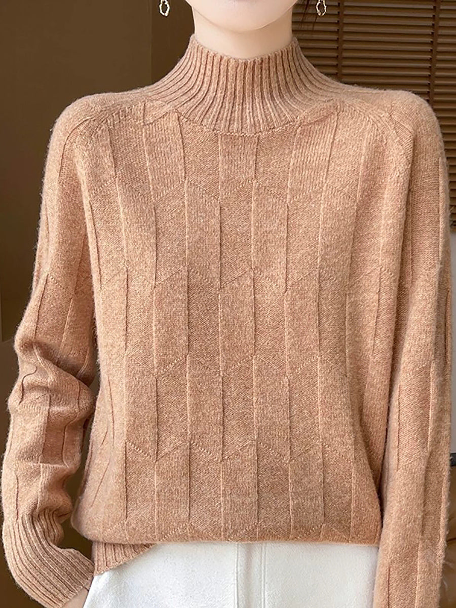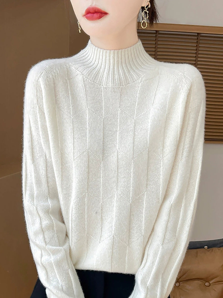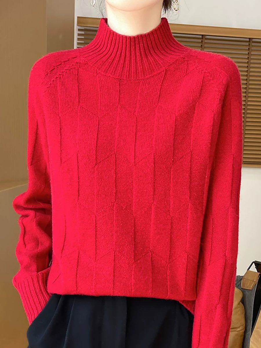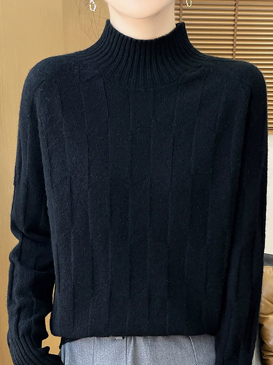Ženski umjetnički zimski pulover s polu-rolkom u čistim bojama