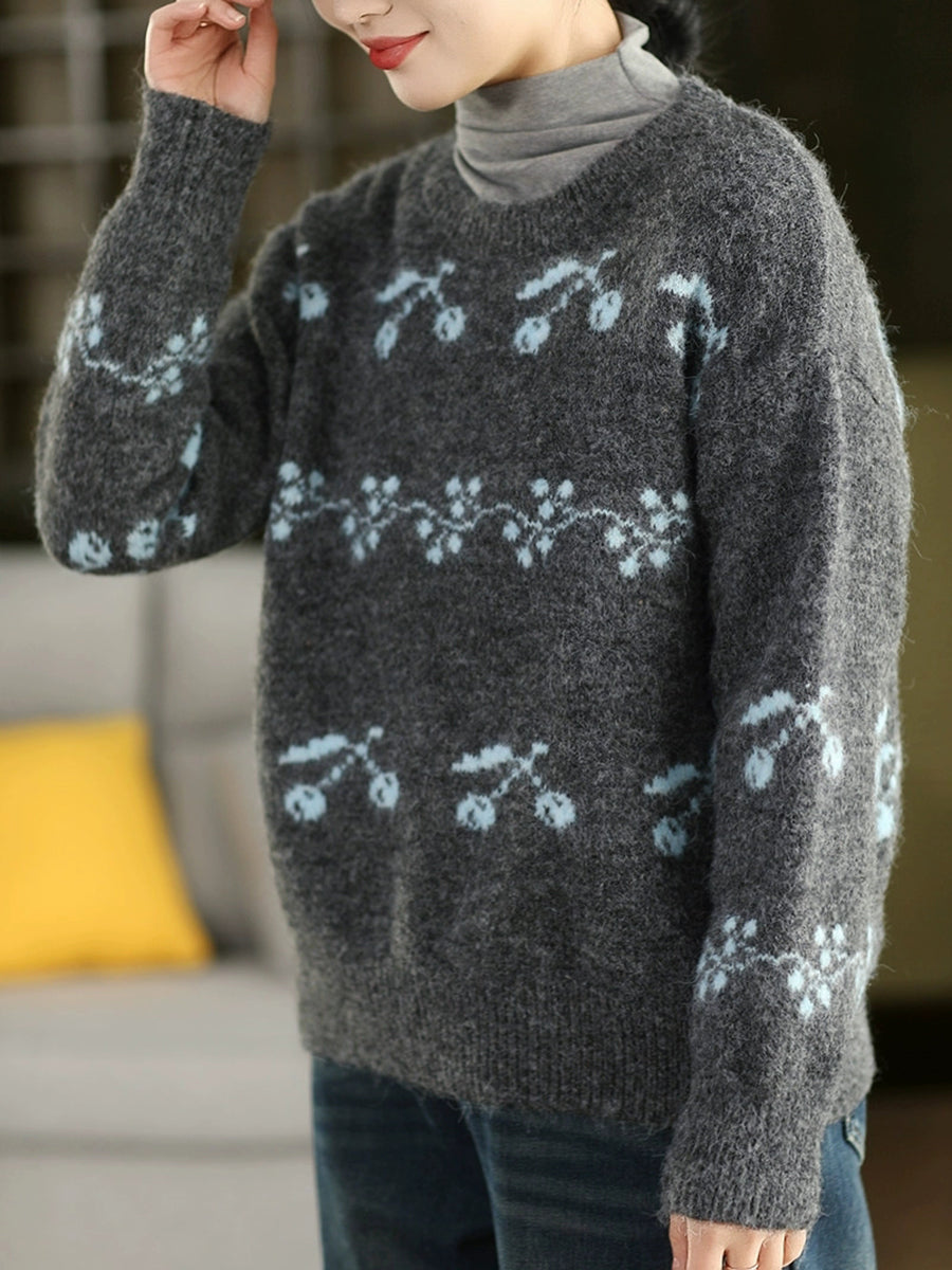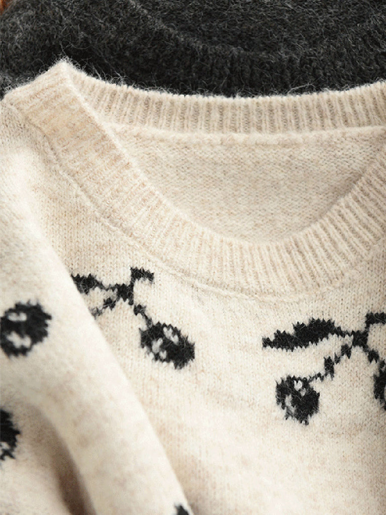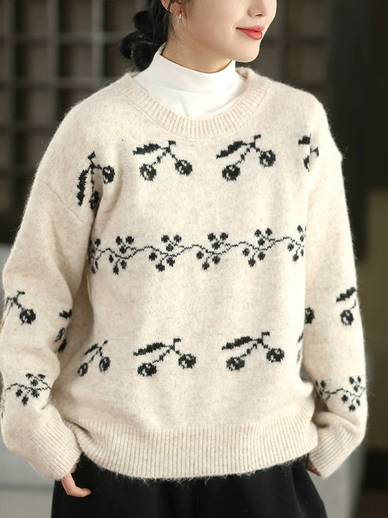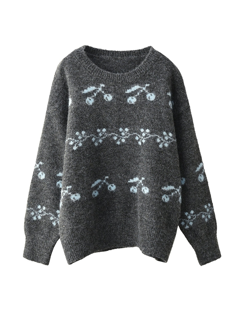 Ženski jesenski umjetnički žakard pulover s O-izrezom od trešnje