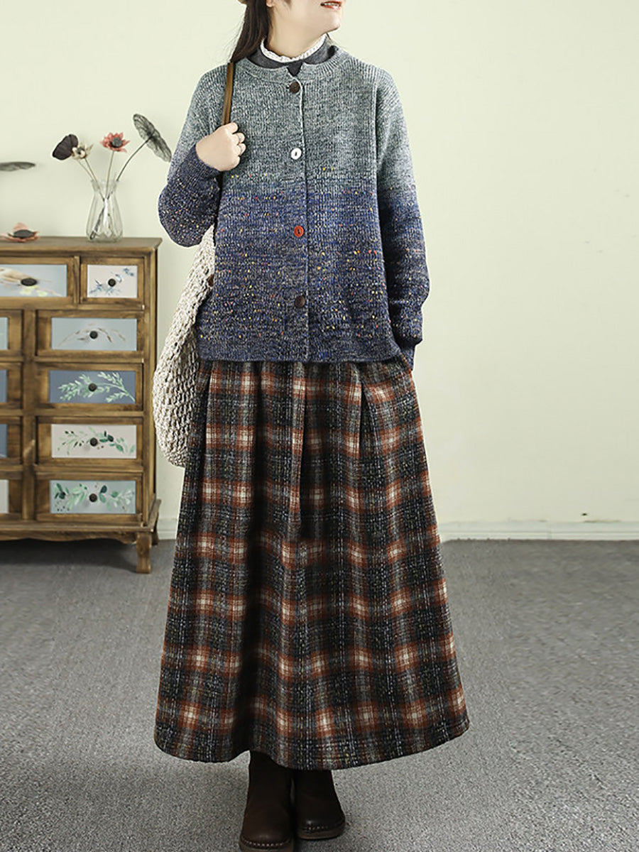 Ženski jesenski umjetnički kardigan s gradijentnim O-izrezom