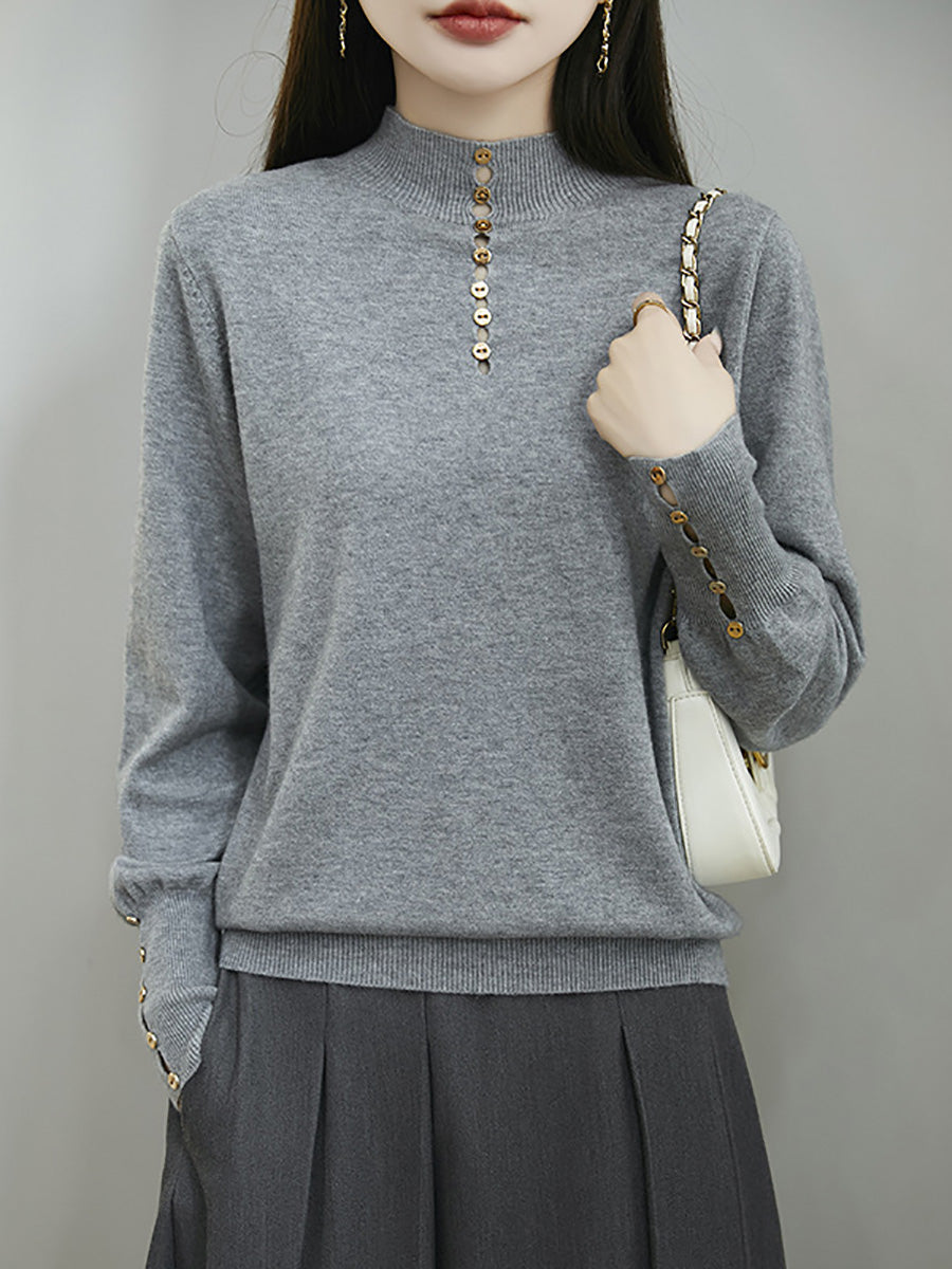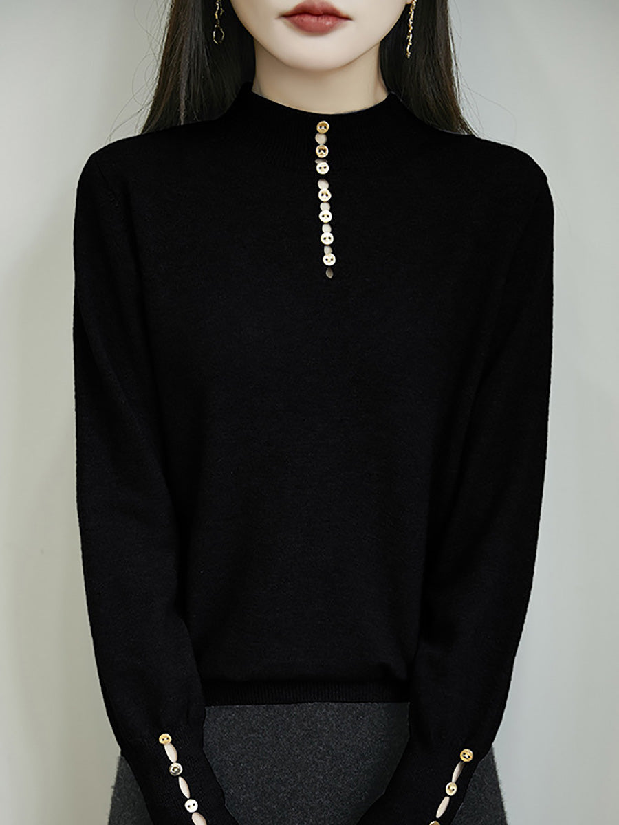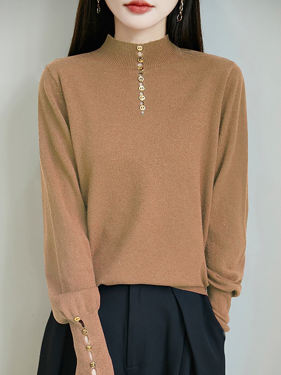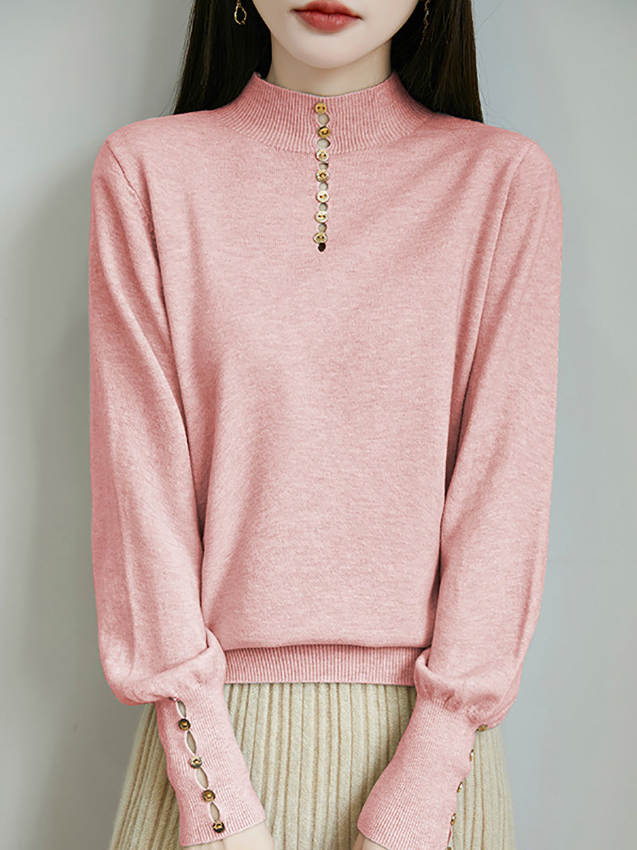 Ženski jesenski umjetnički pulover s polu-rolkom u čistoj boji