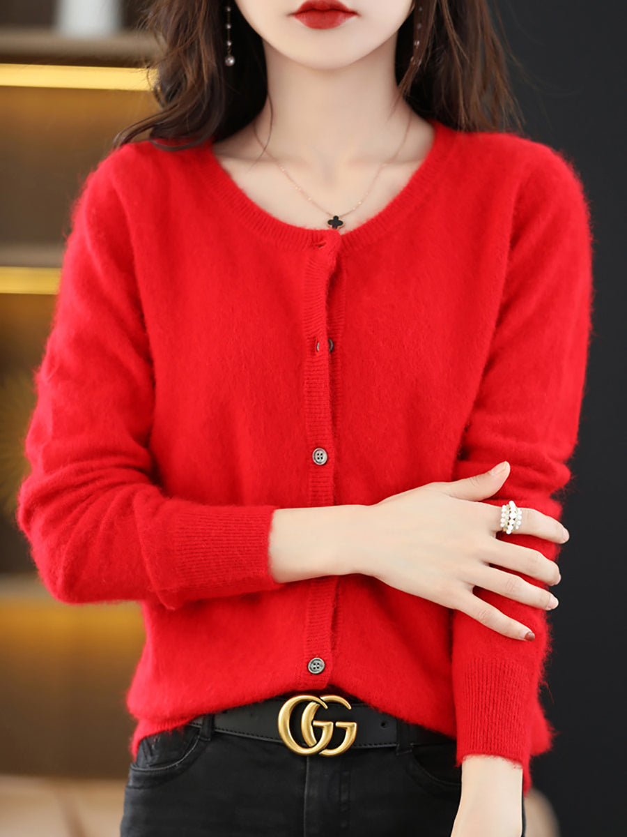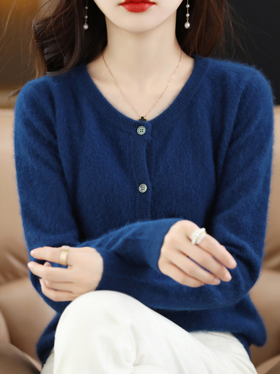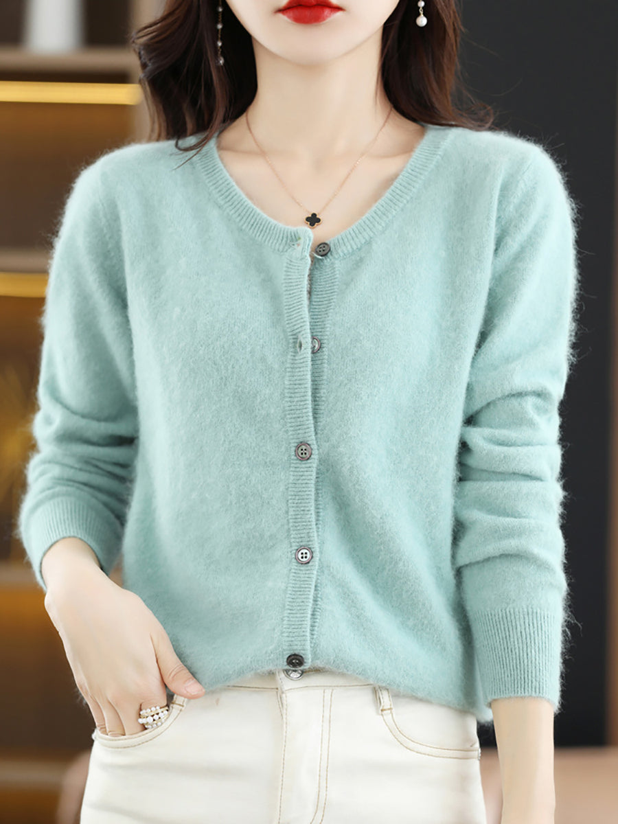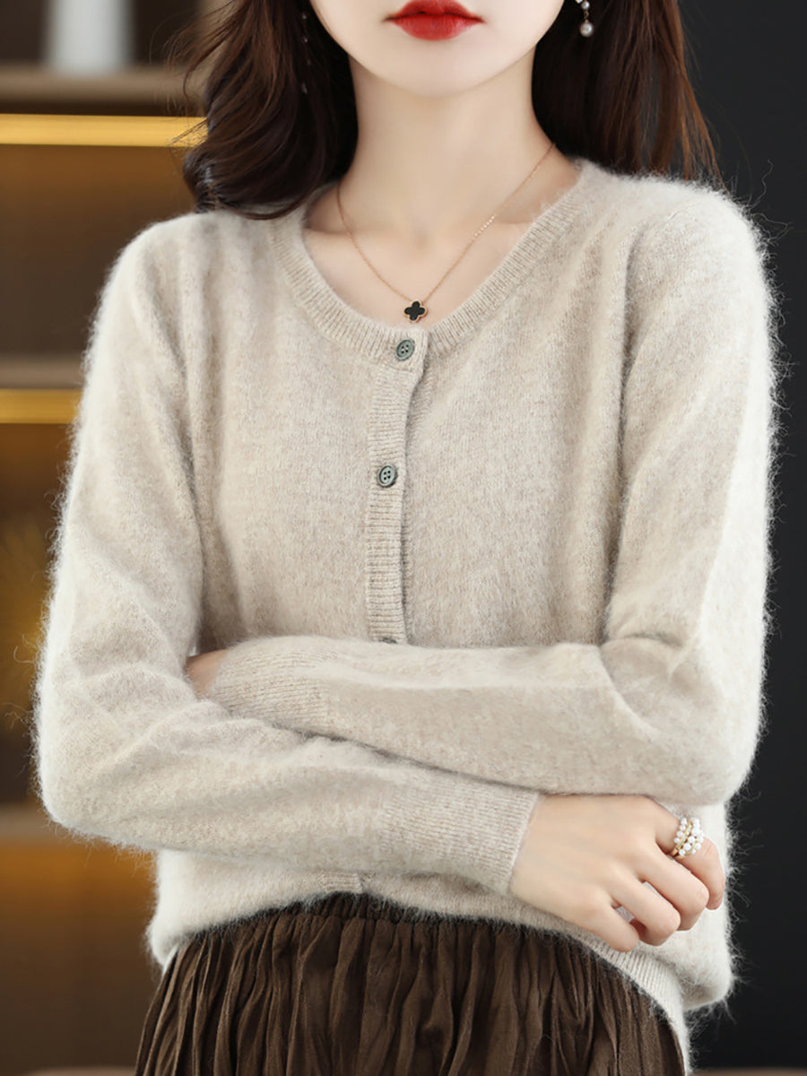 Ženski jesenski umjetnički vuneni kardigan s O-izrezom u čistoj boji