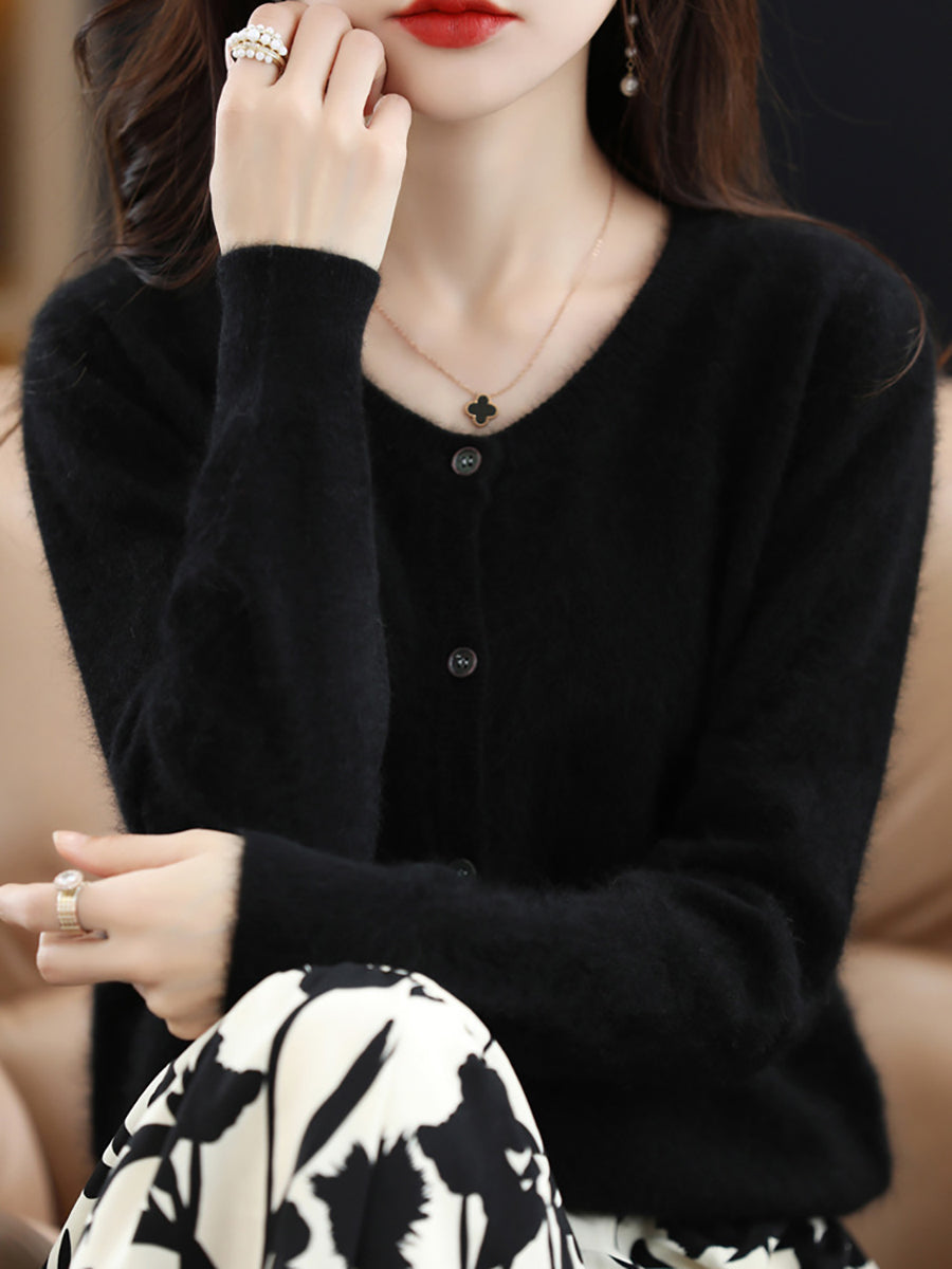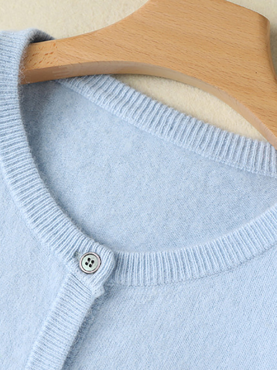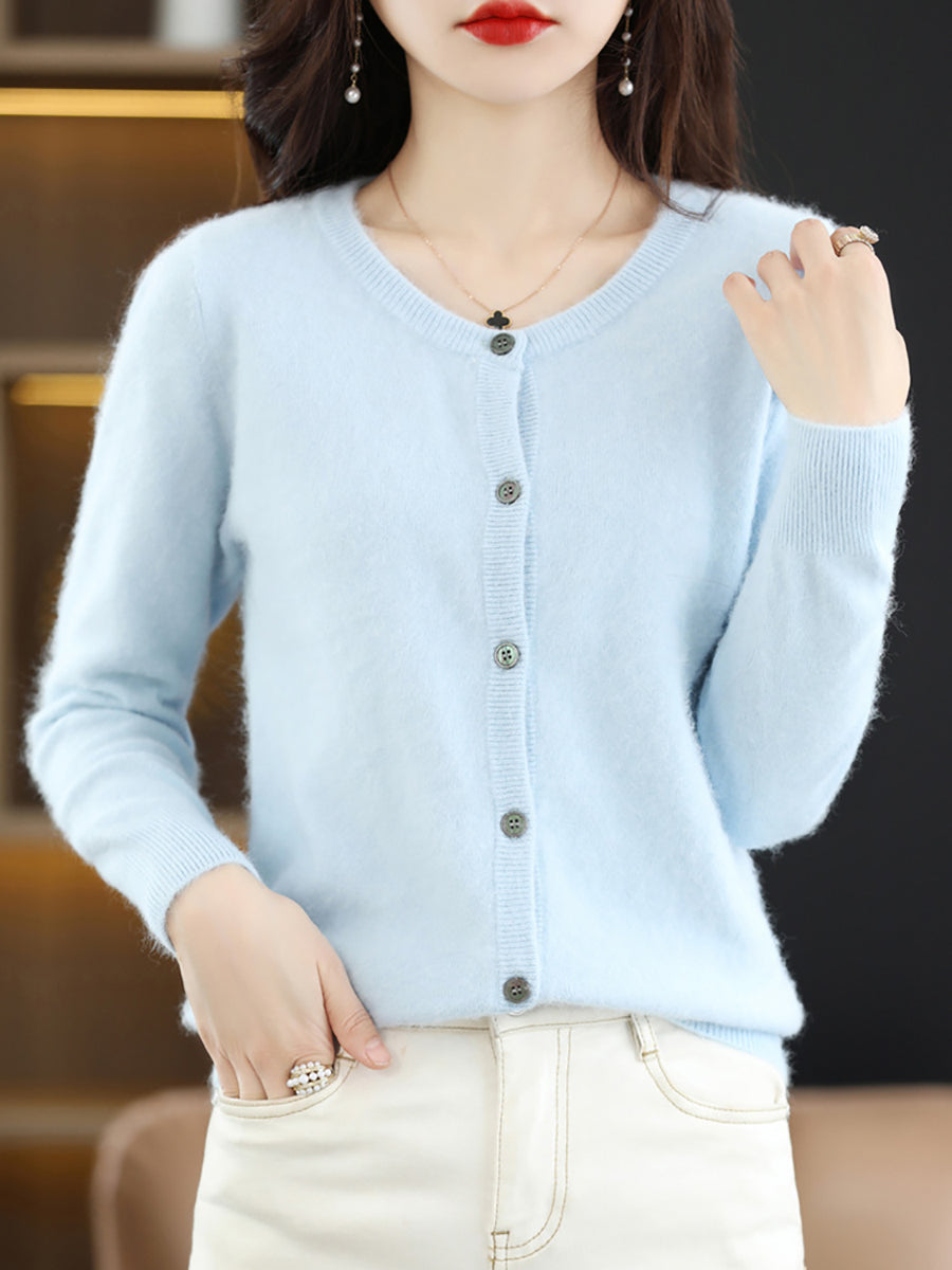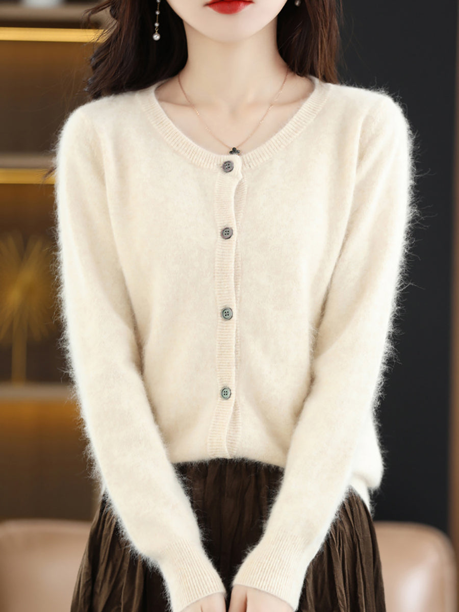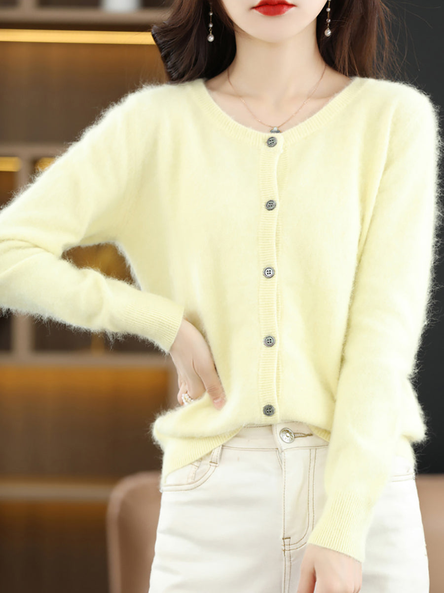 Ženski jesenski umjetnički vuneni kardigan s O-izrezom u čistoj boji