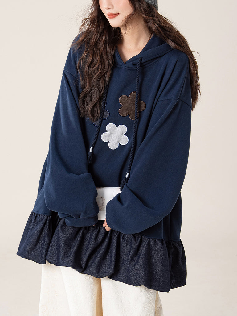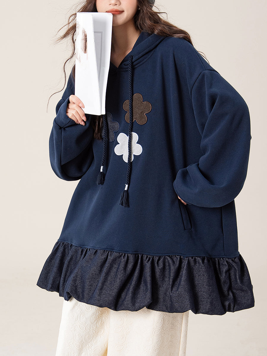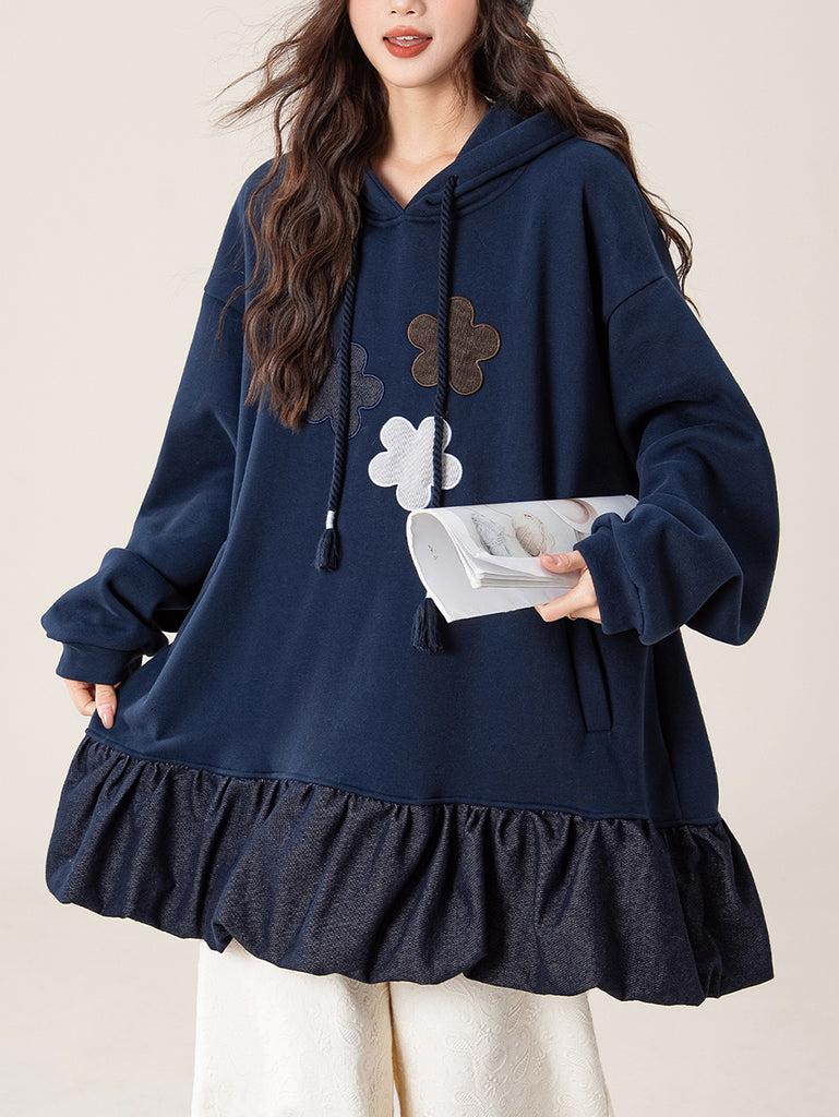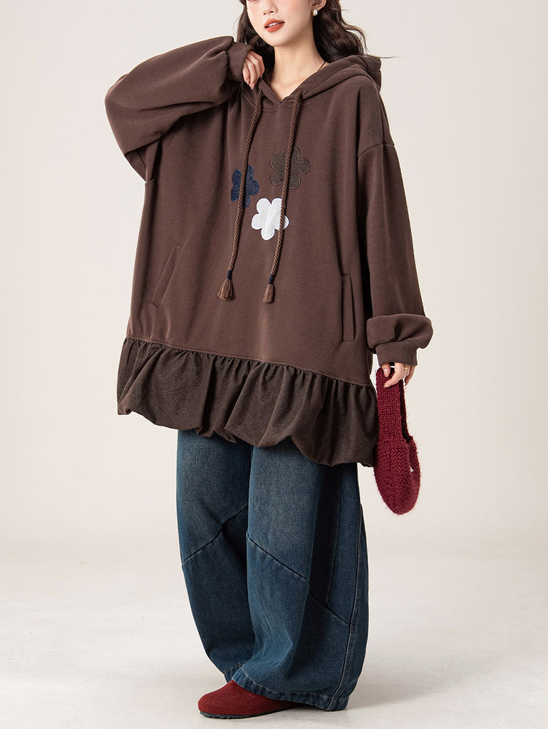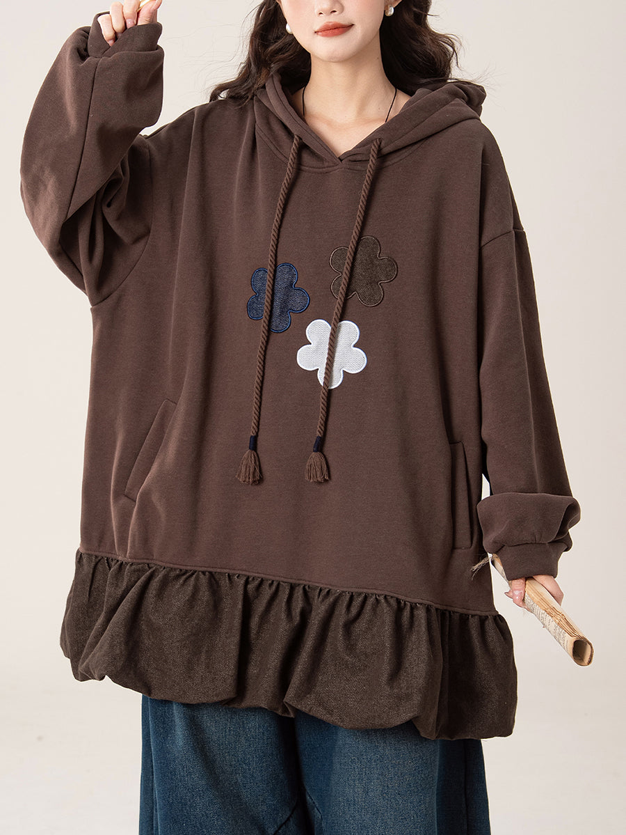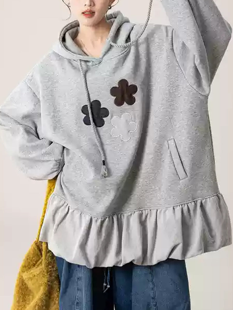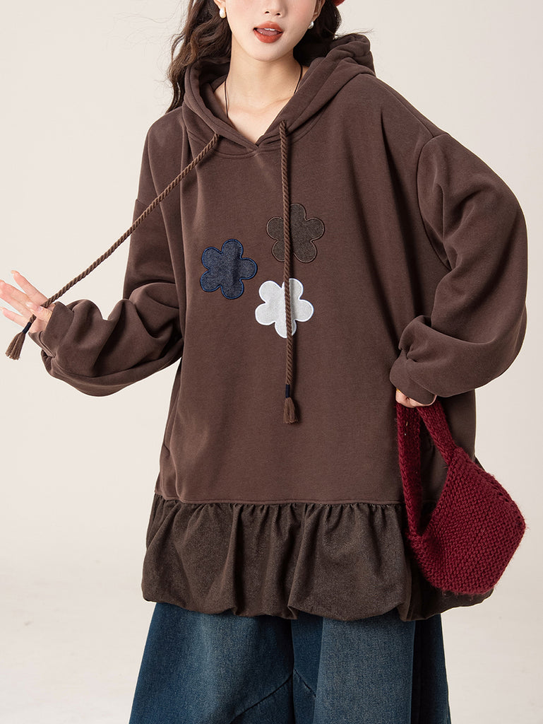 Ženska jesenska ležerna haljina s kapuljačom i cvjetnim uzorkom