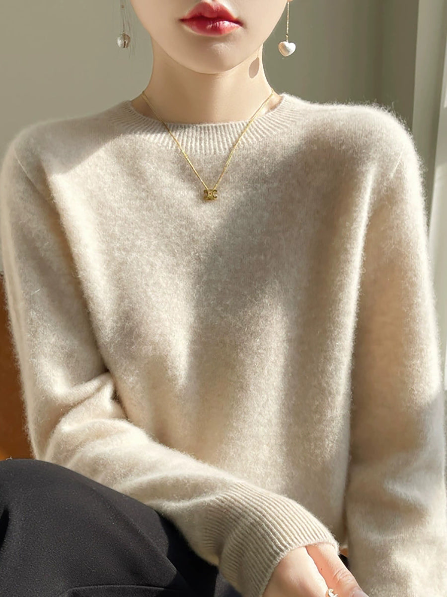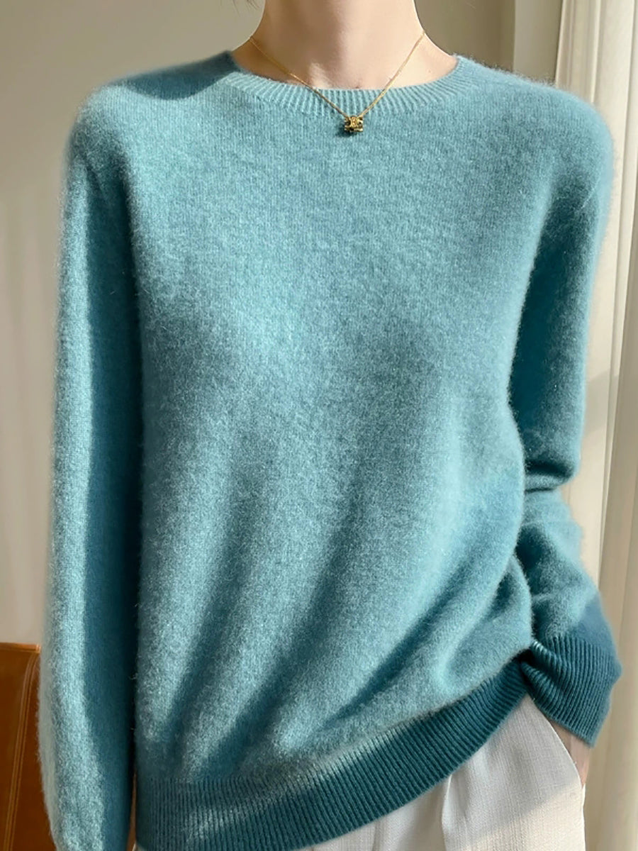 Ženski jesenski ležerni pulover s O-izrezom u čistim bojama