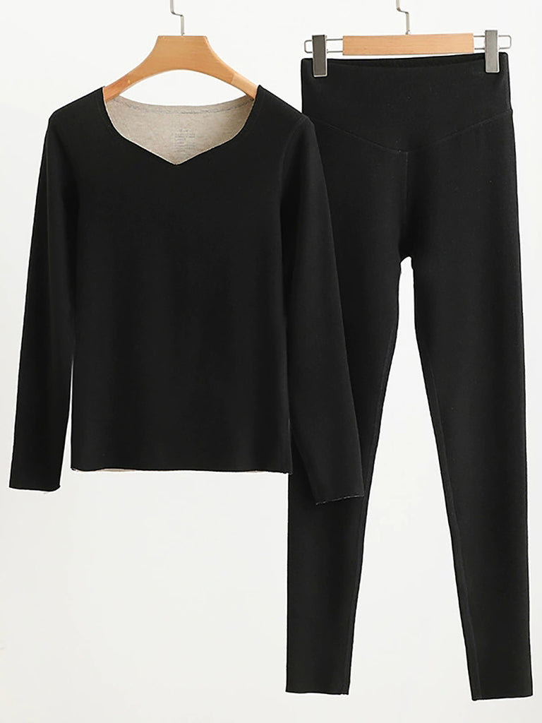 Ženska jesenska ležerna odijela s V-izrezom u čistim bojama