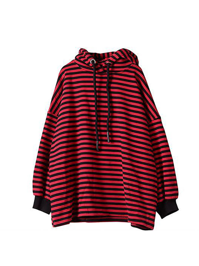 Ženska jesenska ležerna prugasta majica s flis podstavom