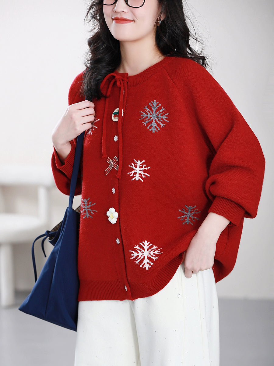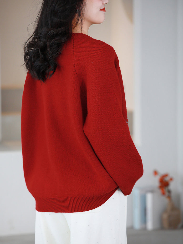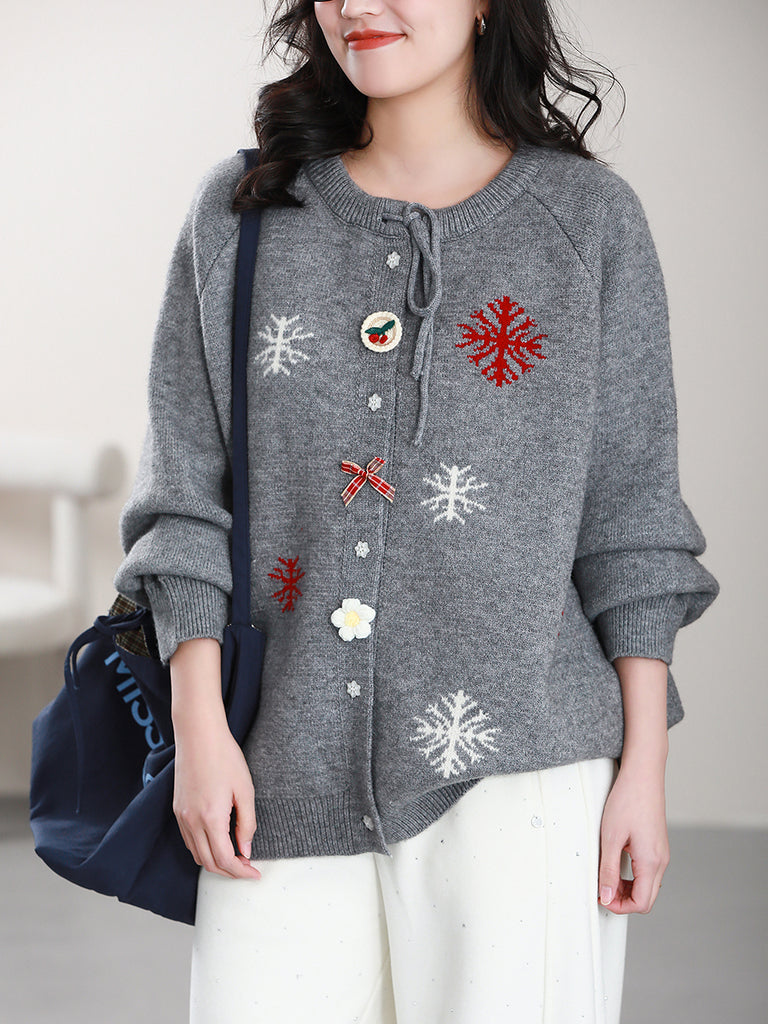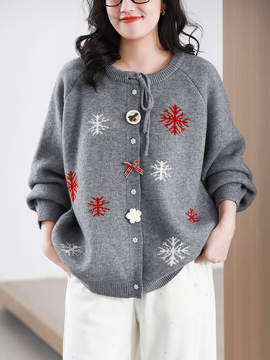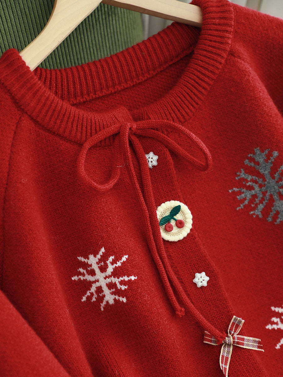 Ženski jesenski božićni džemper s O-izrezom i pahuljicama