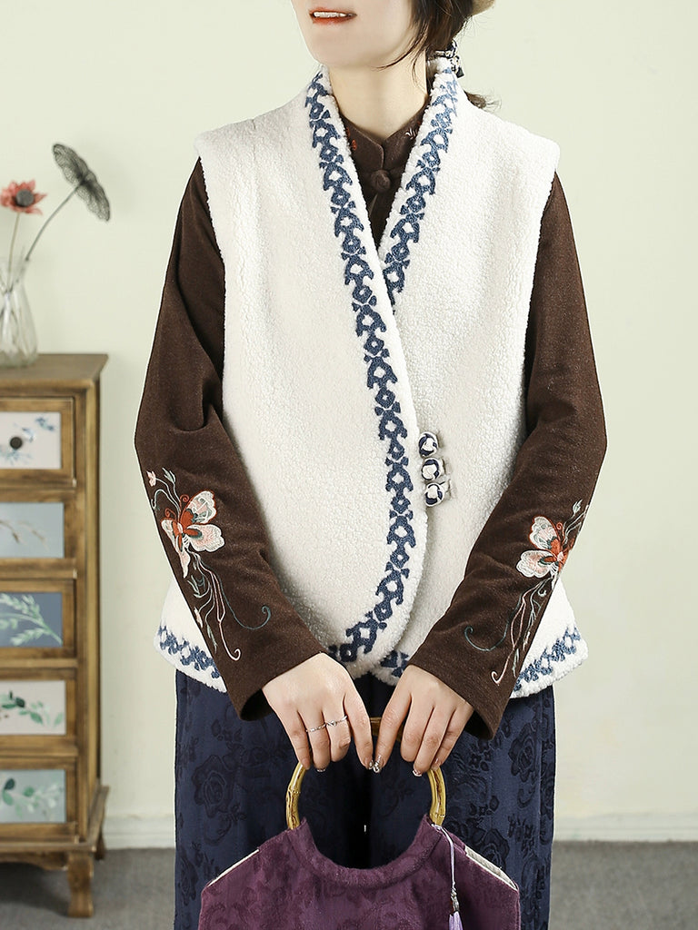 Ovaj svestrani pleteni prsluk kombinira bezvremensku retro estetiku sa suvremenim dizajnerskim senzibilitetom. S prepoznatljivim cvjetnim ovratnikom i čistom jednobojnom kombinacijom, pruža sofisticiranu slojevitost za prijelazna godišnja doba. Nepravilno spojena konstrukcija na V-izrezu dodaje vizualni interes i moderan štih, dok strukturirana pletena tkanina osigurava dugotrajnost. Idealan za jesensku i zimsku garderobu, ovaj komad odjeće prilagođava se prijelaznim godišnjim dobima.