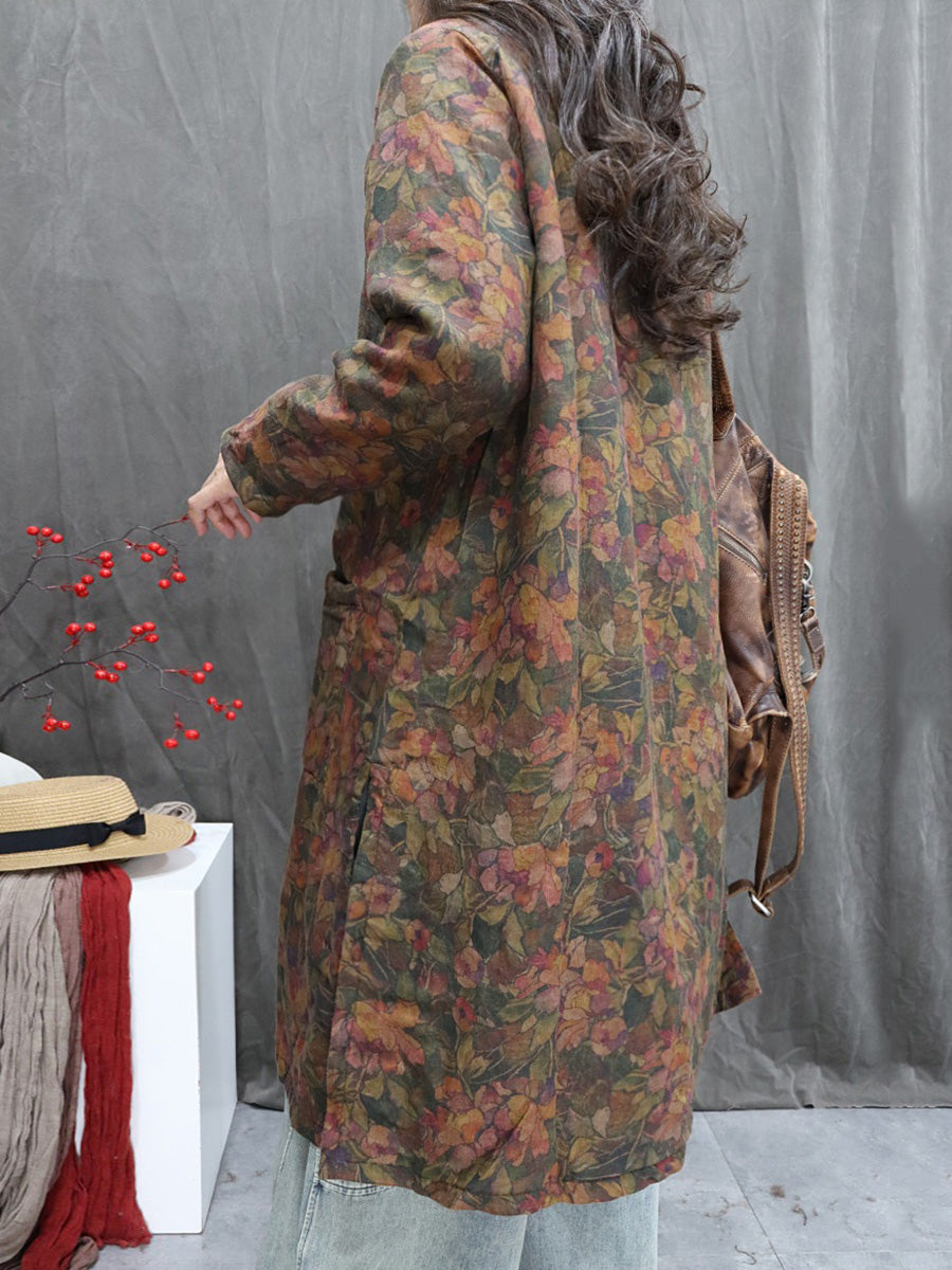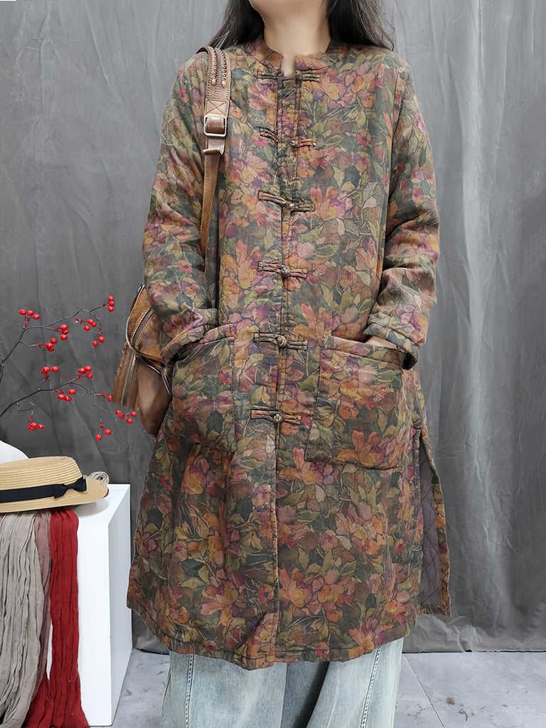 Ženska jesenska jakna s cvjetnim ovratnikom i stojećim ovratnikom od pamuka