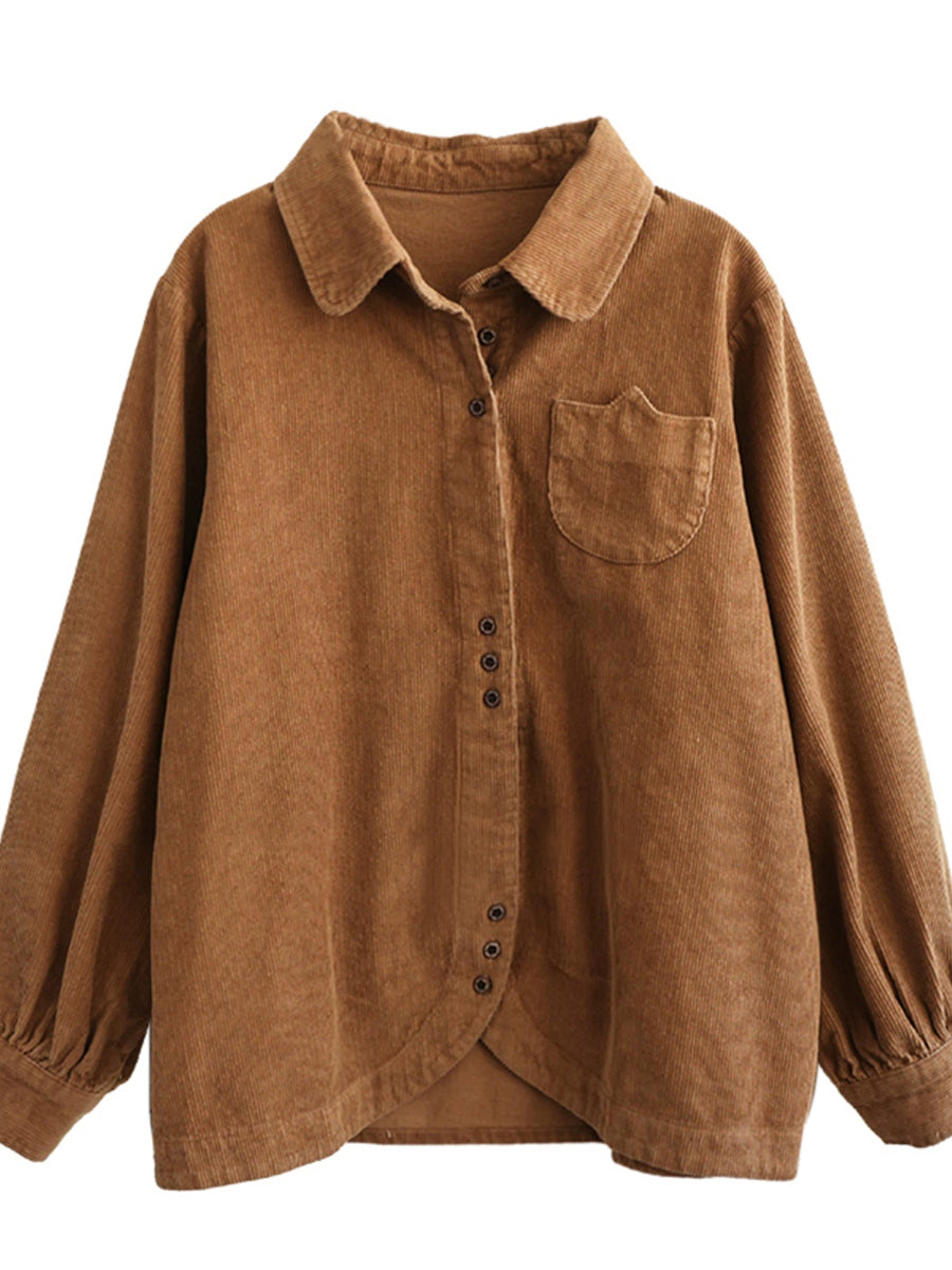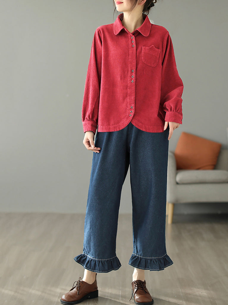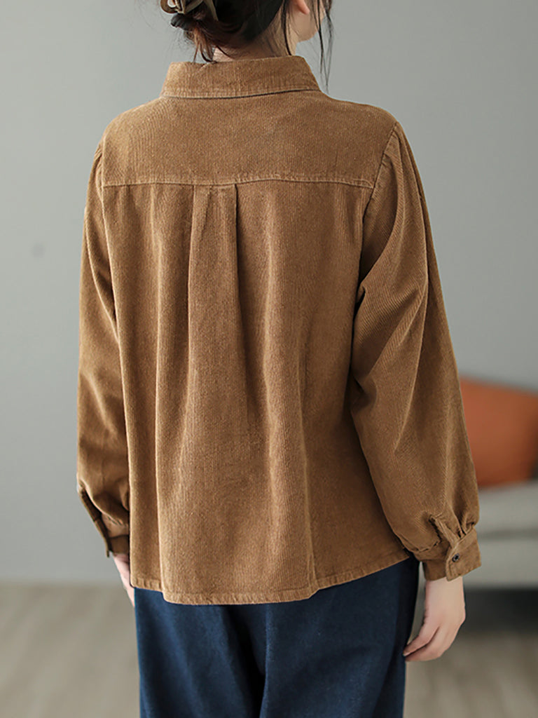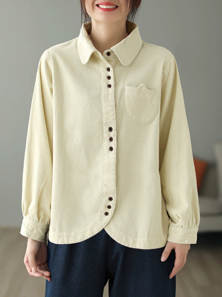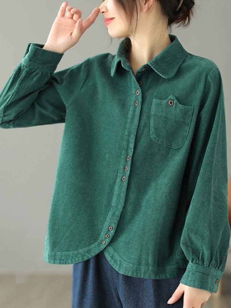 Ženska jesenska košulja od korduroja s odloženim ovratnikom u čistim bojama