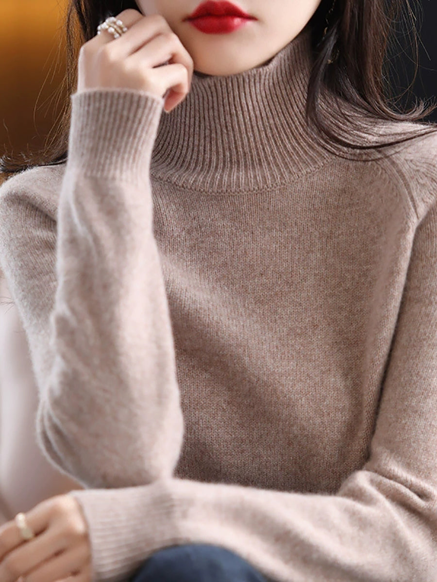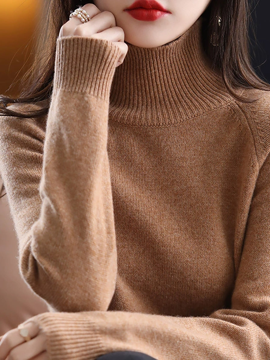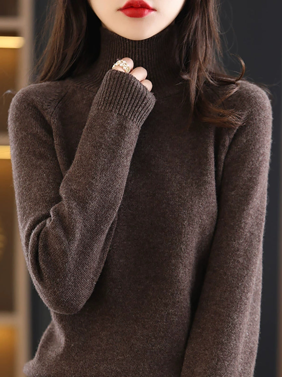 Ženski jesenski pulover s dolčevitom u čistim bojama