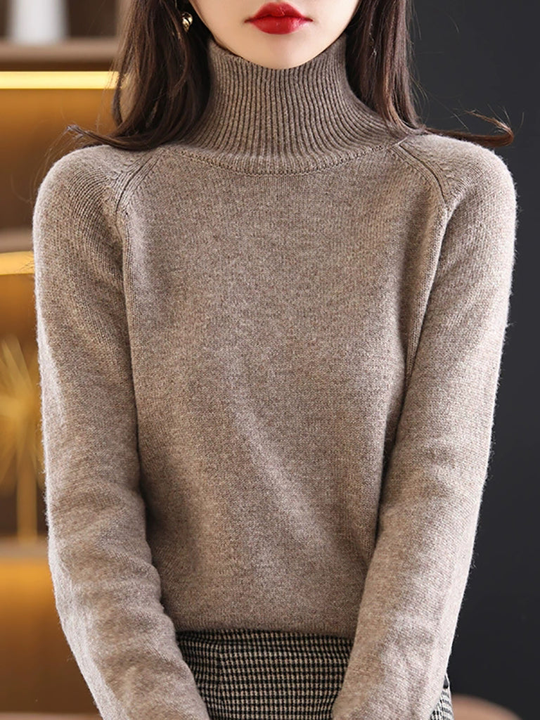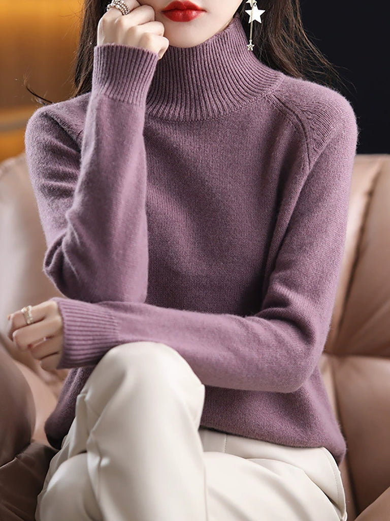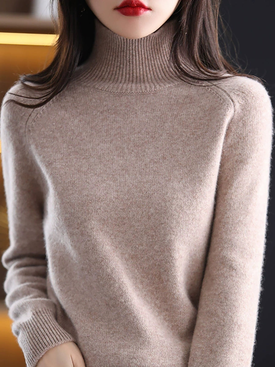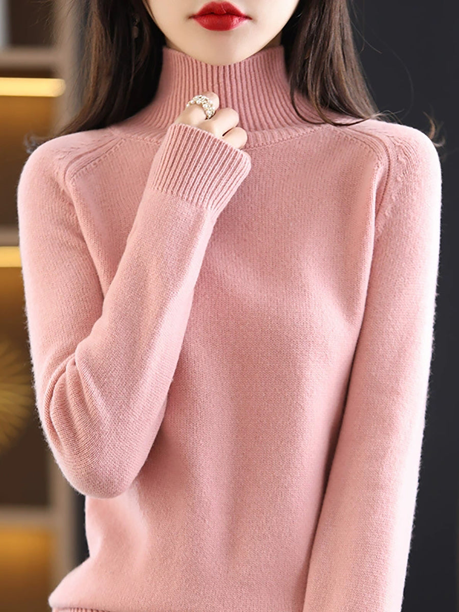 Ženski jesenski pulover s dolčevitom u čistim bojama