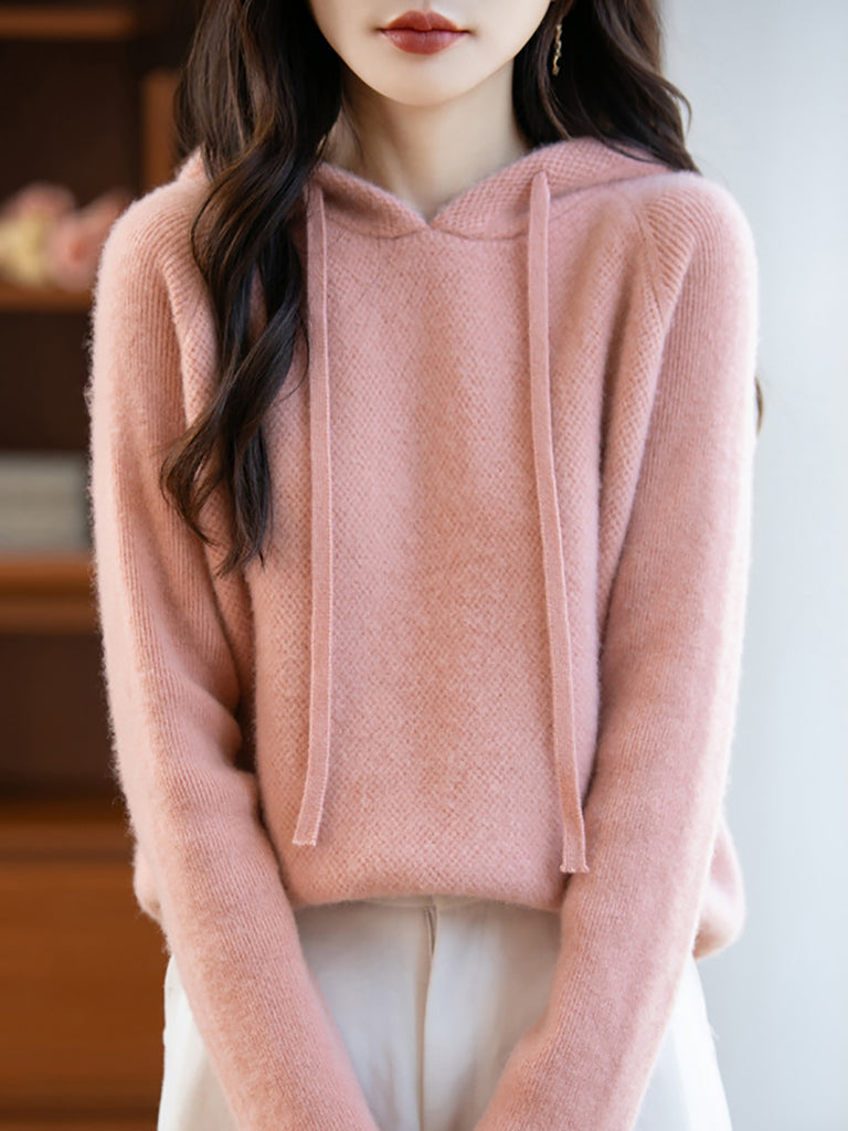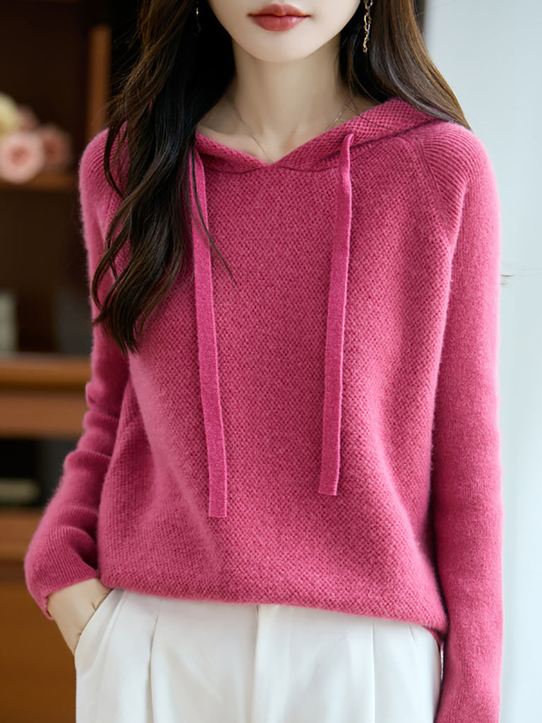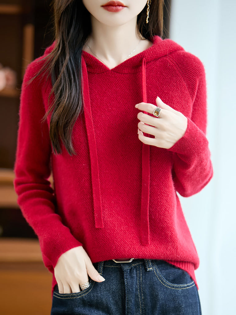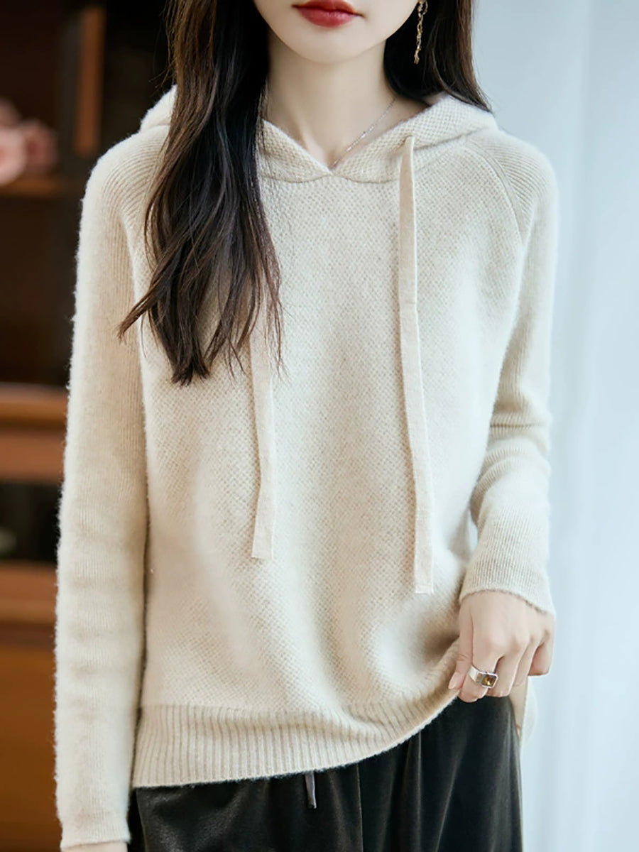 Ženski jesenski pulover s kapuljačom od čiste vune