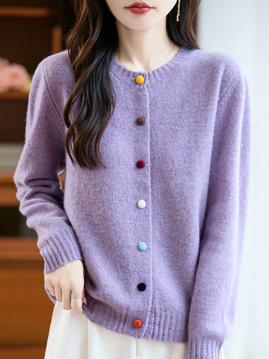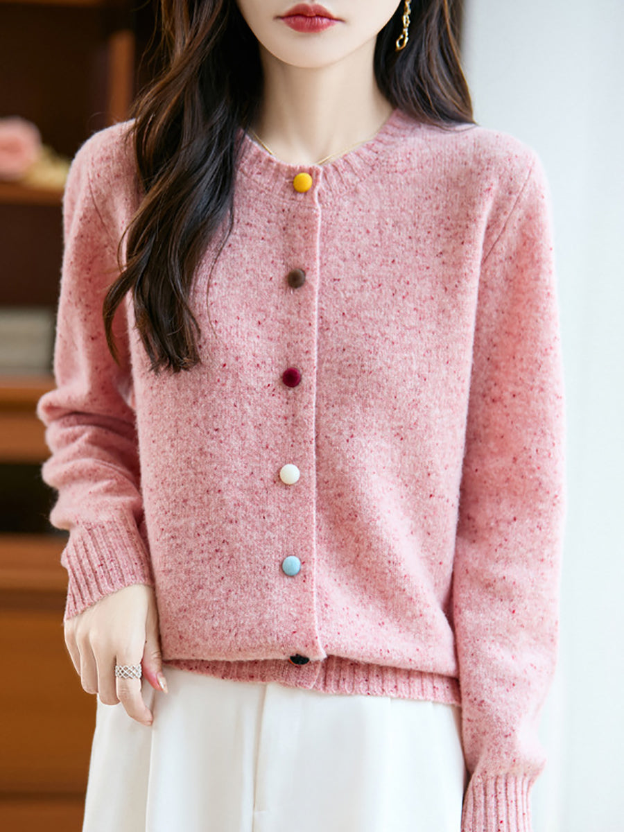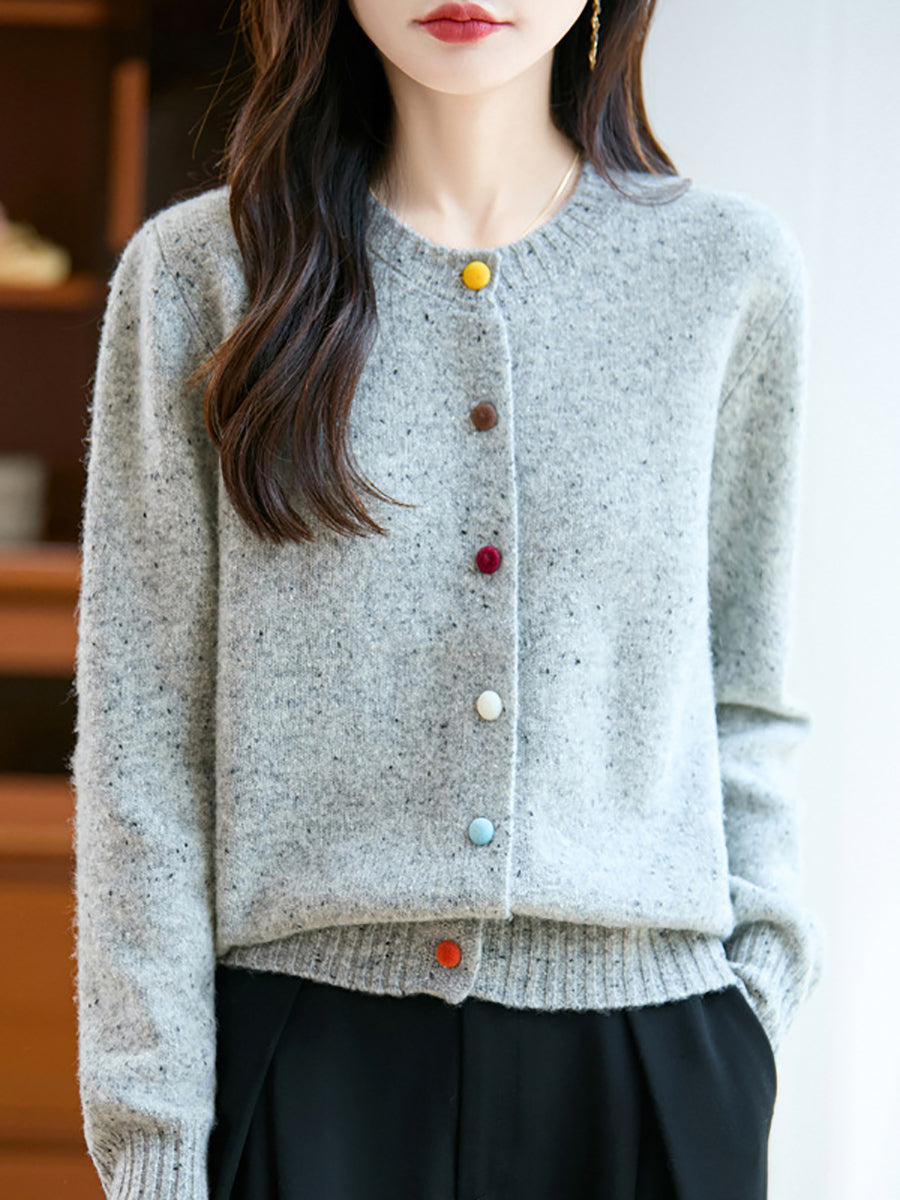 Ženski jesenski kardigan od čiste vune s O-izrezom
