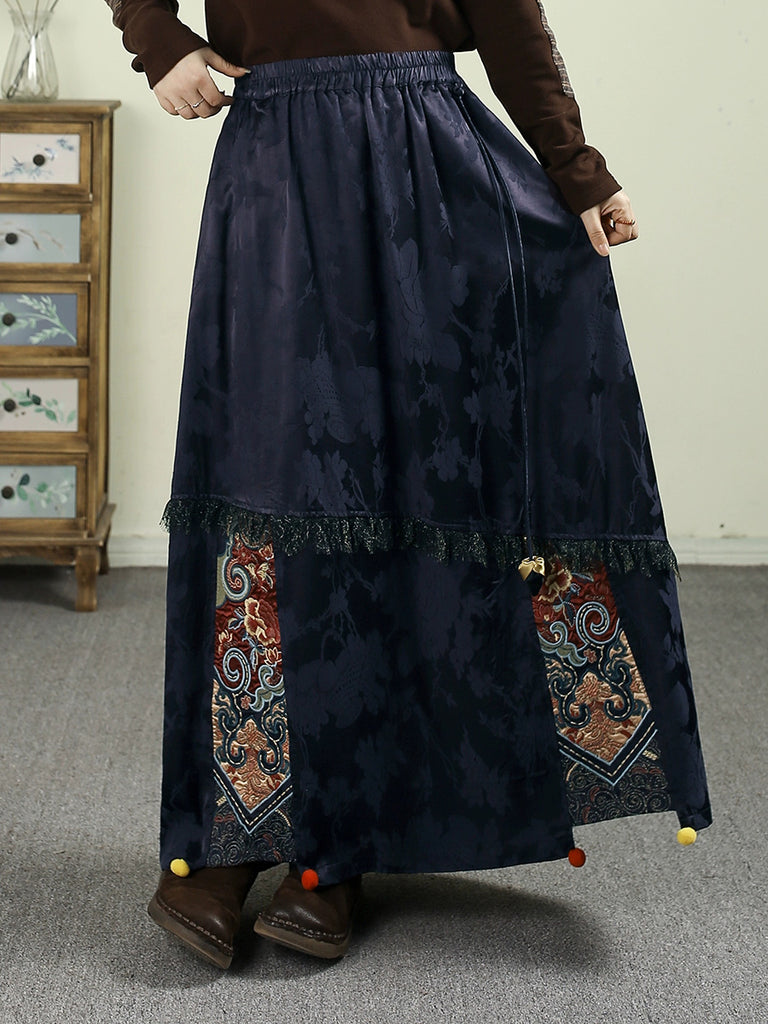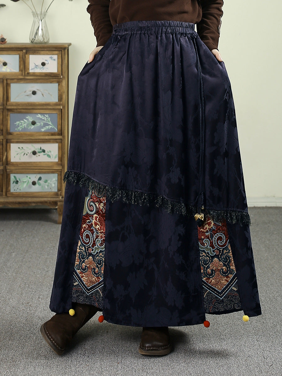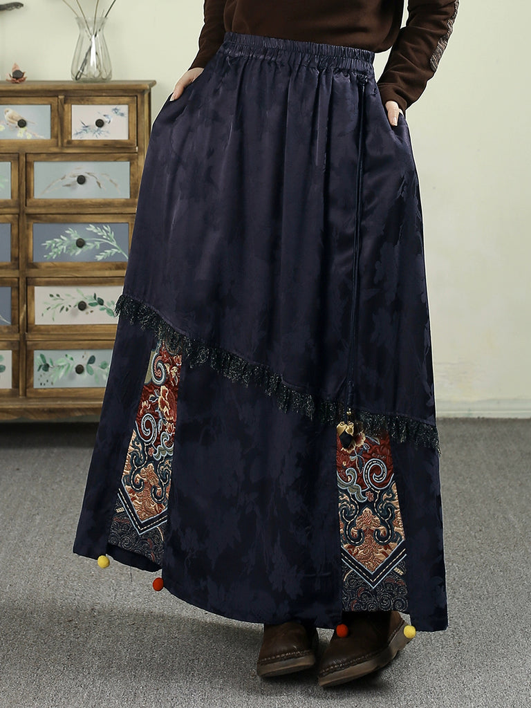 Ženska jesenska retro suknja s vezom i žakard resicama u obliku slova A