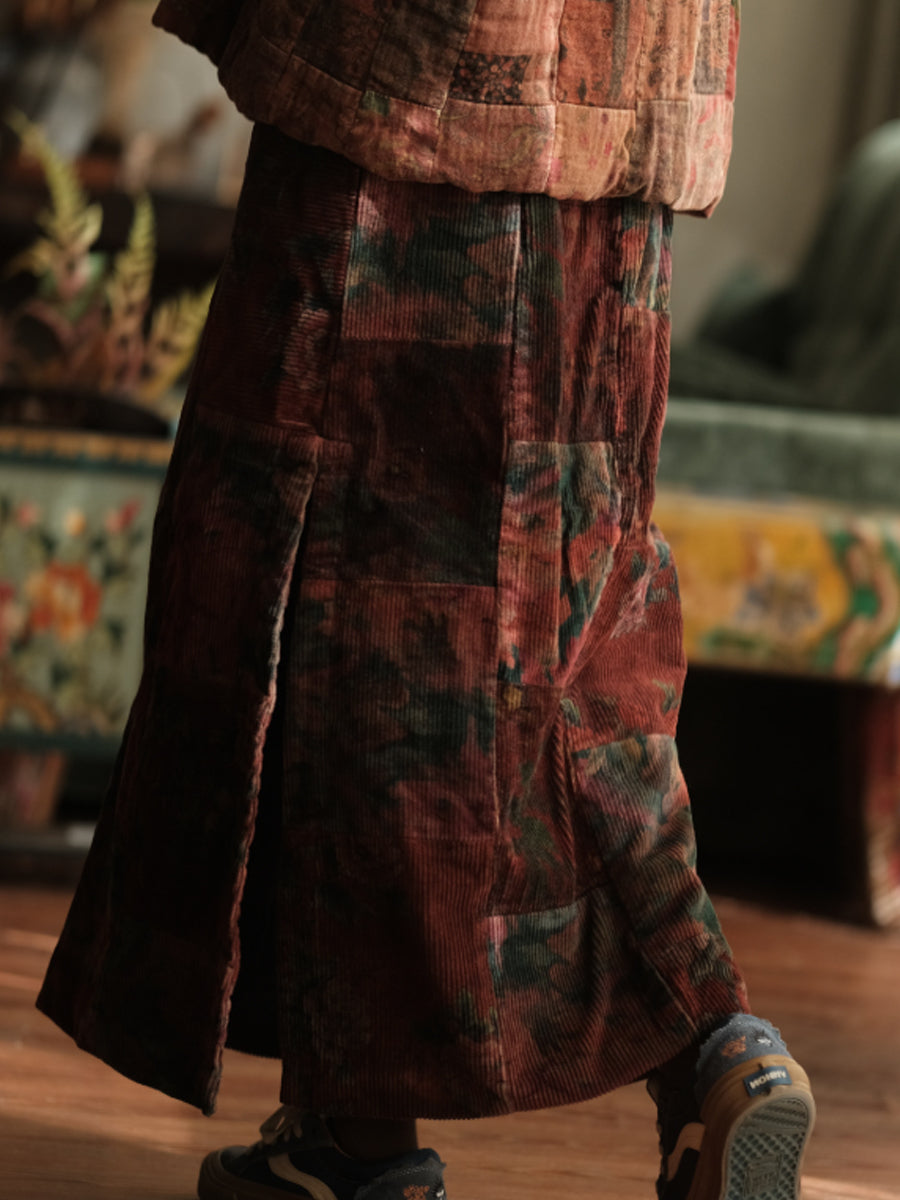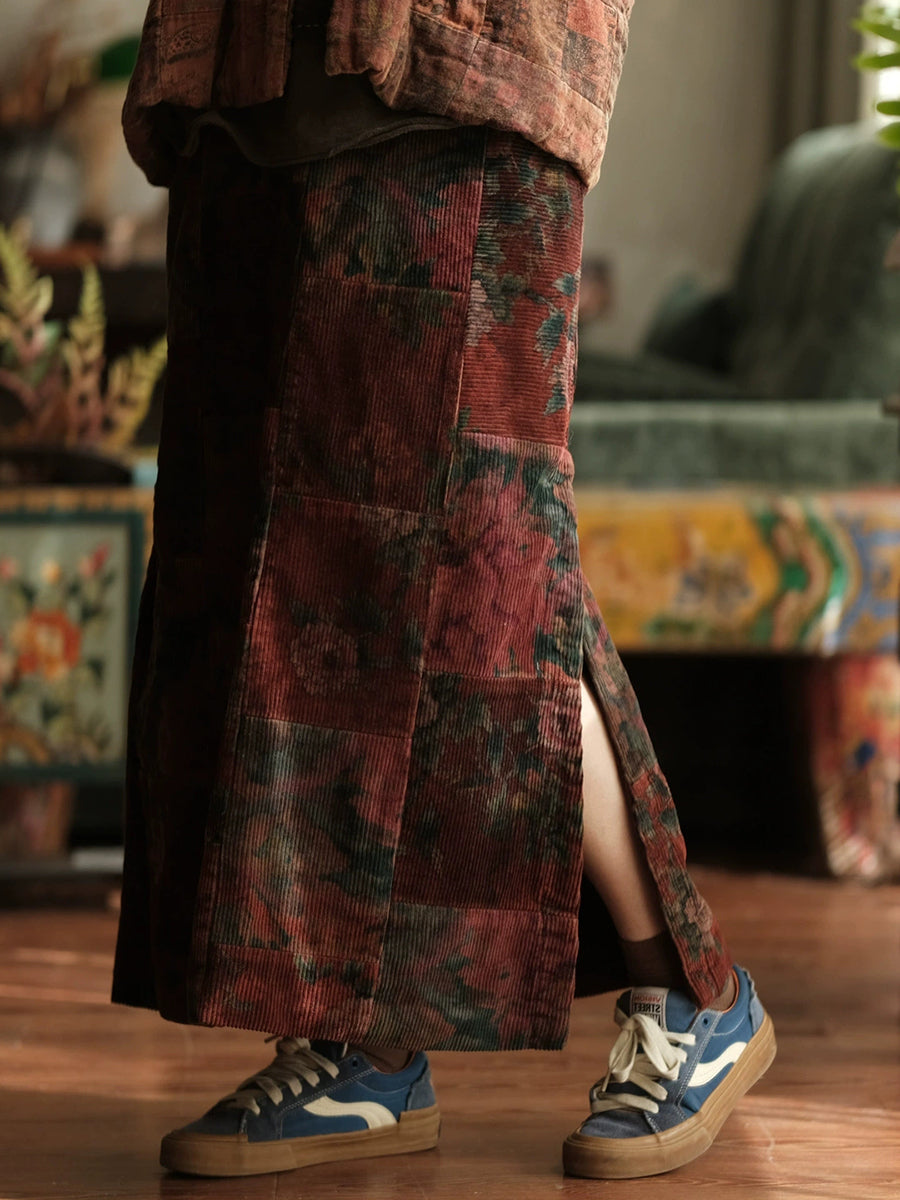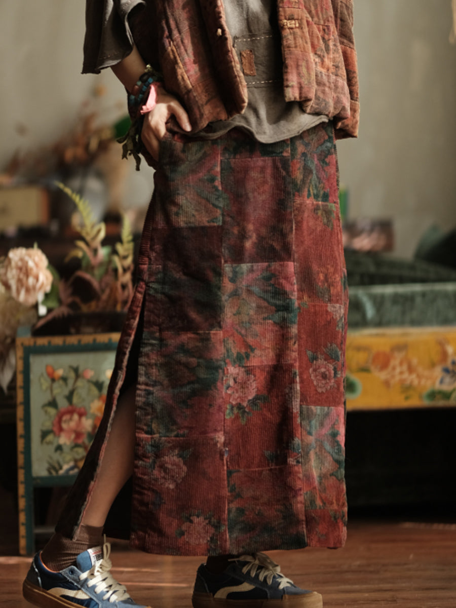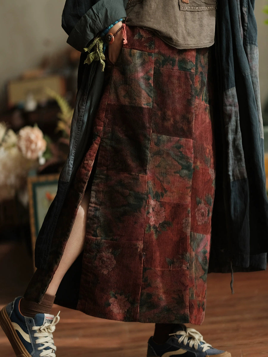 Ženska jesenska retro cvjetna patchwork ravna suknja
