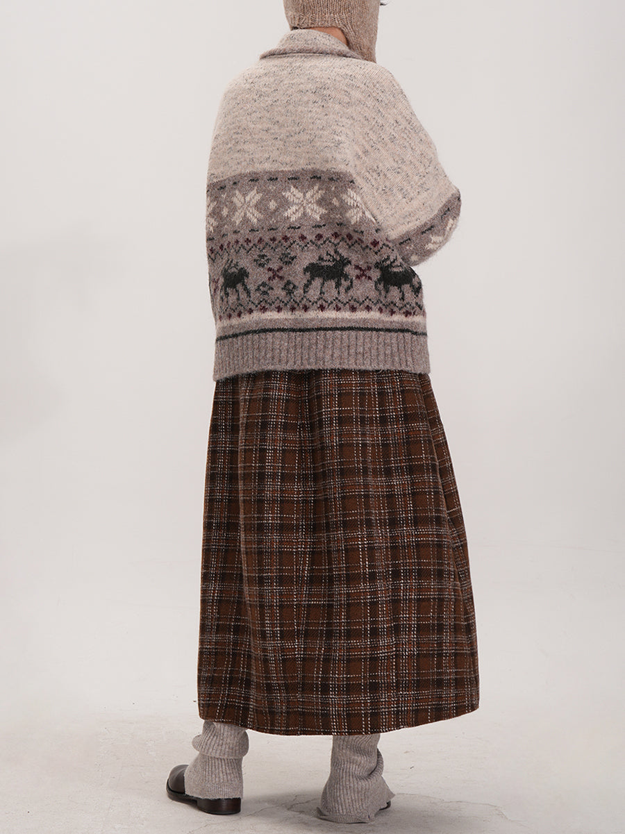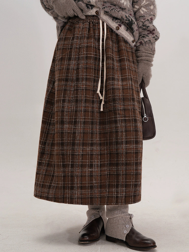 Ženska jesenska retro karirana suknja A-kroja